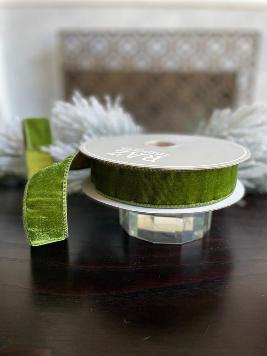 1.5” x 10 yds. Designer green velvet wired ribbon. Raz.