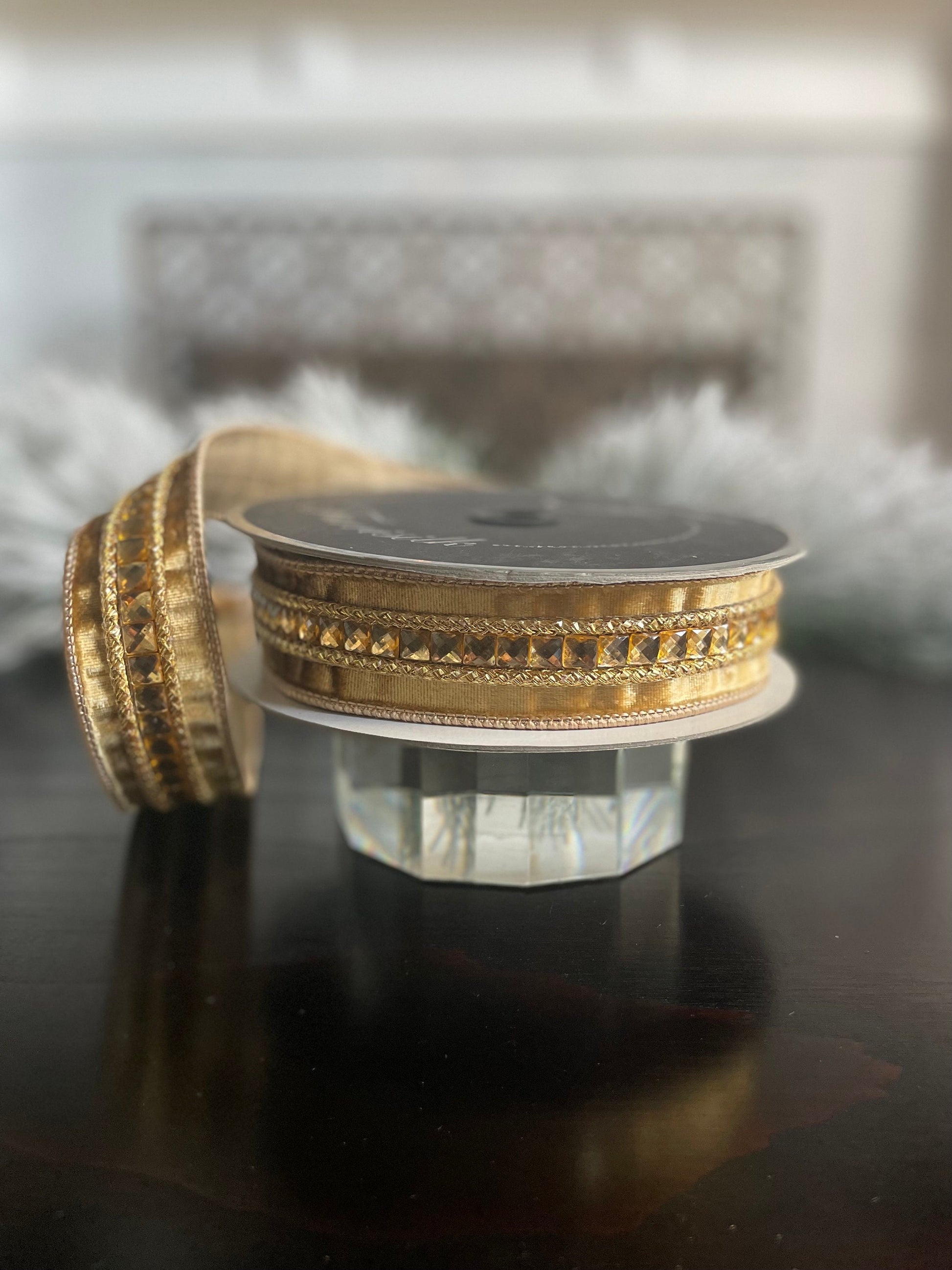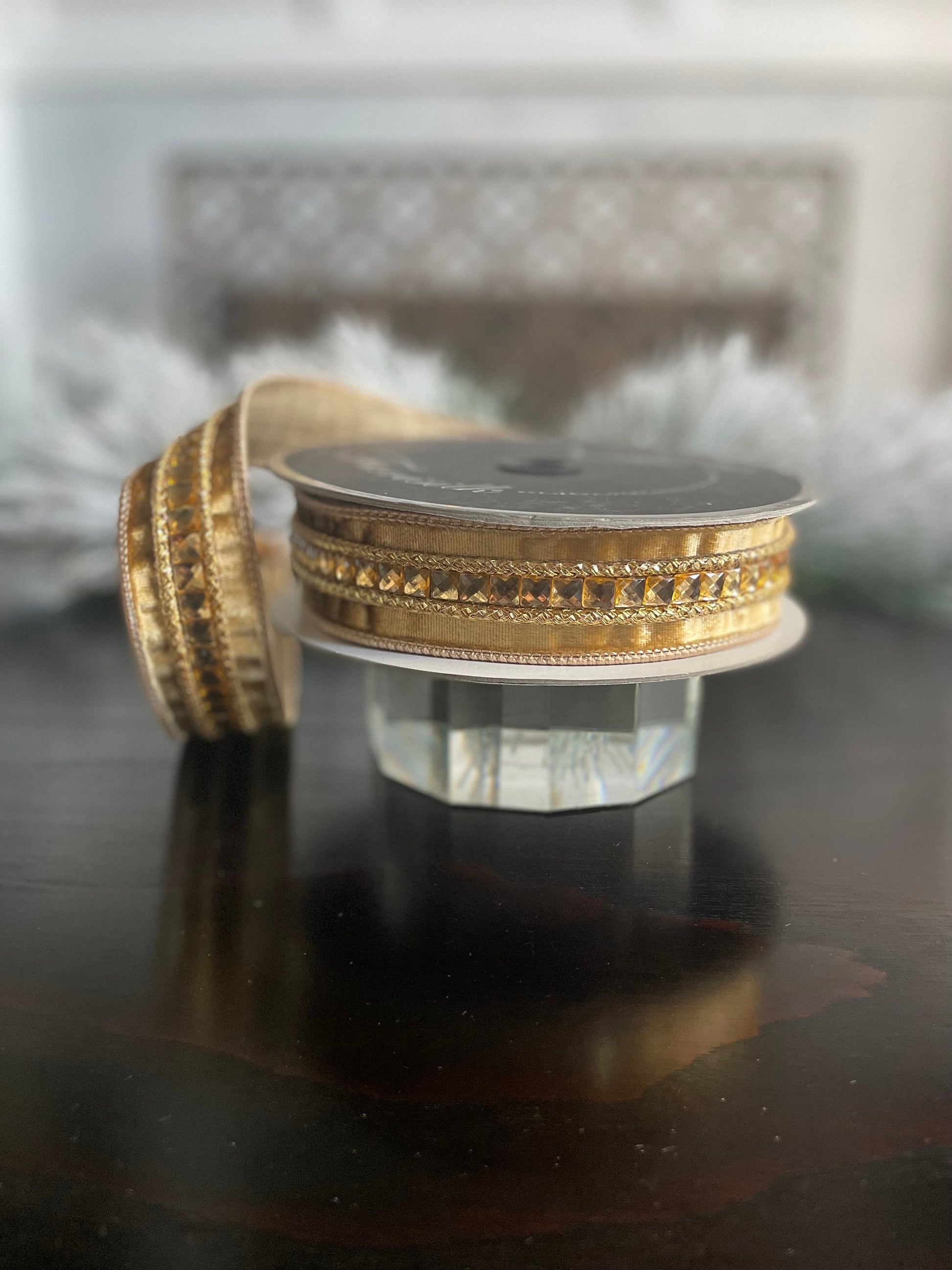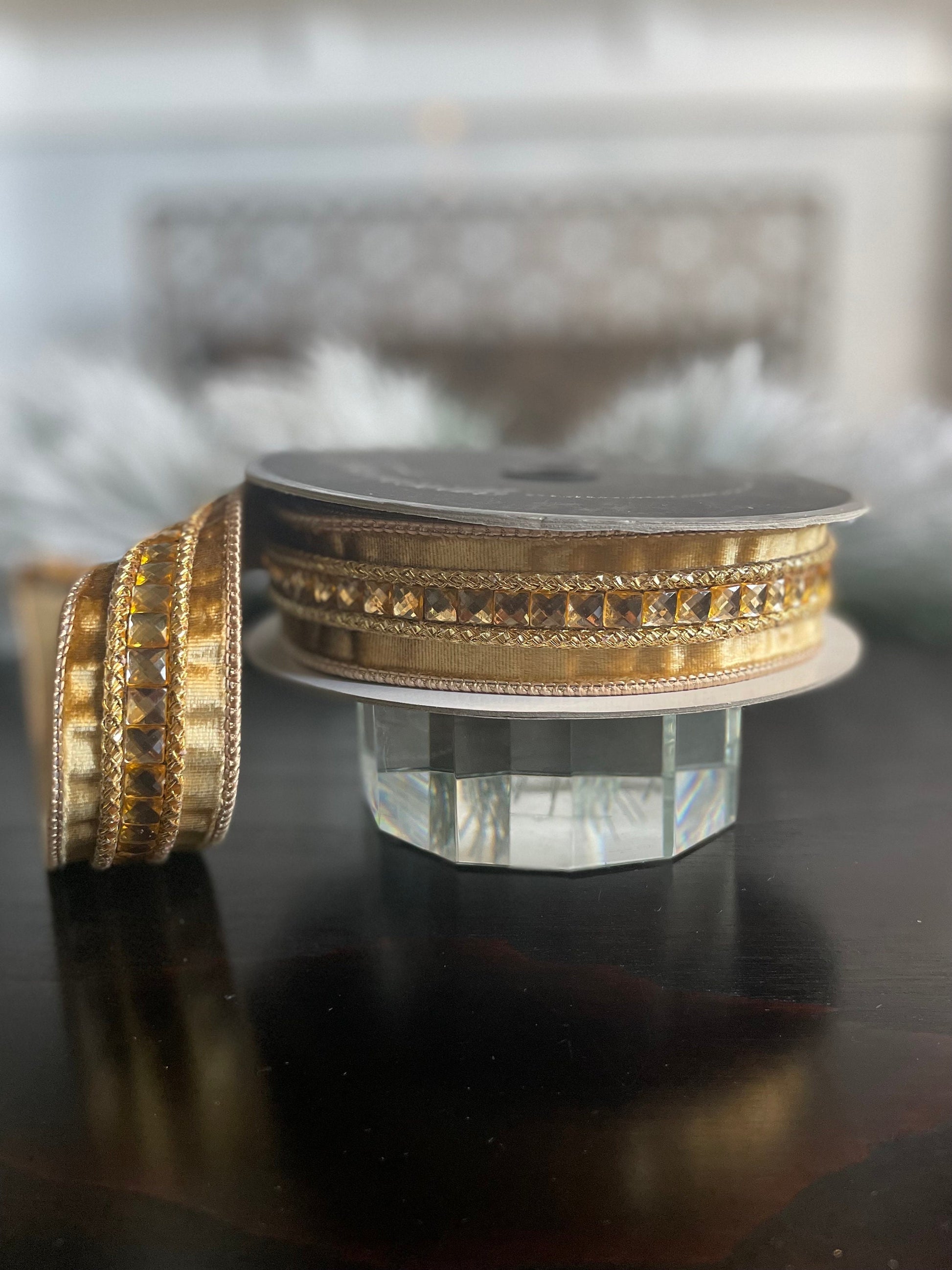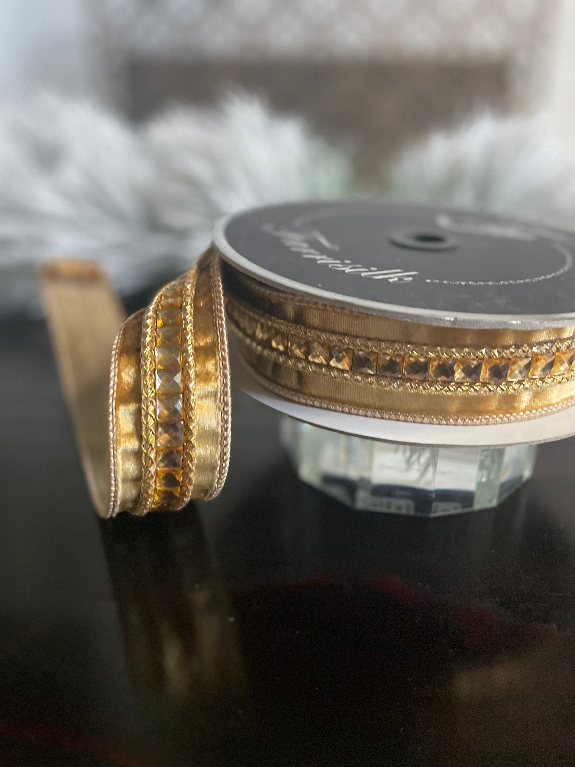 1.5” x 5 yds. Designer gemstones wired ribbon. Farrisilk.