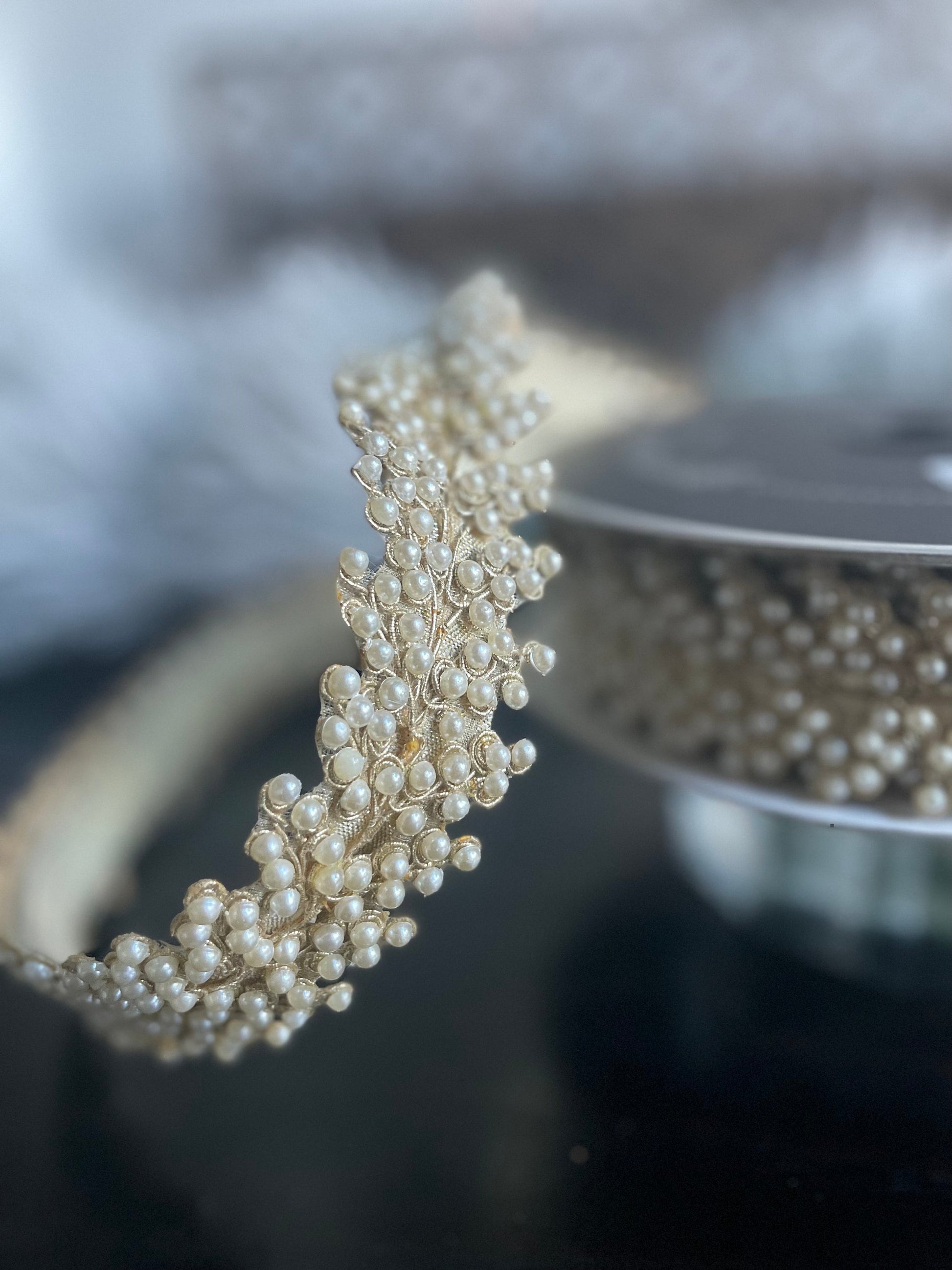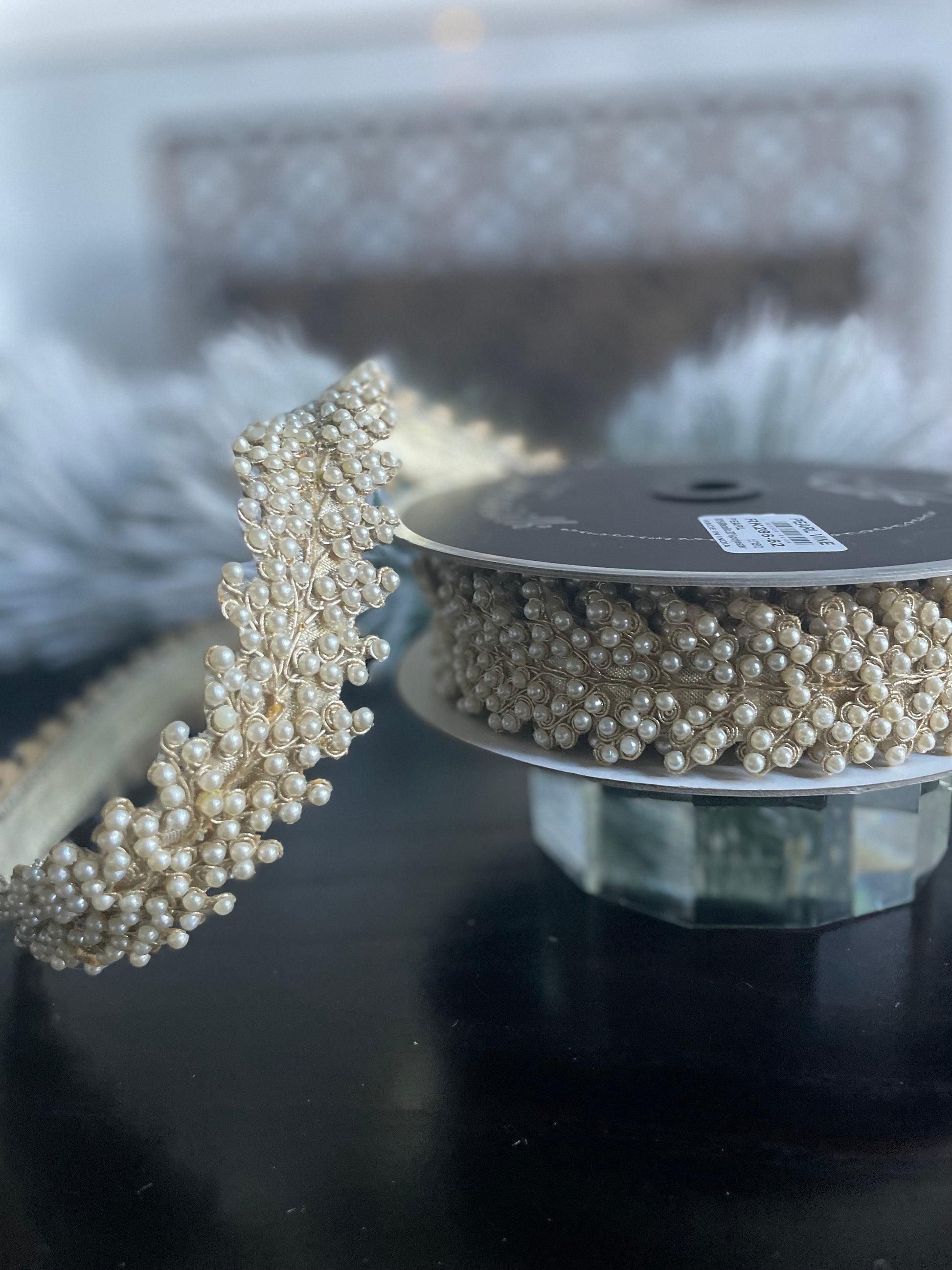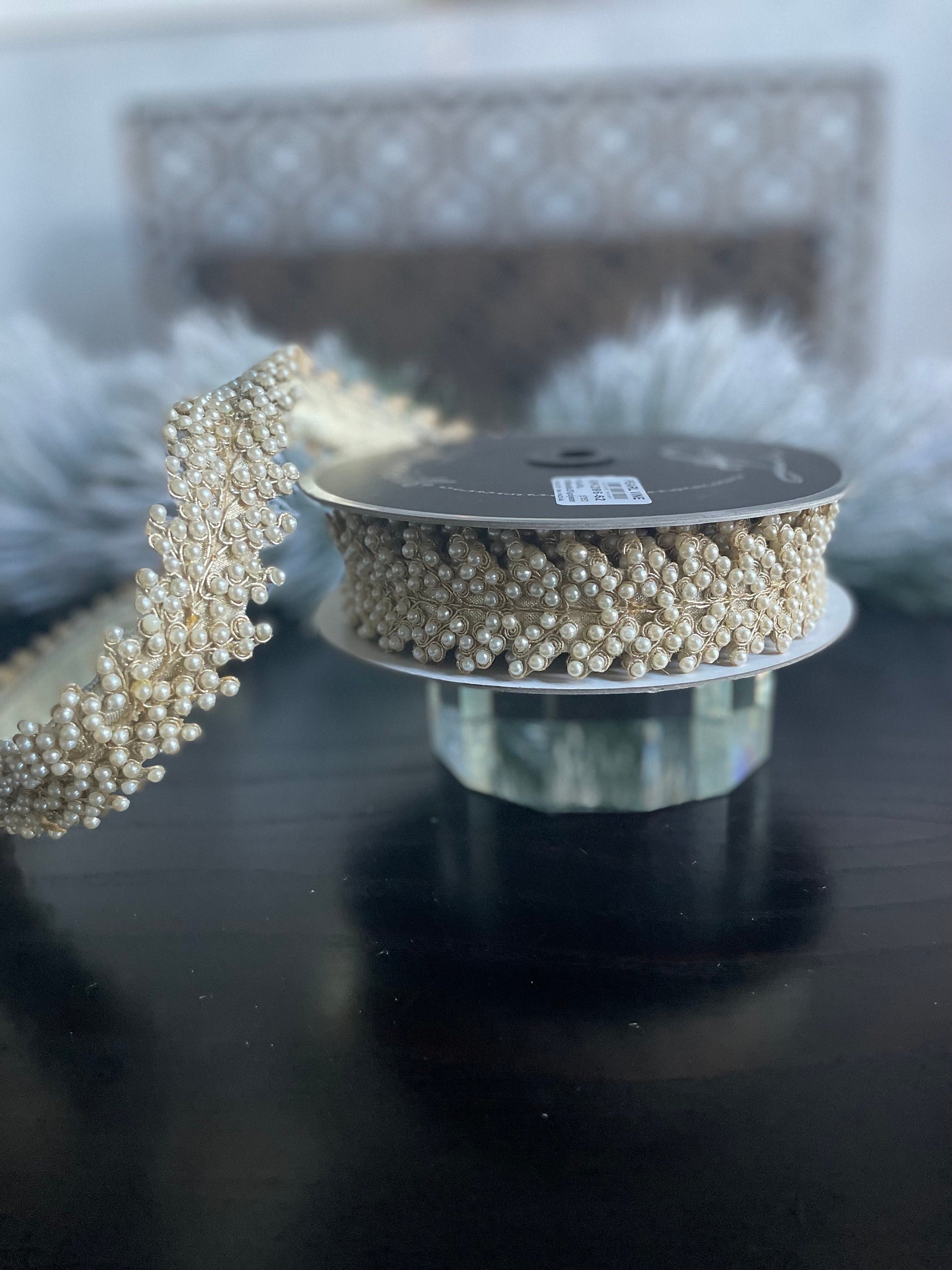1.5” x 5 yds. Designer pearl vine wired ribbon. Farrisilk.