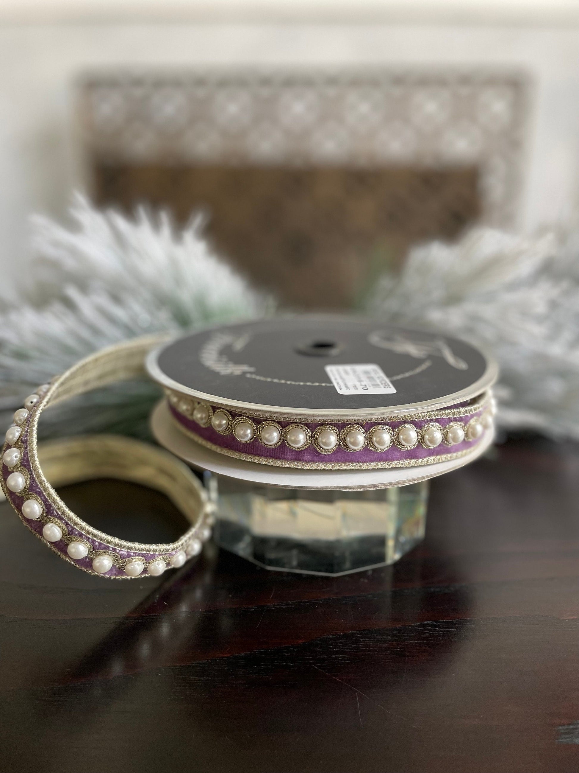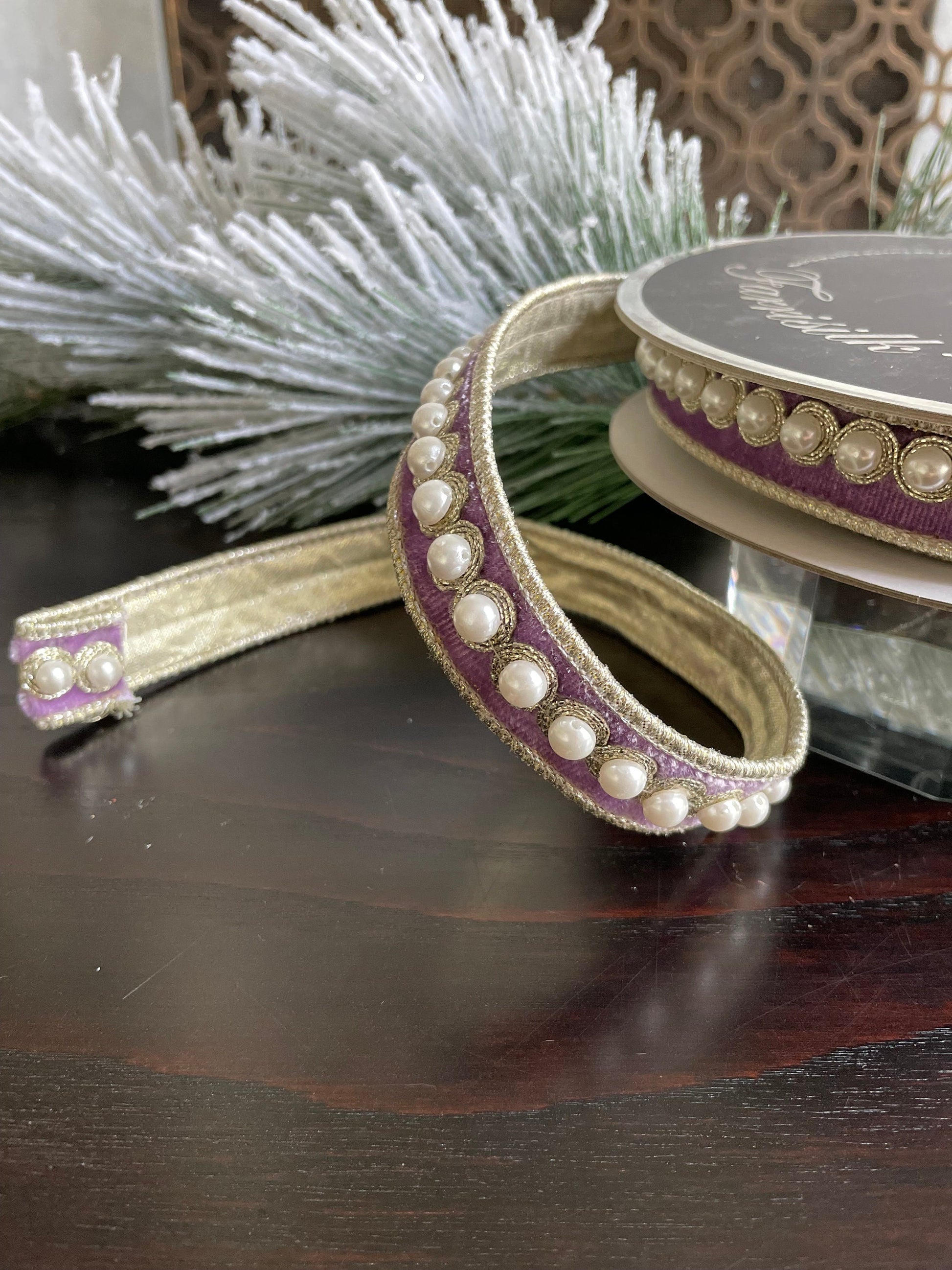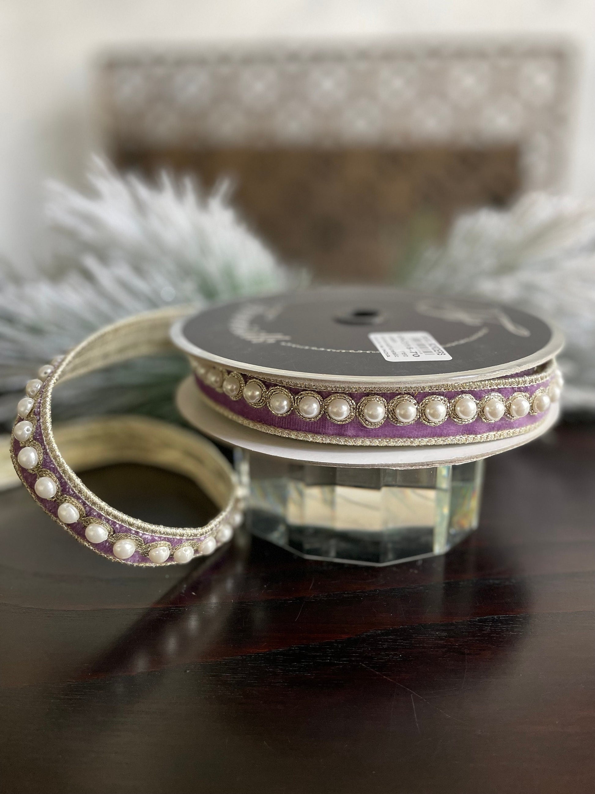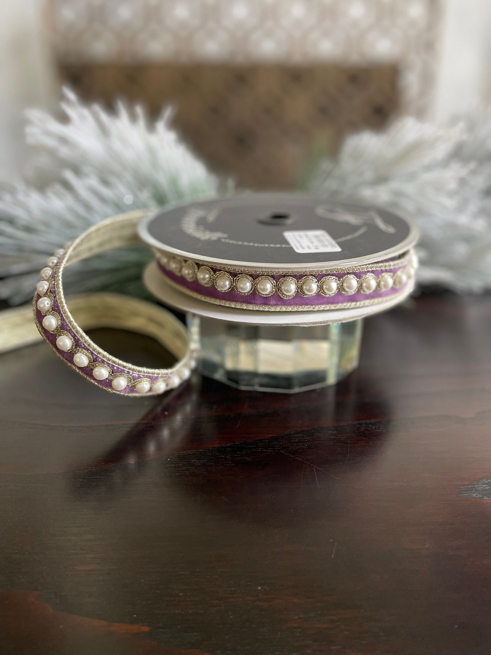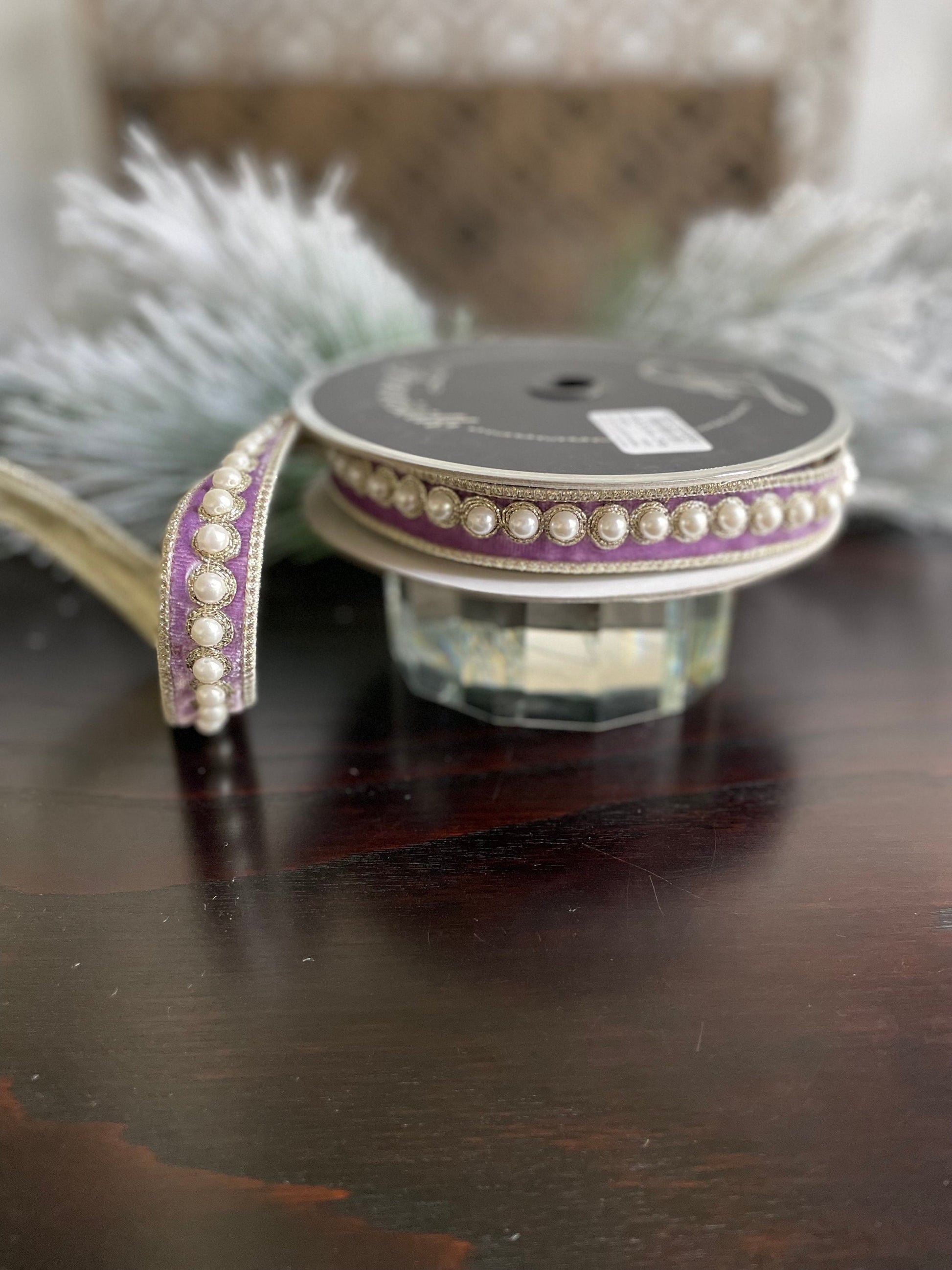 1” x 5 yds. Designer pearl borders velvet lavender ribbon. Wired. Farrisilk.