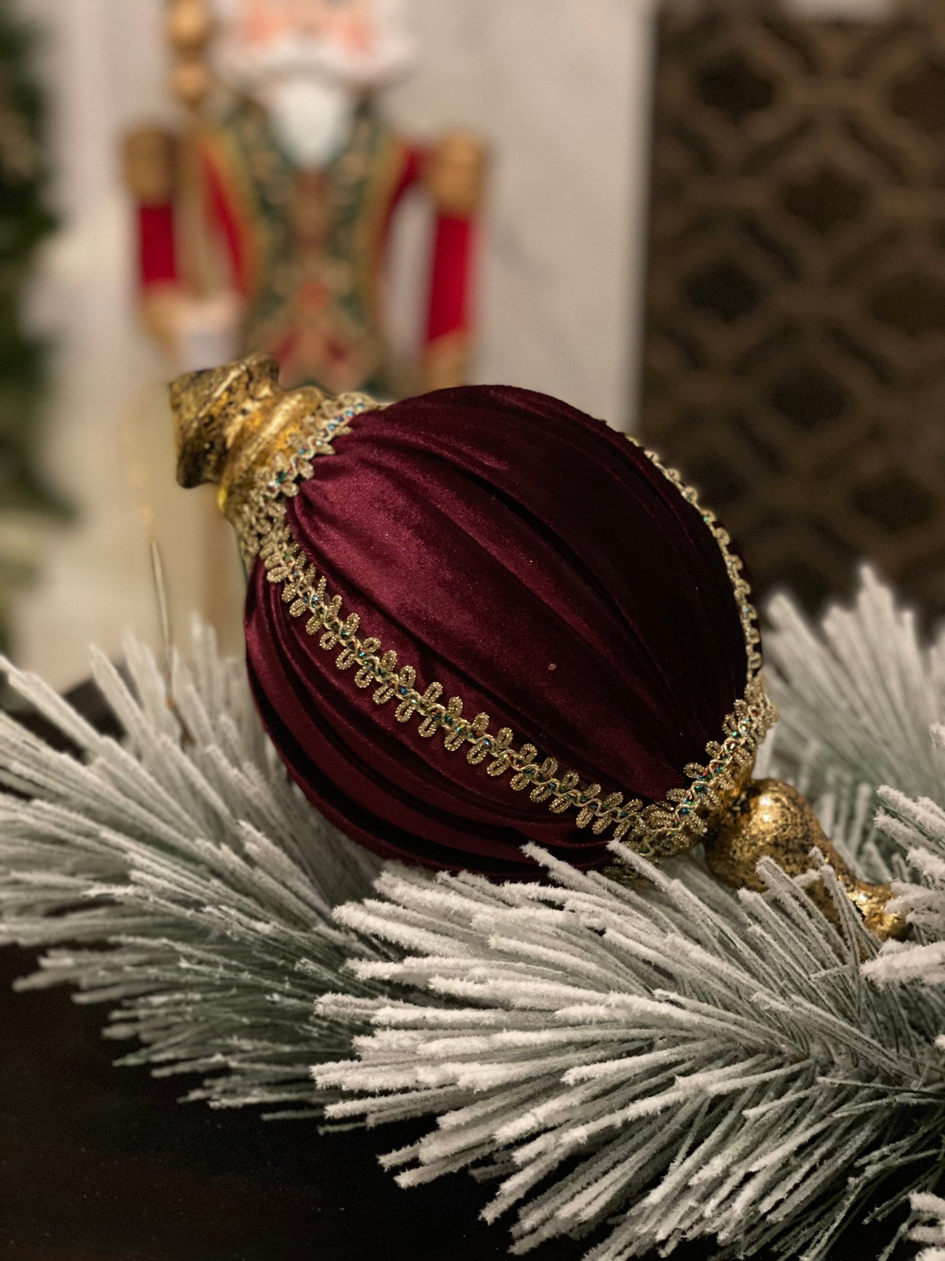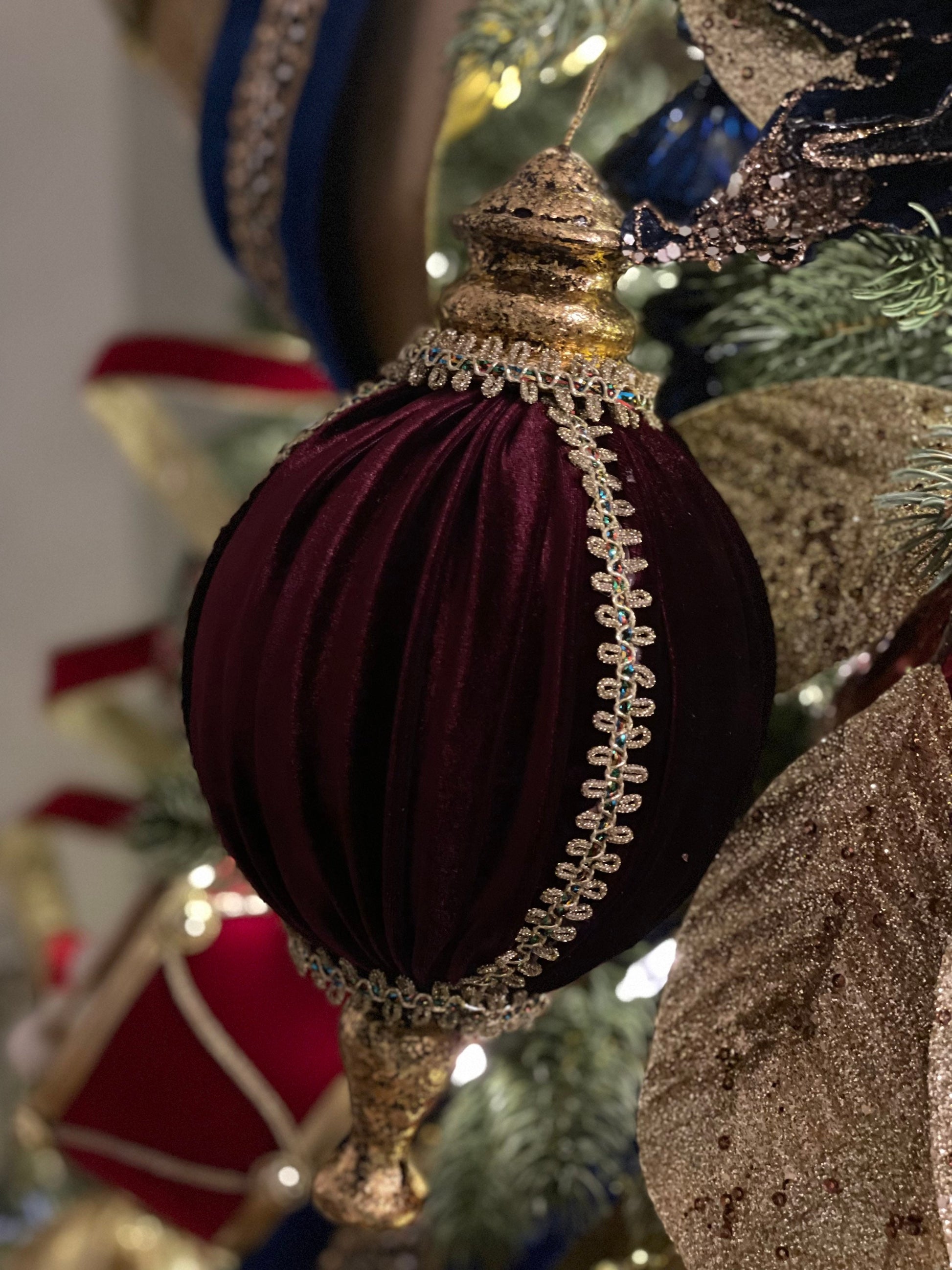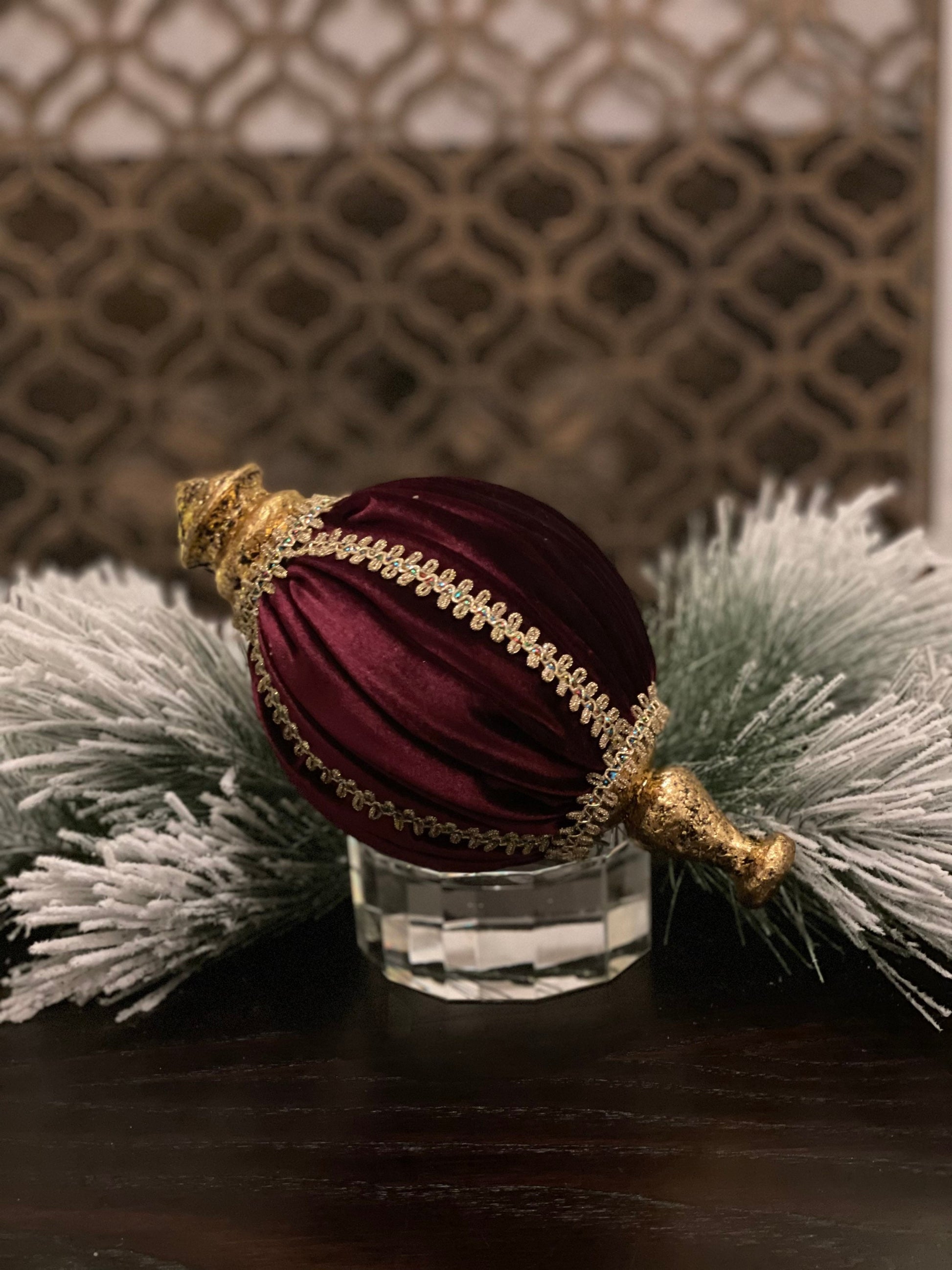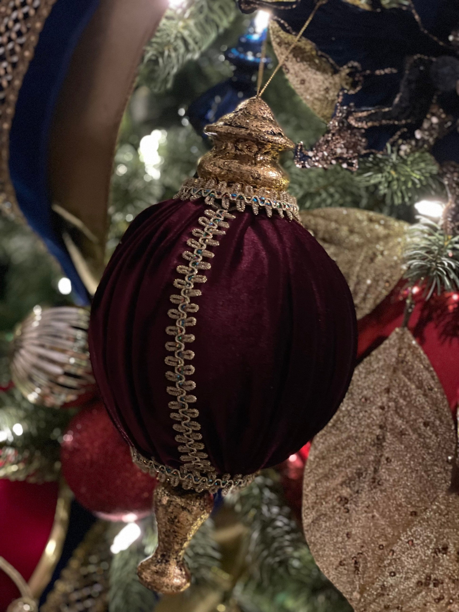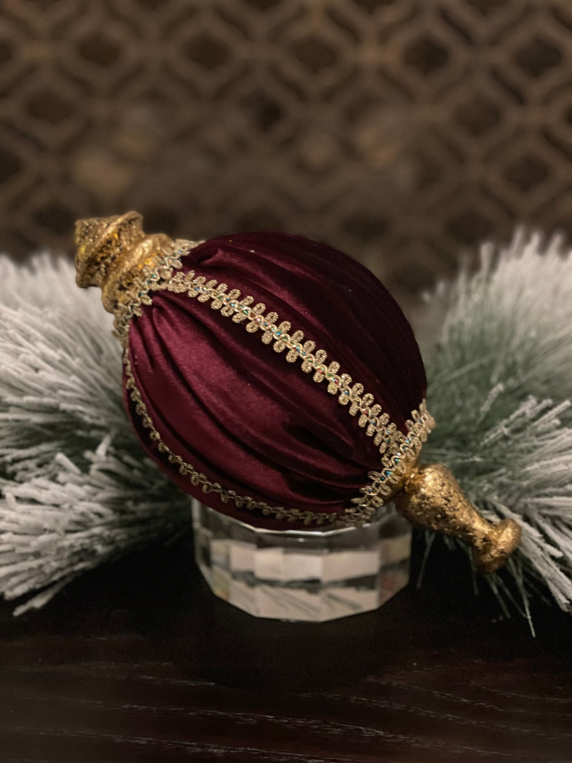 10.5” Velvet and lace finial ornament burgundy.