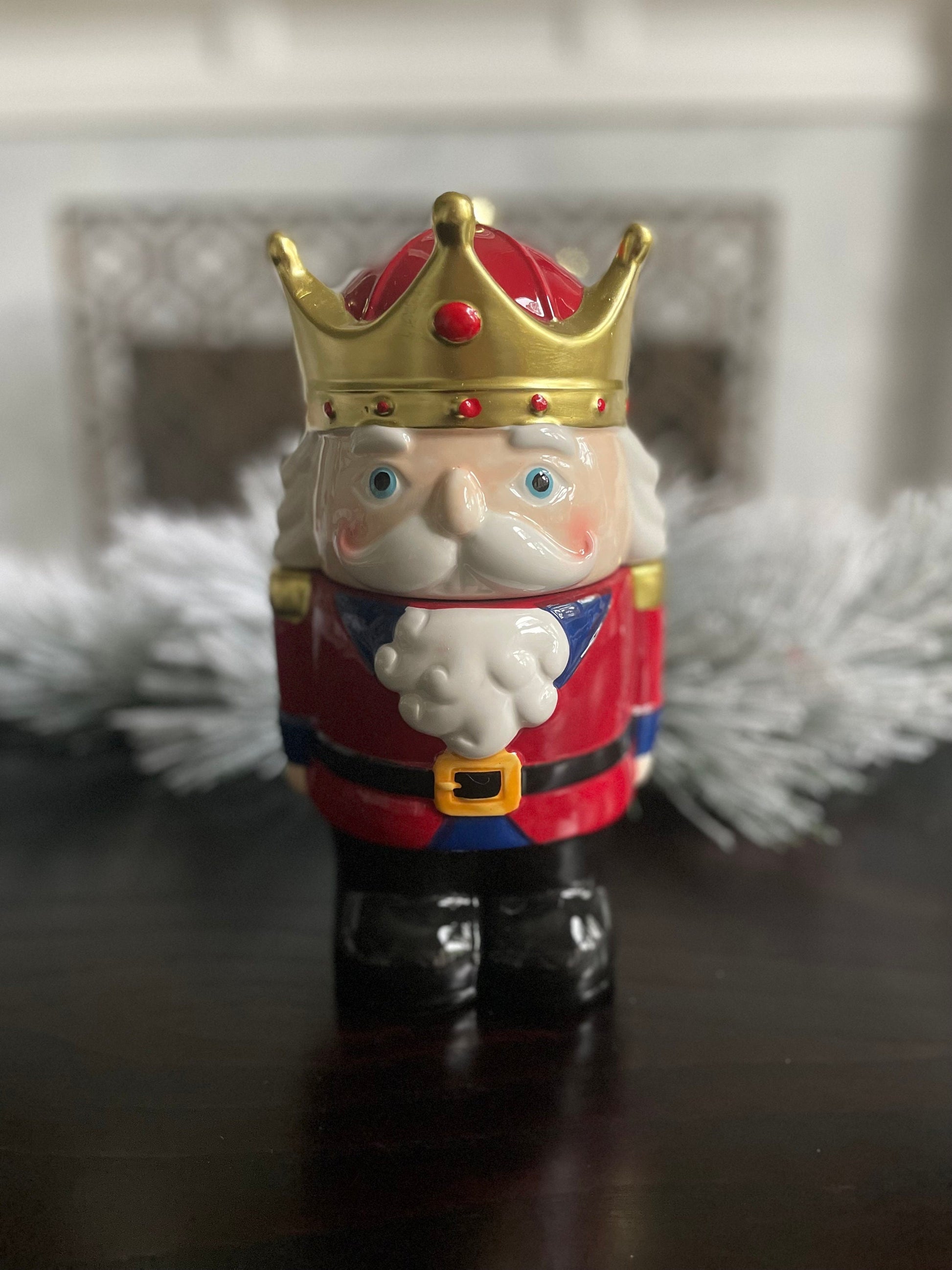 10”h x 6” w. Nutcracker dolomite cookie jar.