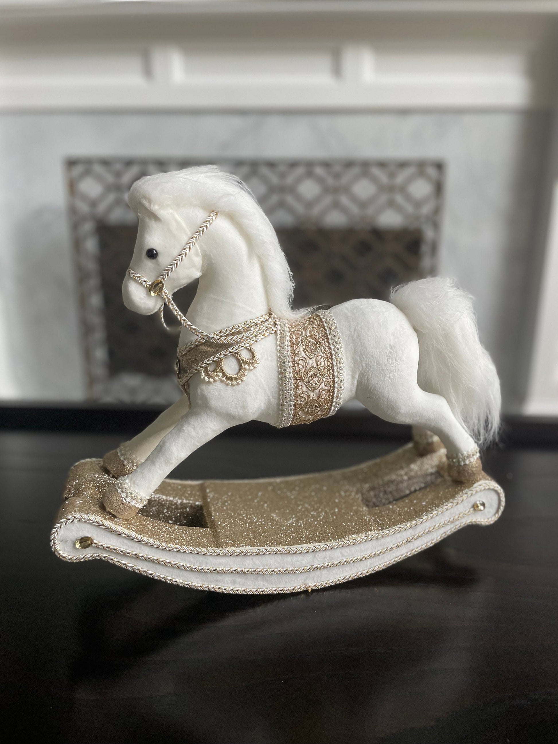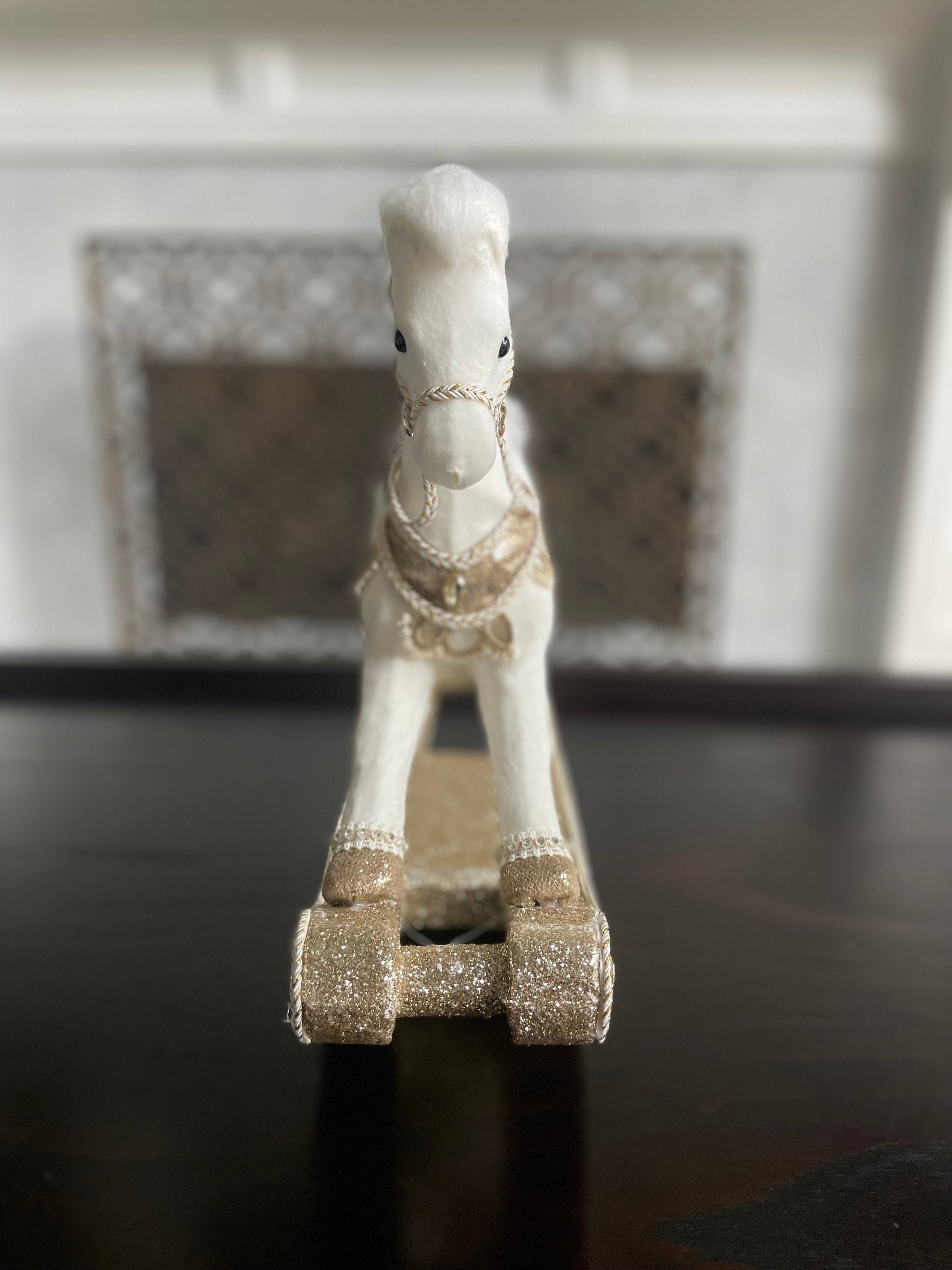 12”H x 15” L x 5” W. White Jeweled Rocking horse. Mark Roberts.