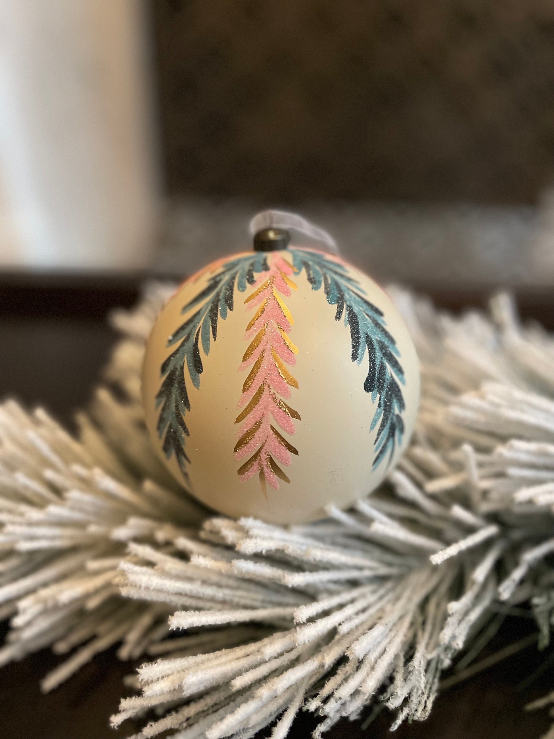 120 mm Vine ball ornament. White, pink, blue and gold. shatterproof.
