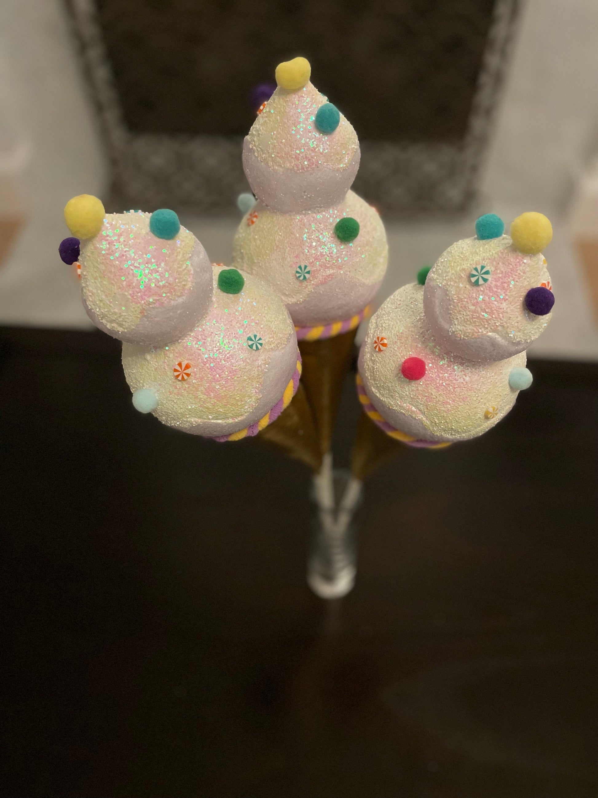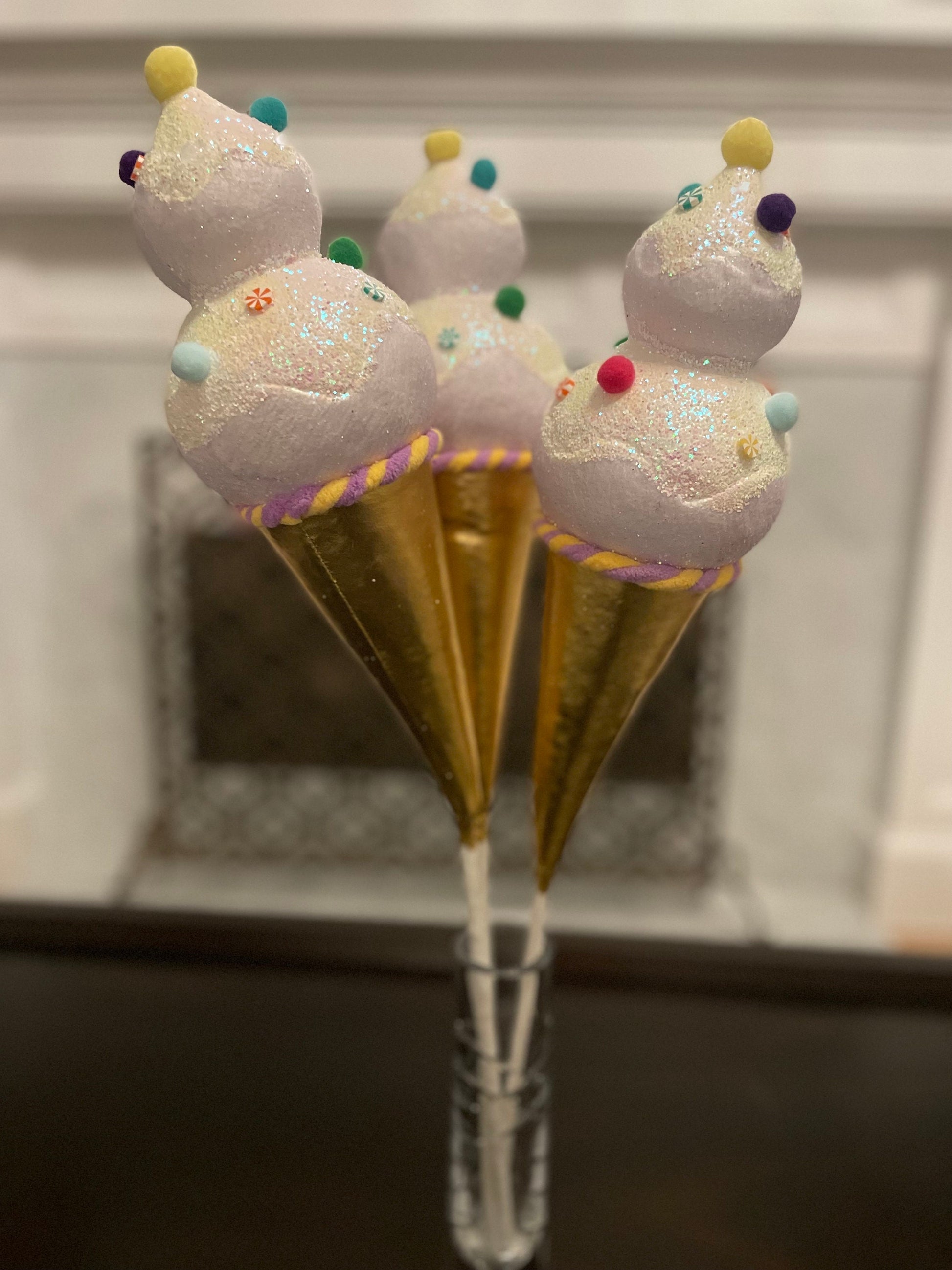 13” Ice cream with sprinkles ornament. Set of 3.