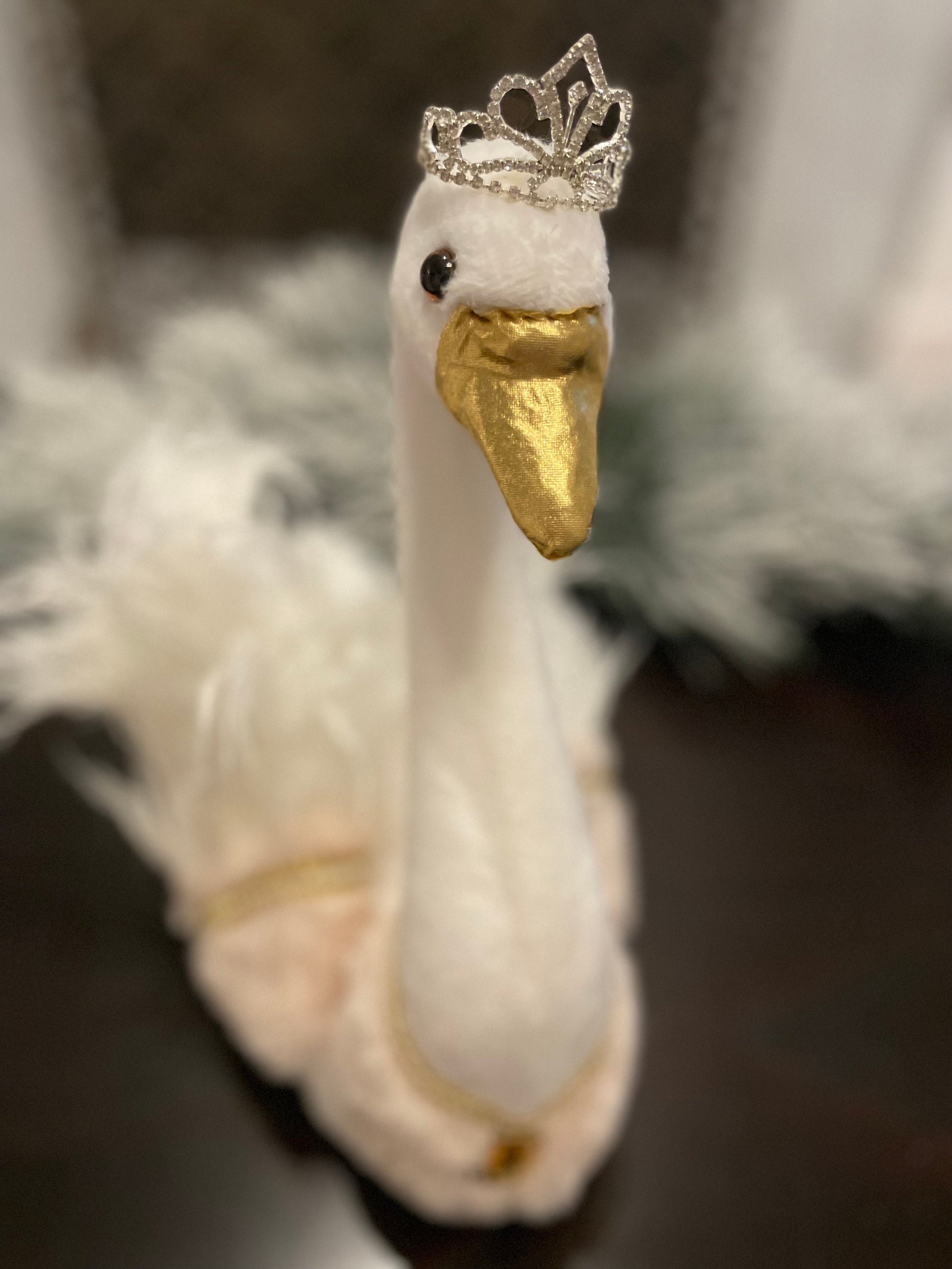 14"H x 14” L Swan blush beauty. Mark Roberts.