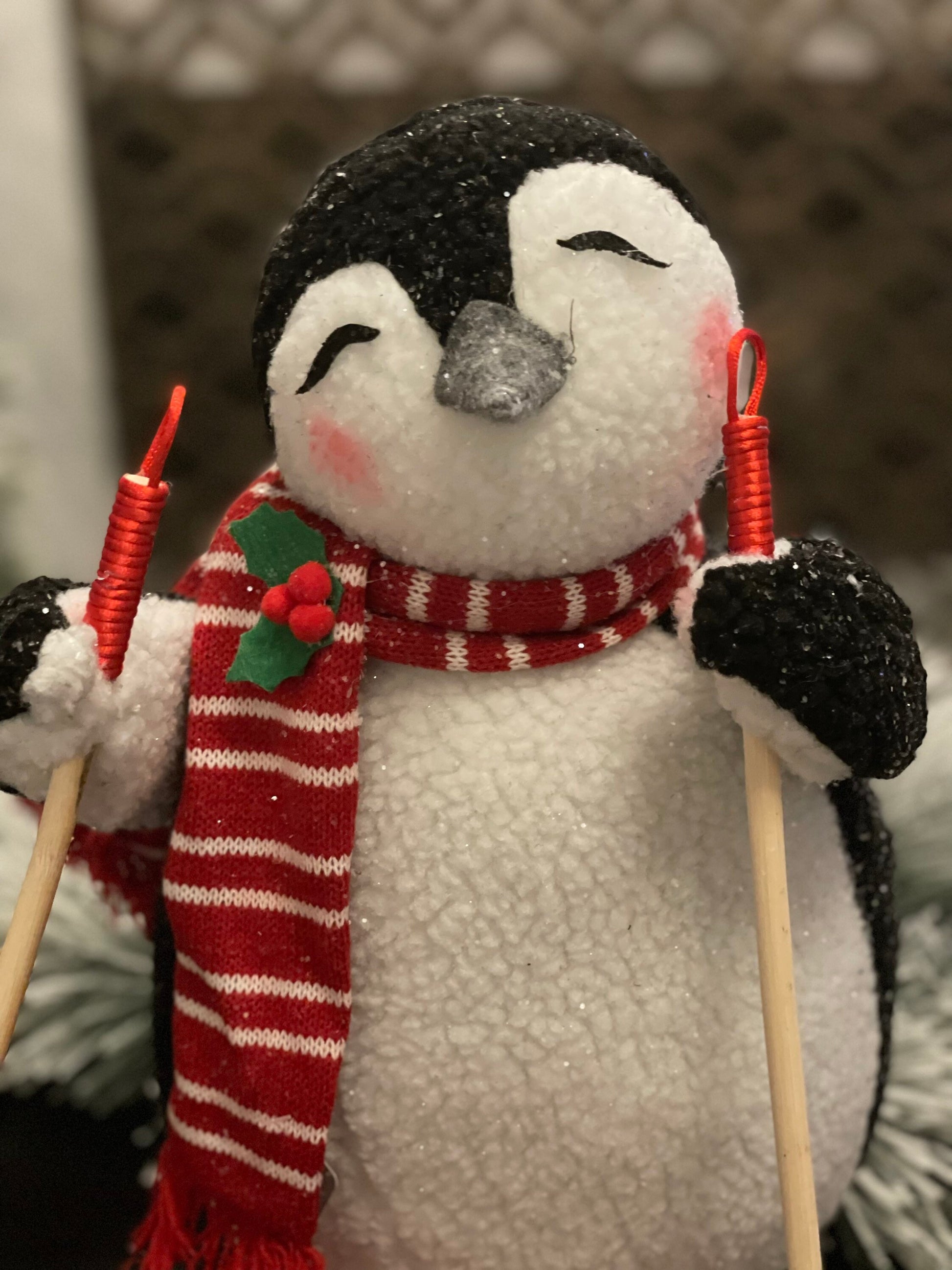 15.75" Skiing penguin. Set of 2. Glitter and fabric. So cute!