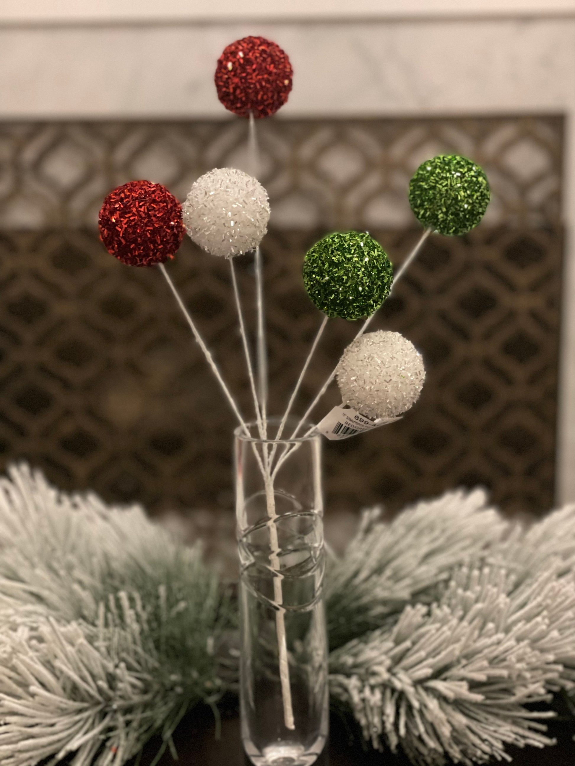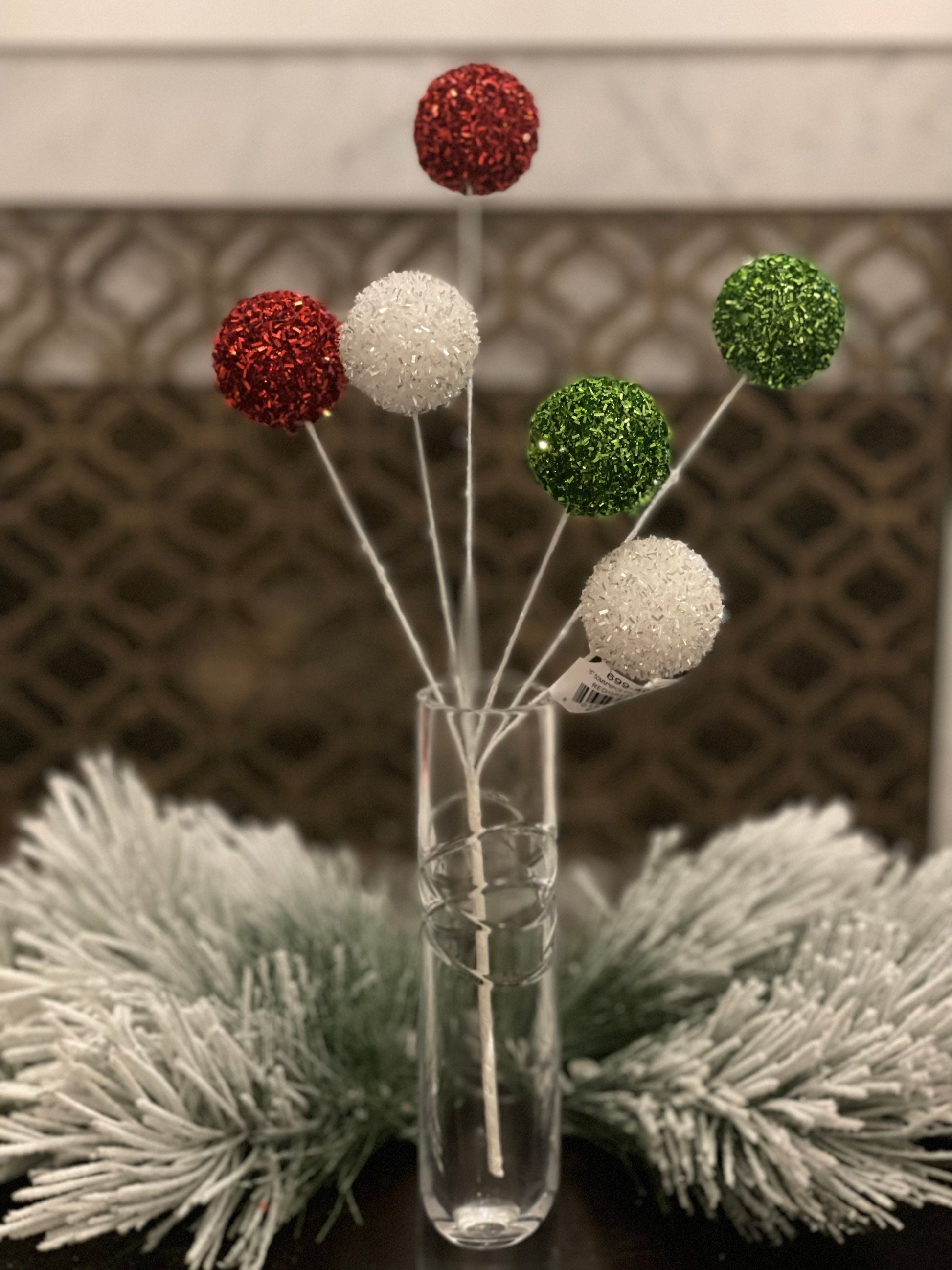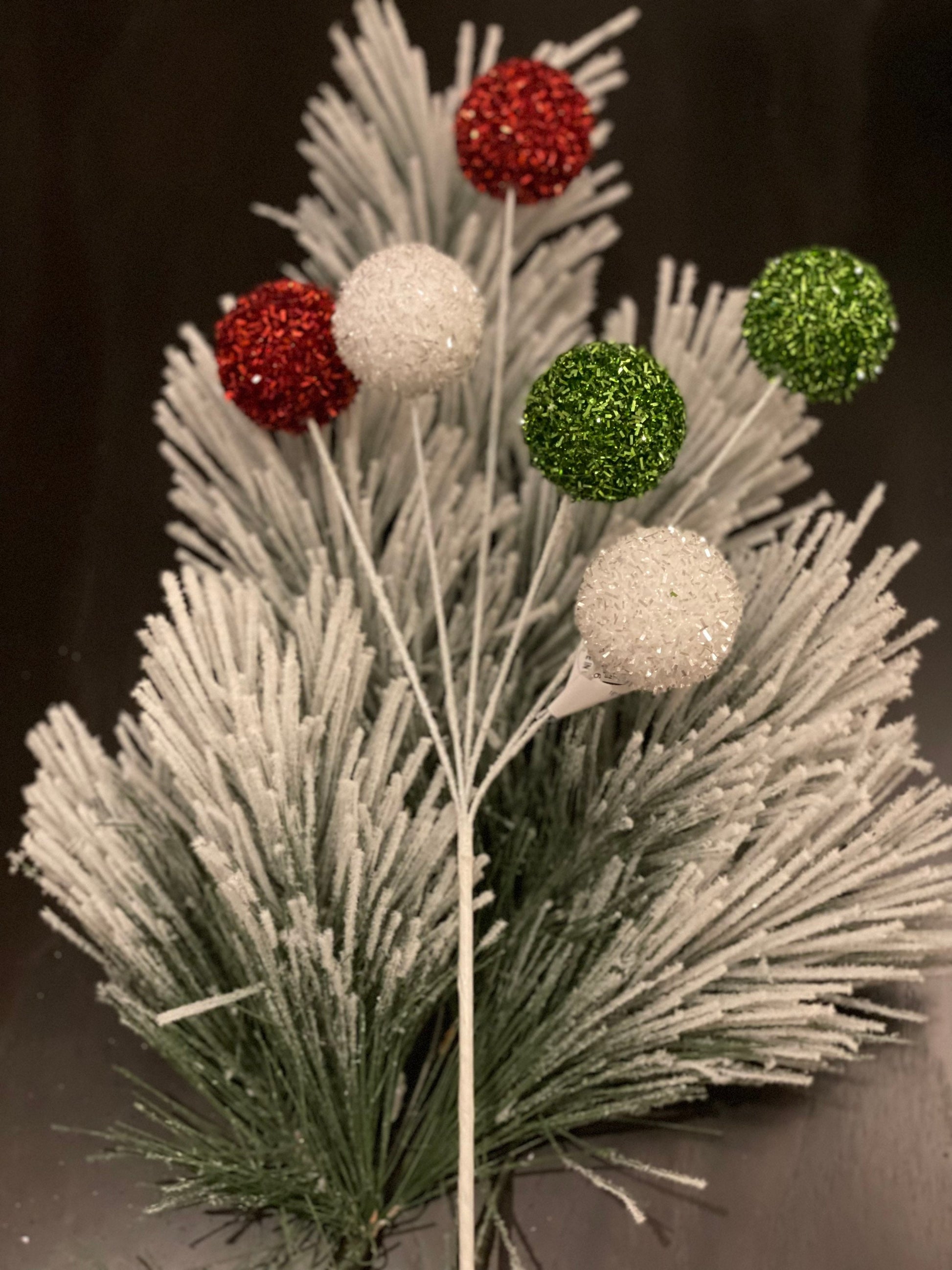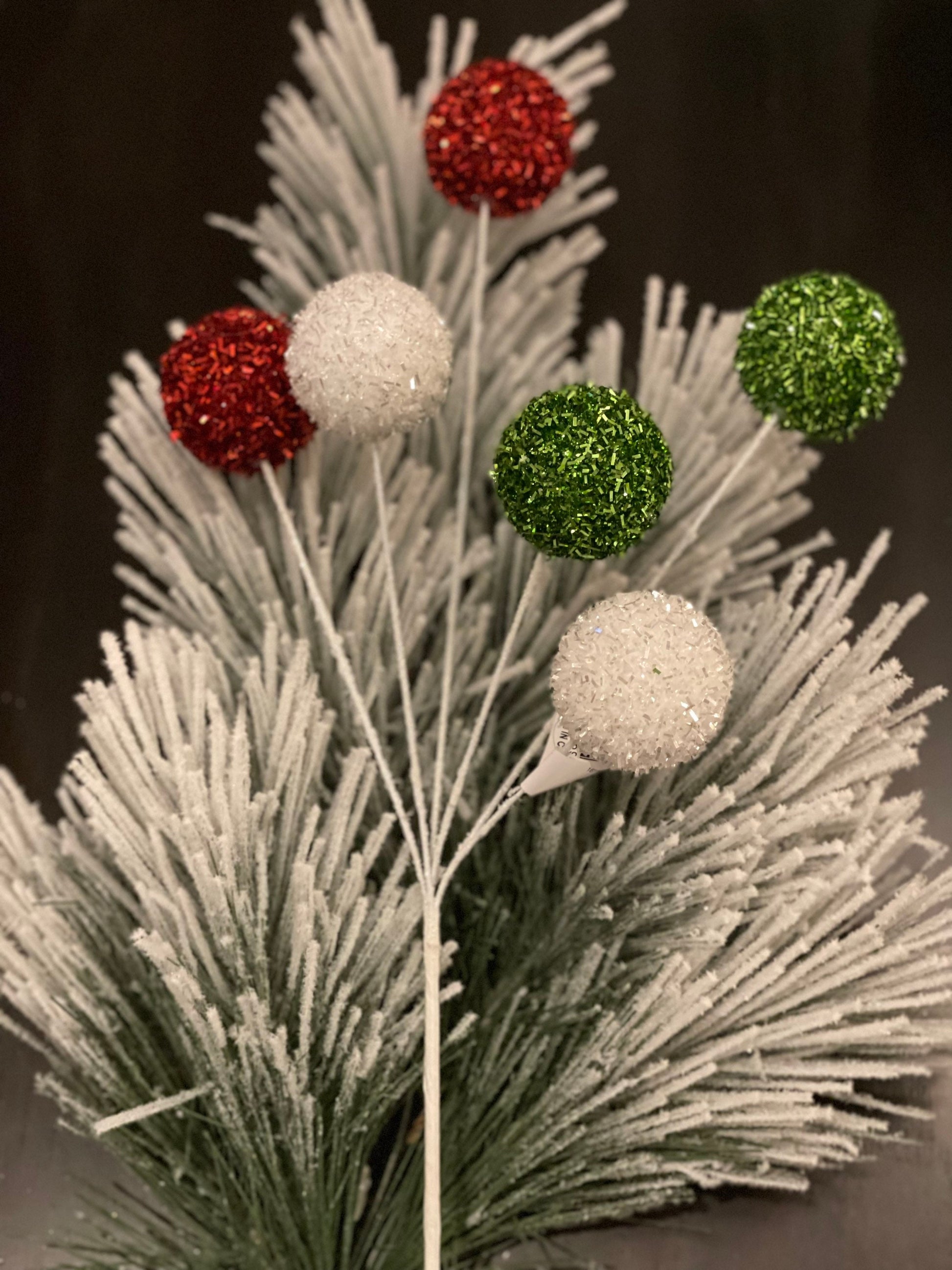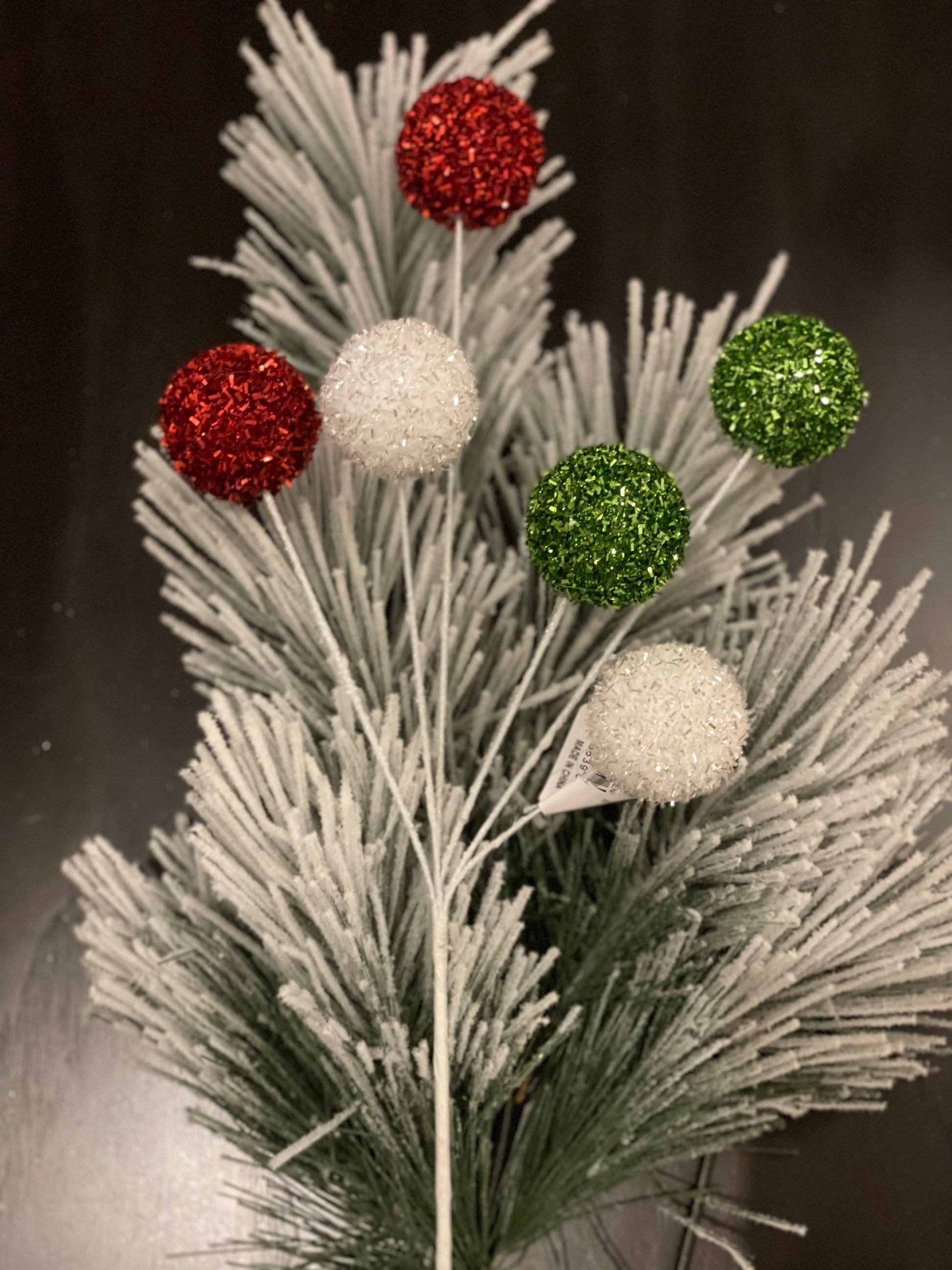 16” pick ball red/white/green. This listing is just for one spray. The flocked branch is not included.