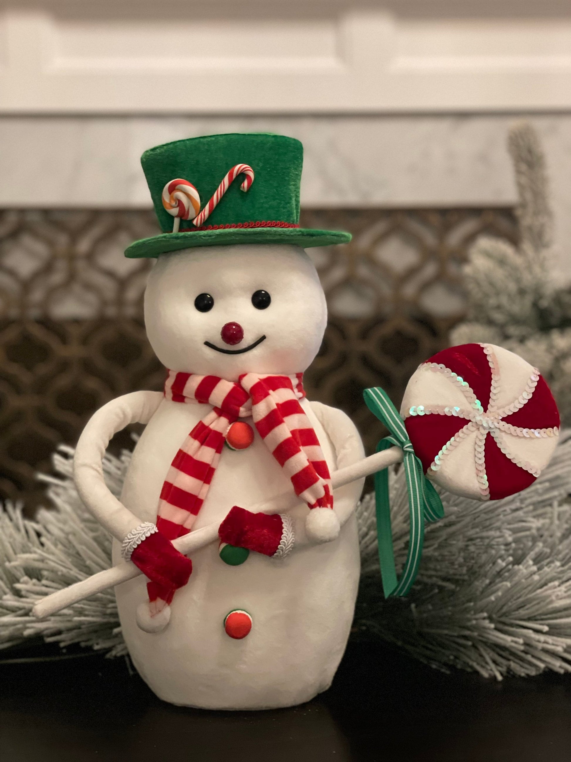 16"velvet snowman w/scarf & lollipop