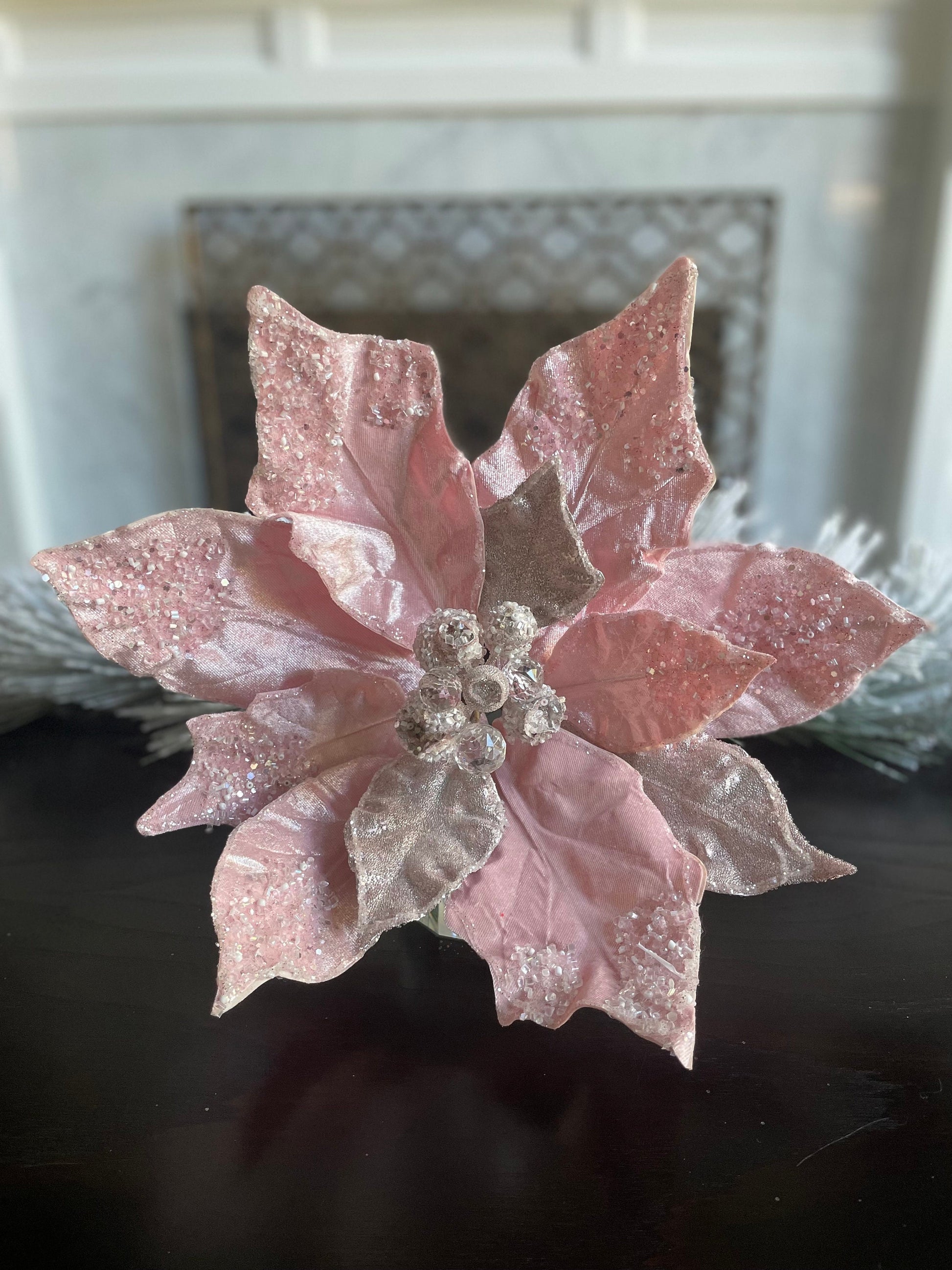 17.5”Extra large Poinsettia stem blush pink. Beaded and glitter. 17.5” tip to tip.