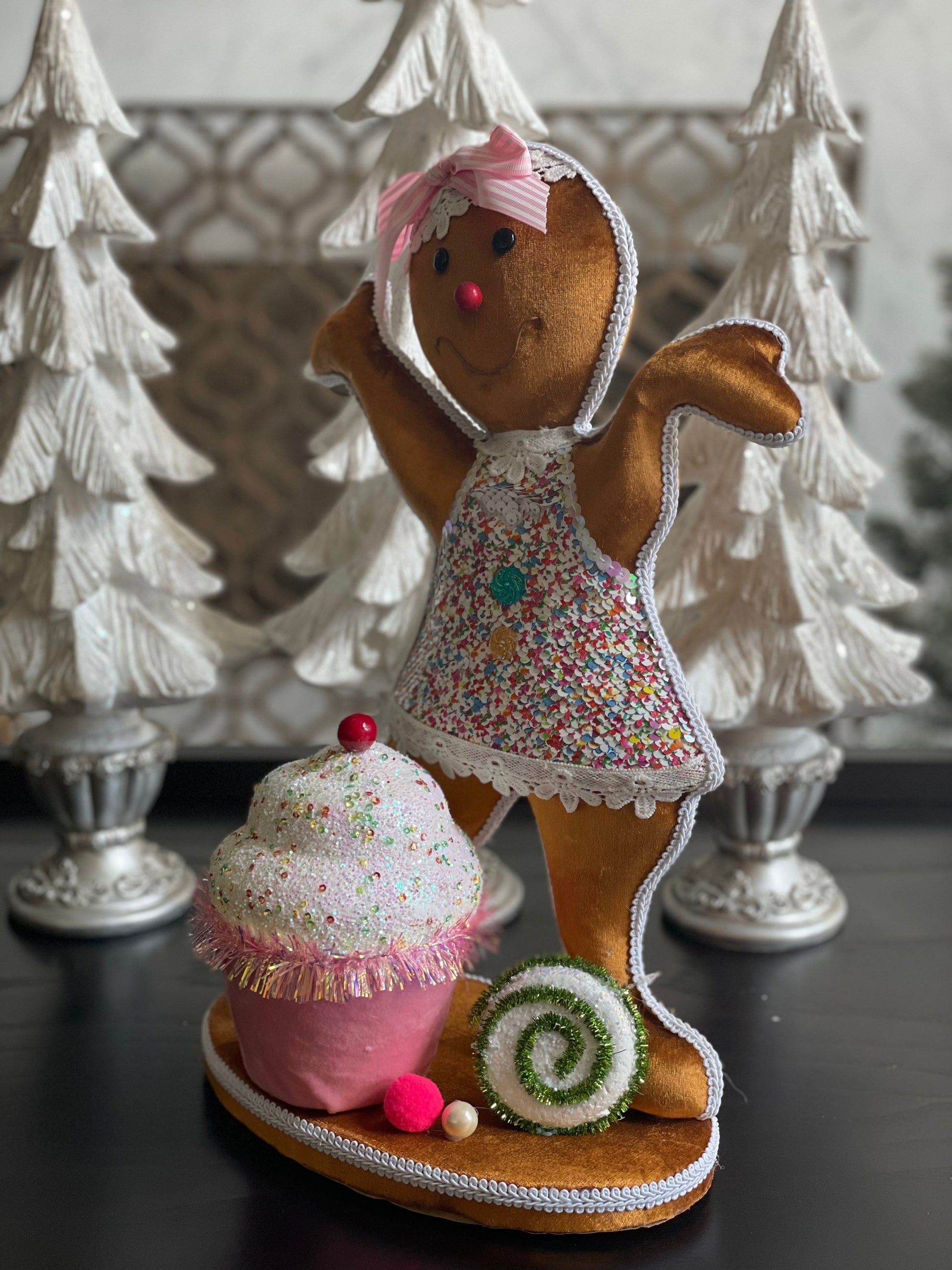 17” gingerbread girl with cupcake. Christmas multi color. Lightweight.