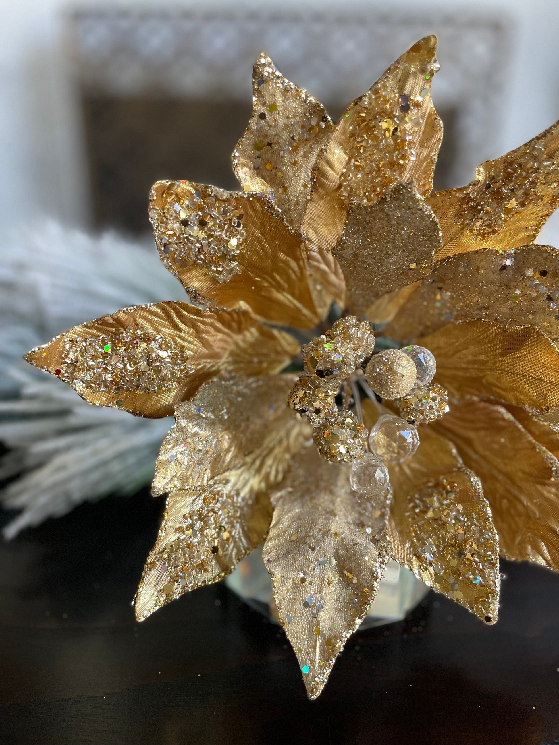 This listing is just for one poinsettia, the green flocked branch is not included.