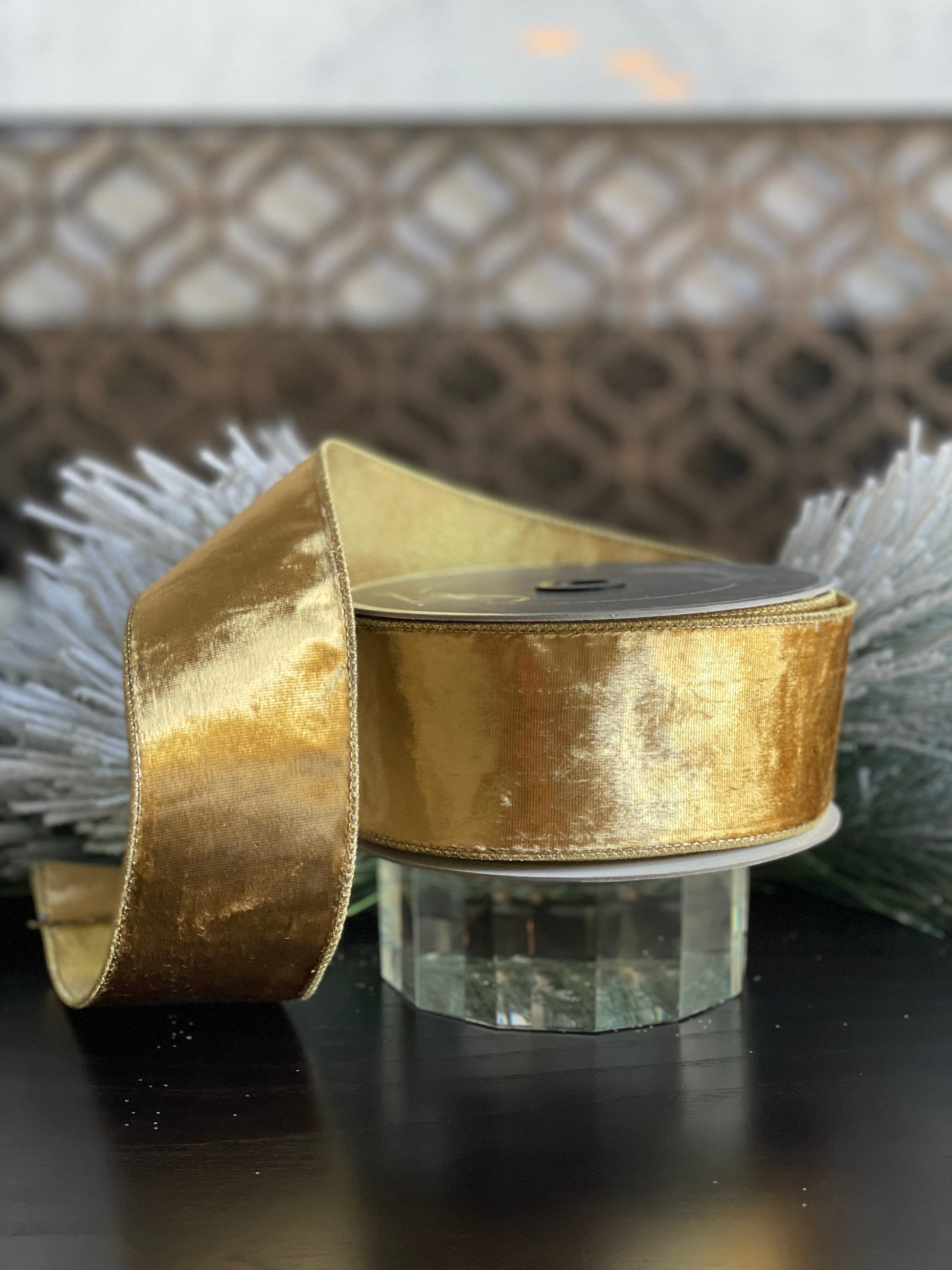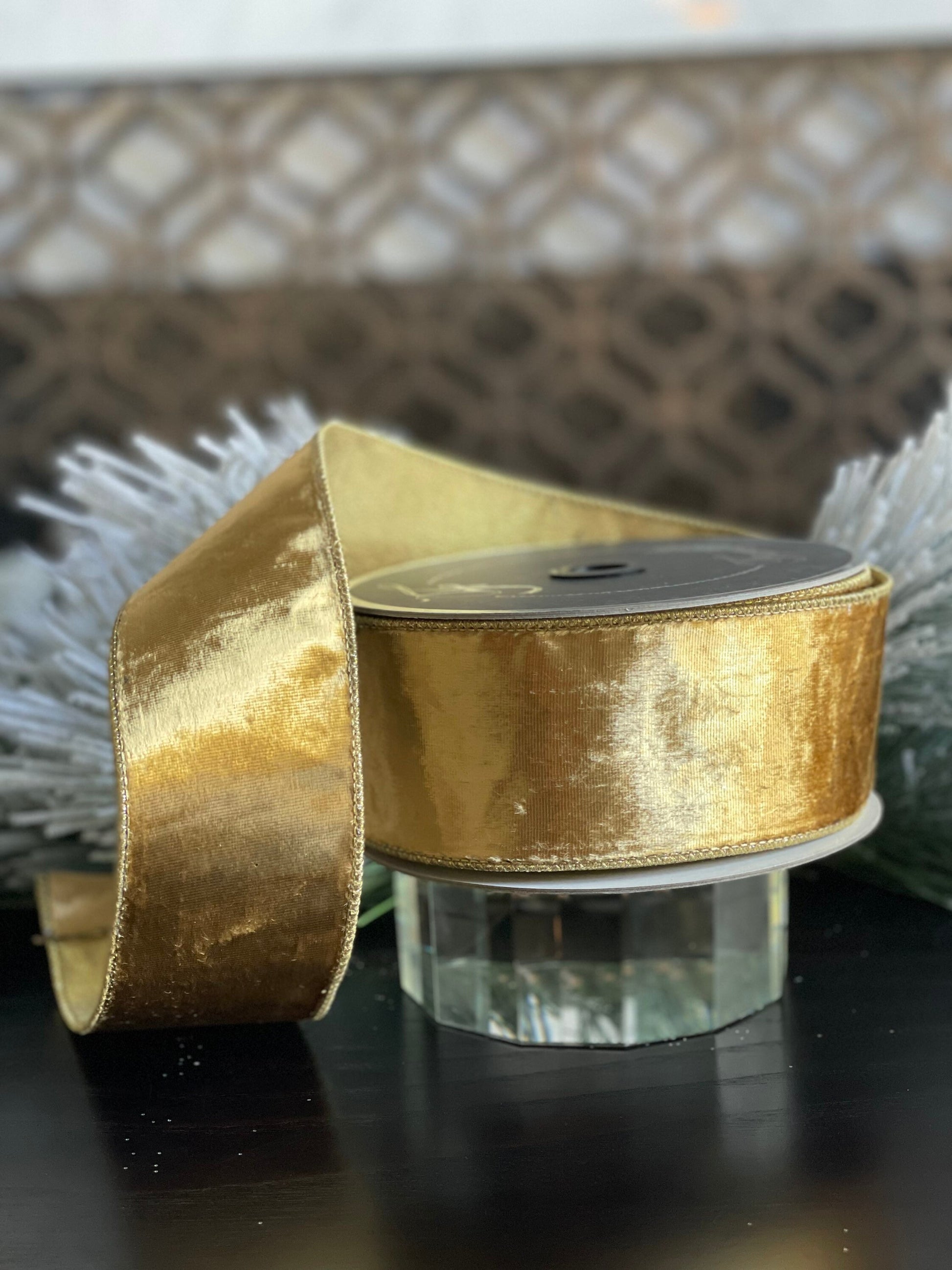2.5” x 10 yards flashy velvet gold ribbon. designer ribbon. Farrisilk