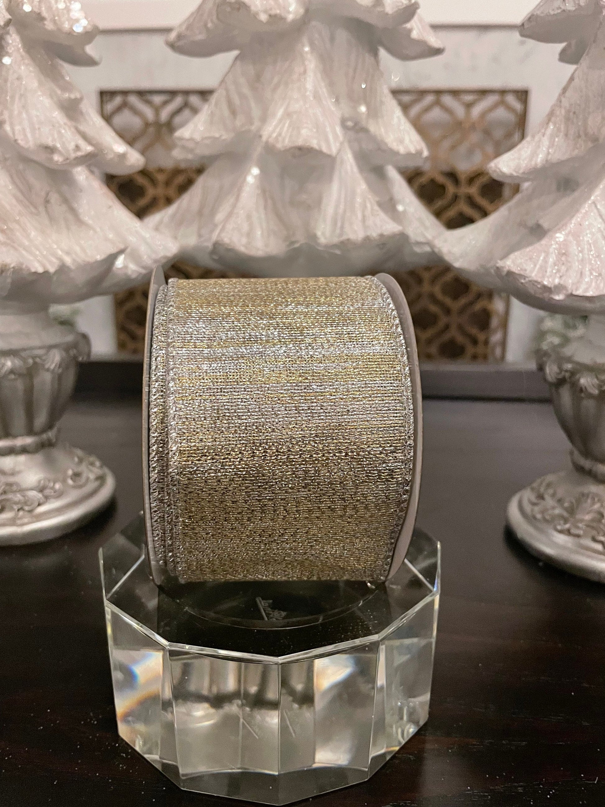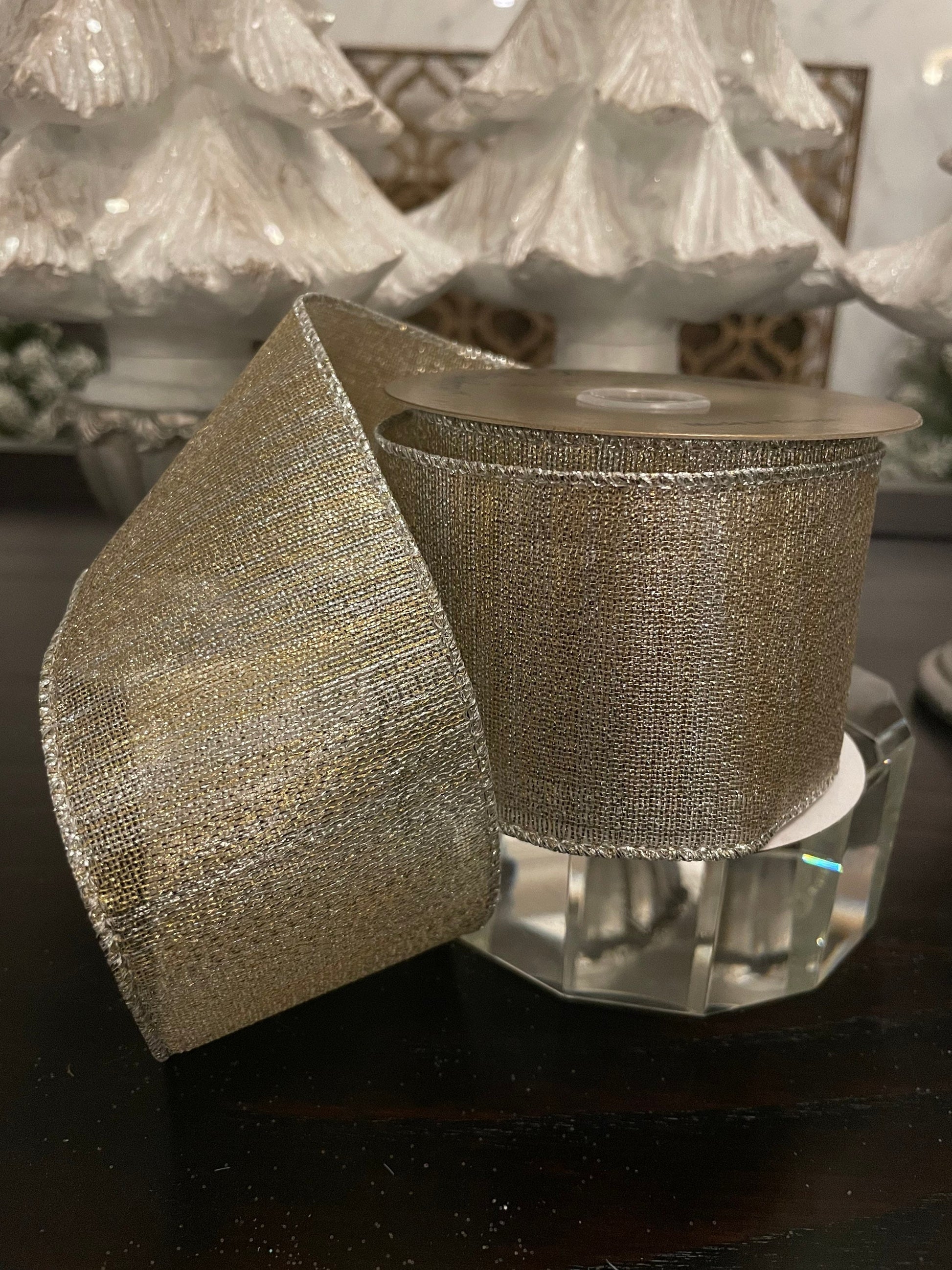 2.5” x 10 yd metallic ribbon wired. Platinum.*