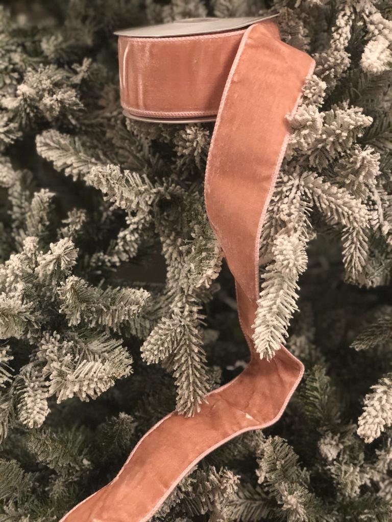 2.5” x 10 yds. Velvet designer ribbon, rose/pink.