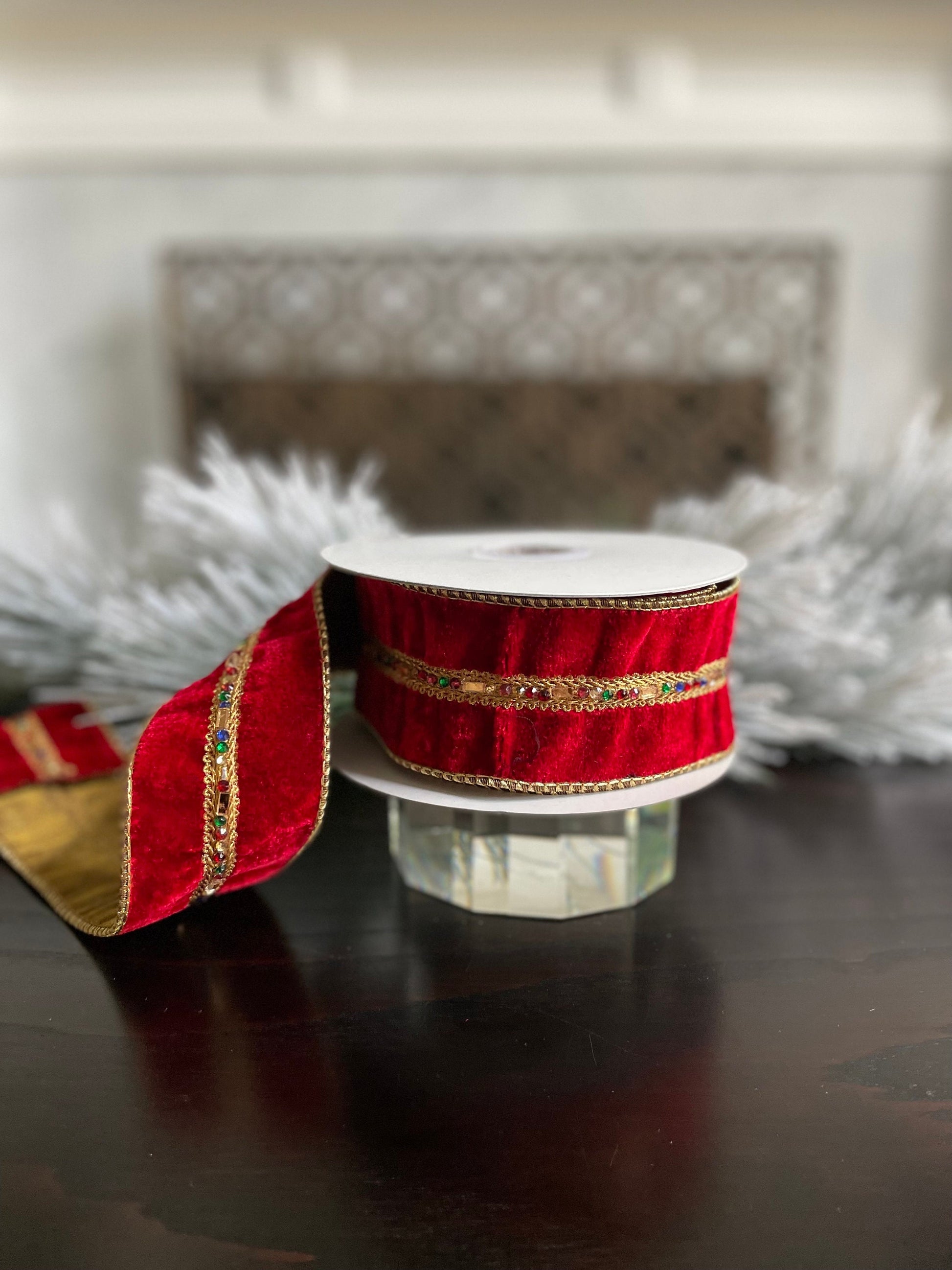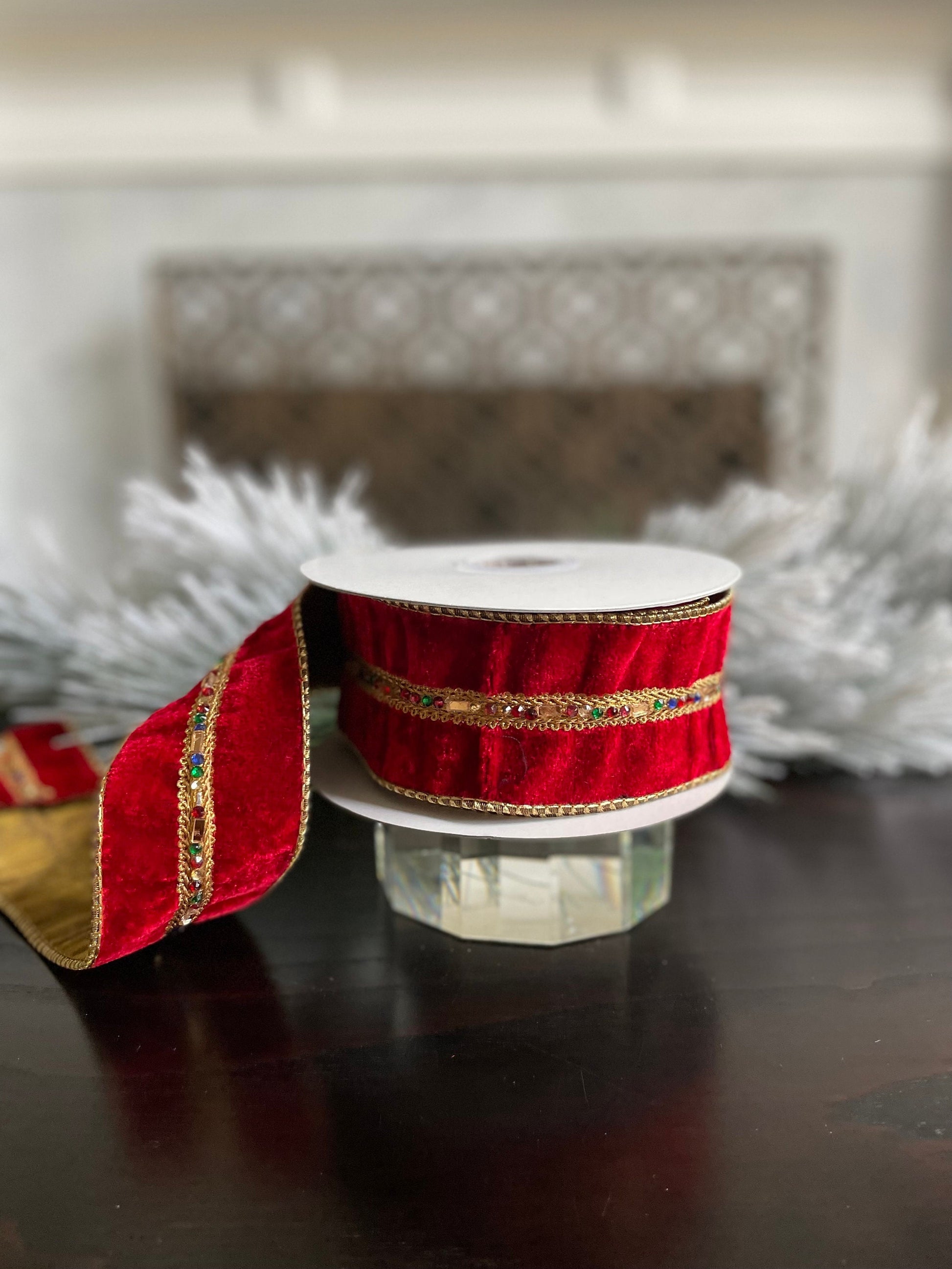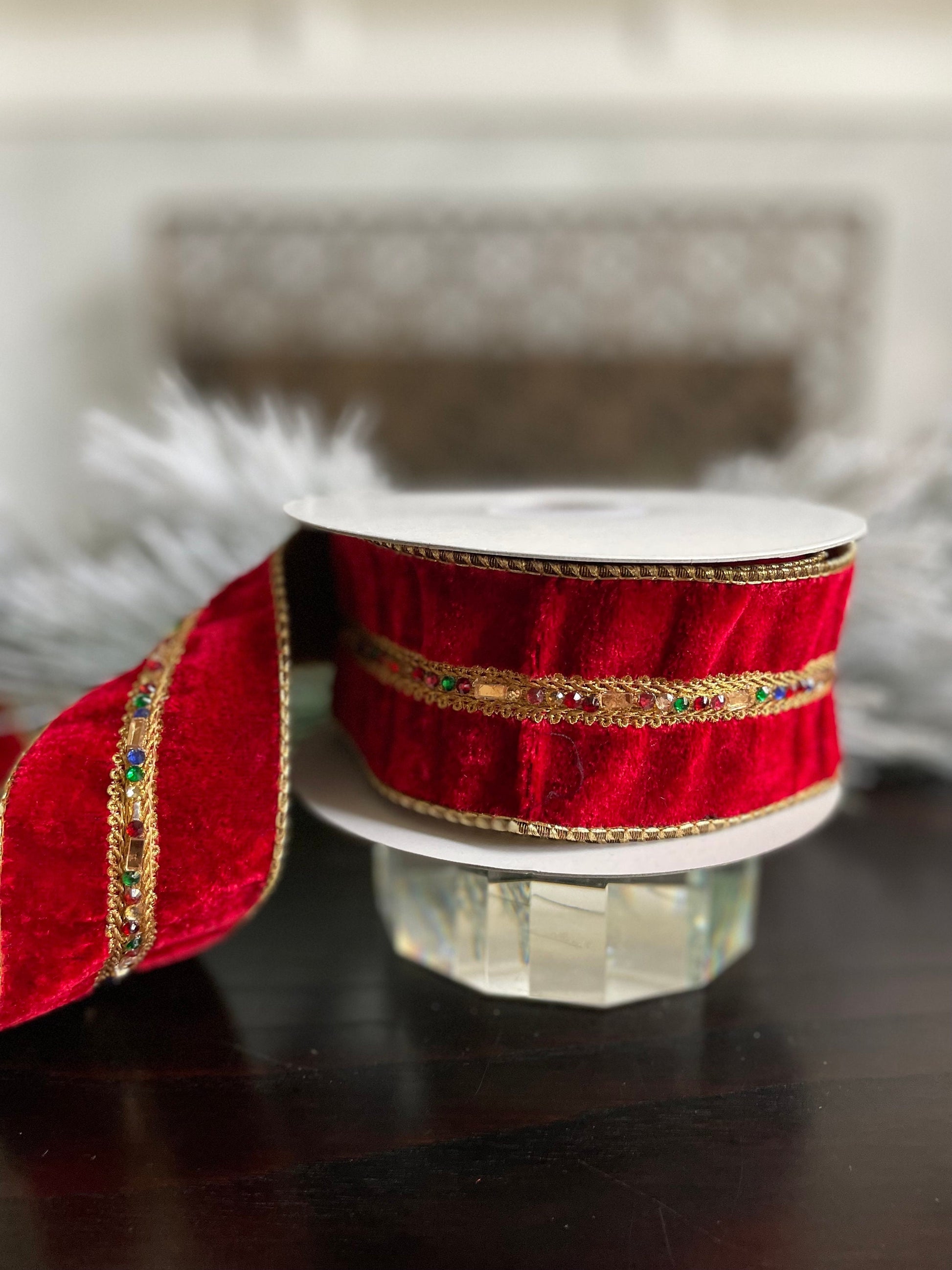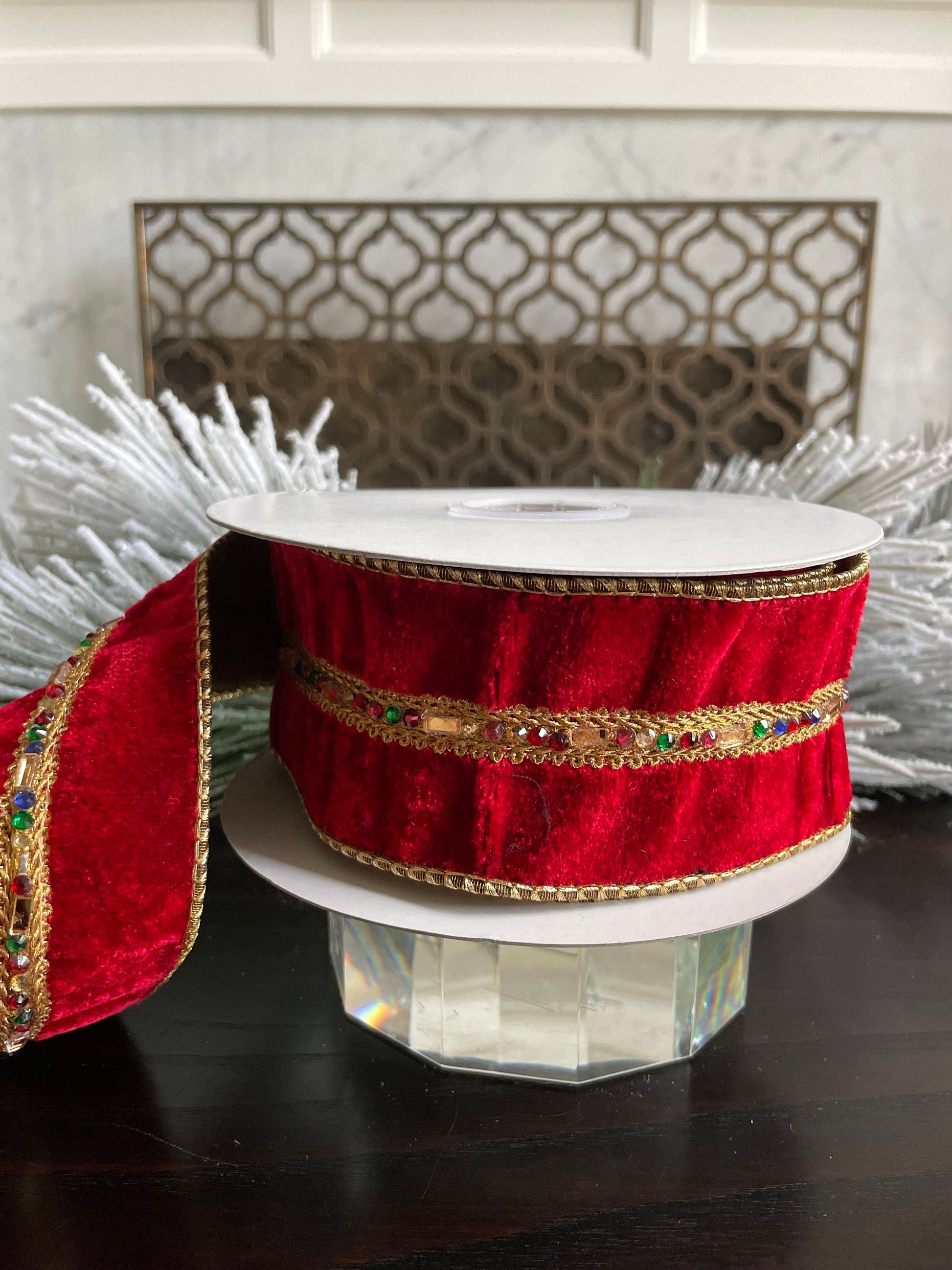 2.5” x 5 yds. Designer diamond jewel trim velvet ribbon. Wired. Regency. Gorgeous!*