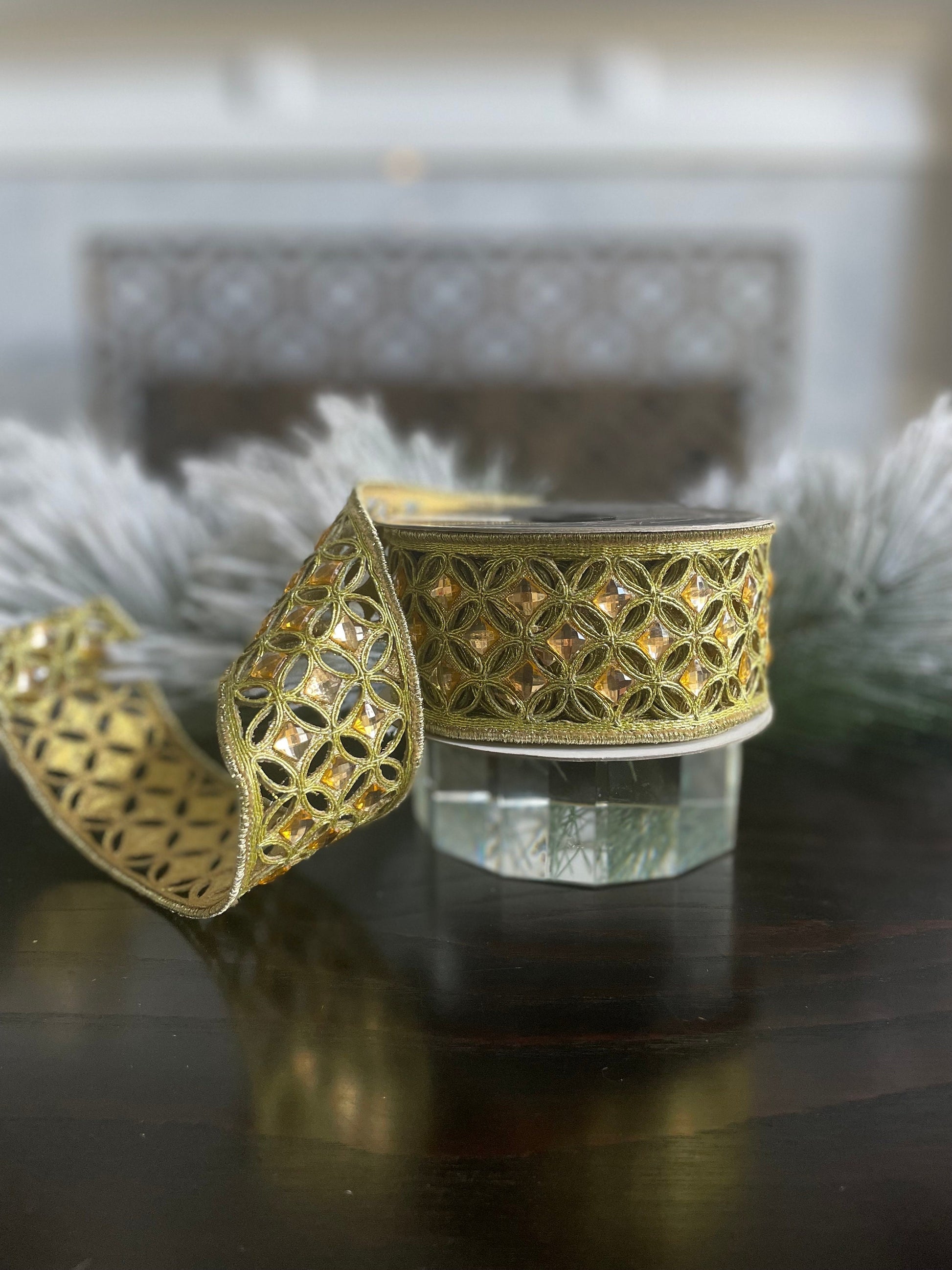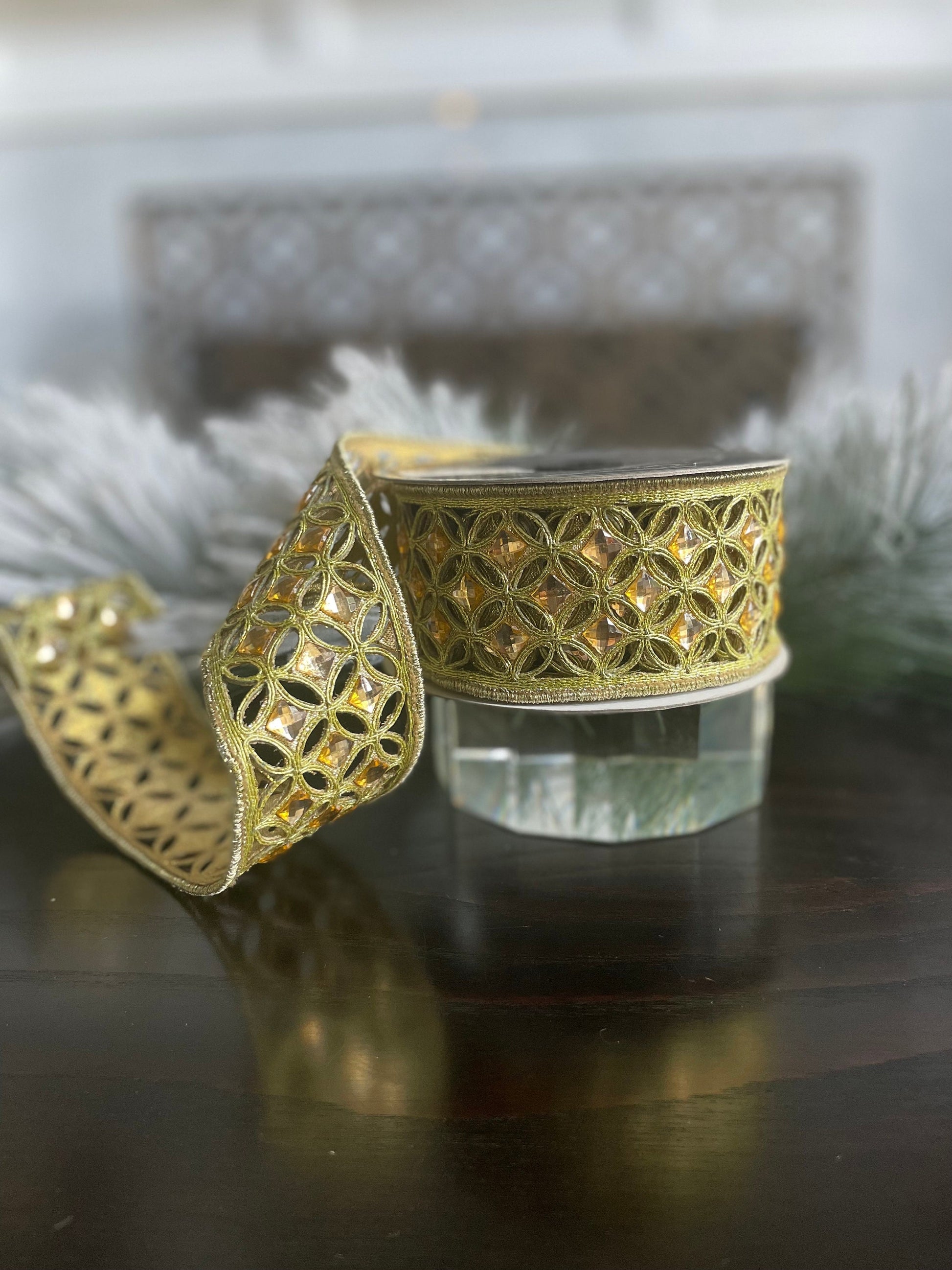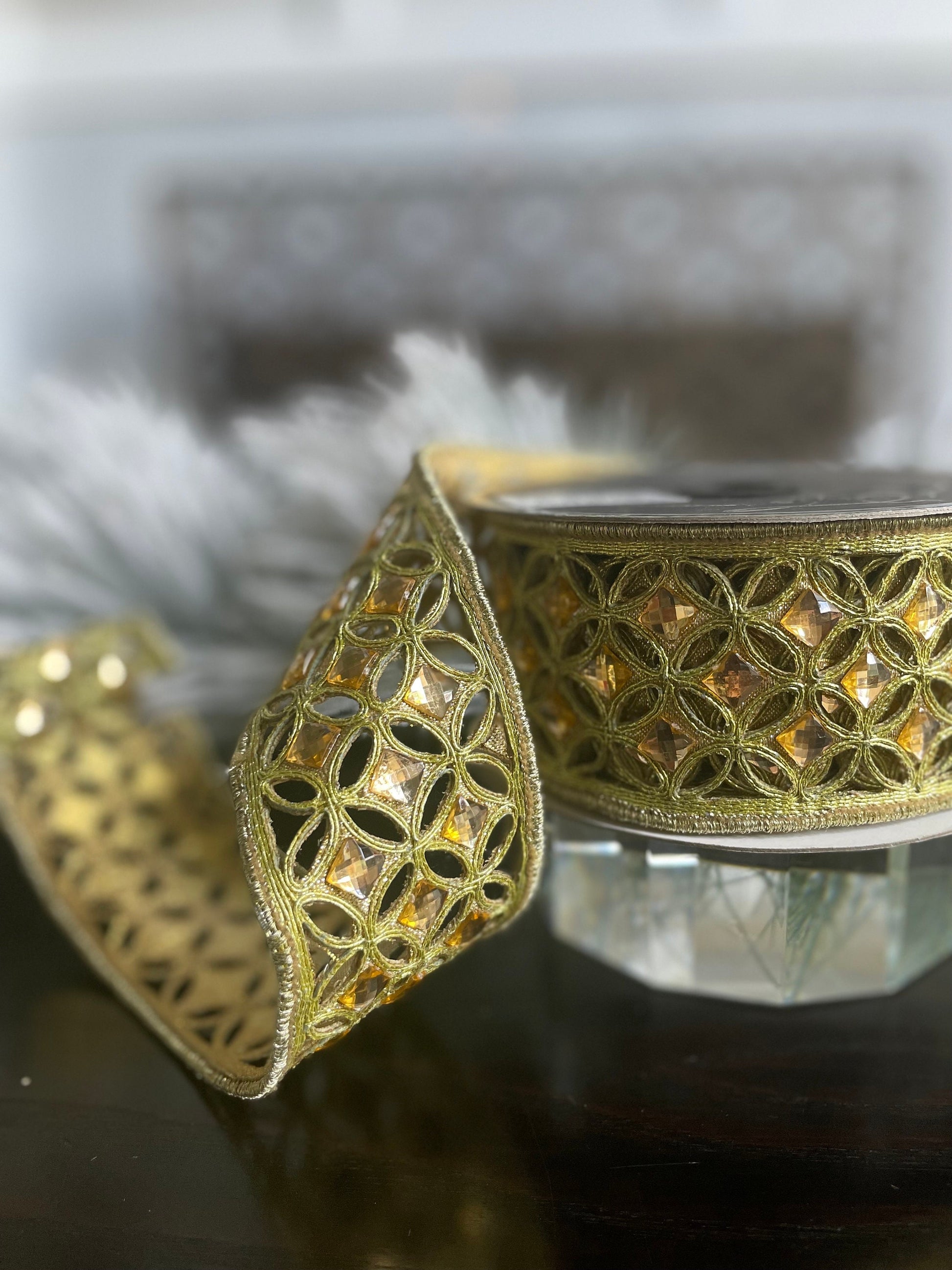 2” x 5 yds. Diamond lace gold wired ribbon. Farrisilk.