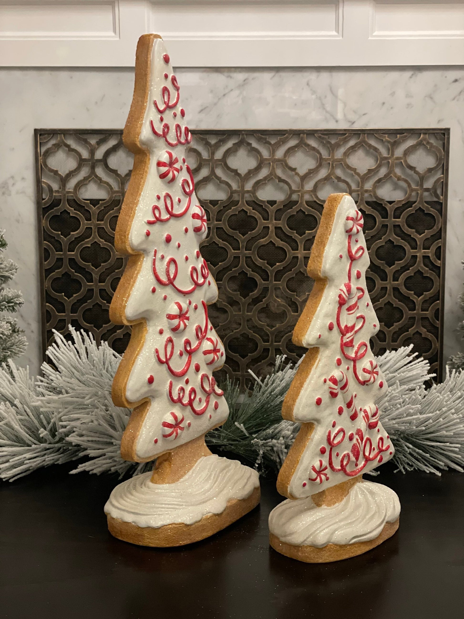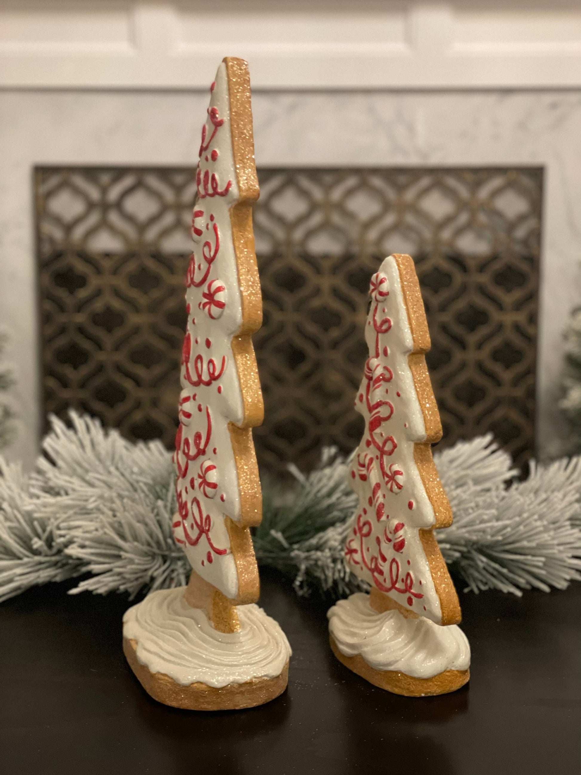 20.25" and 14” Peppermint gingergread trees. Resin. SET of 2.