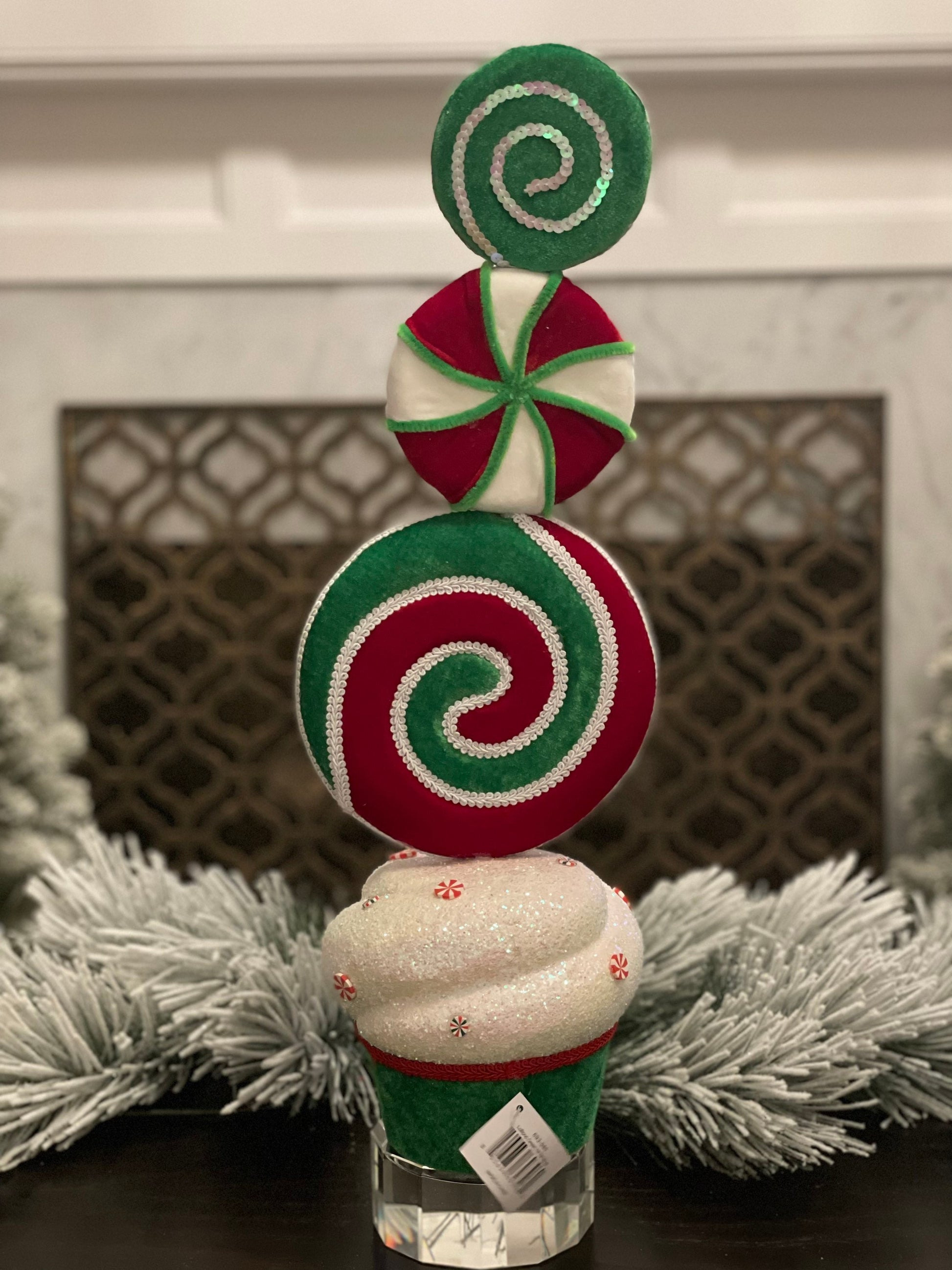 22” topiary mints green/red/white. Lightweight. Velvet fabric.