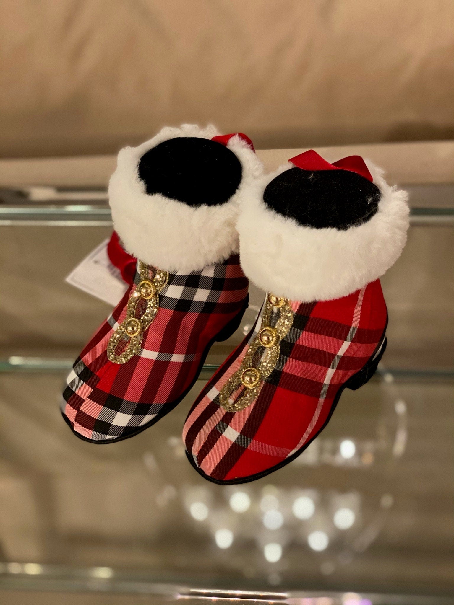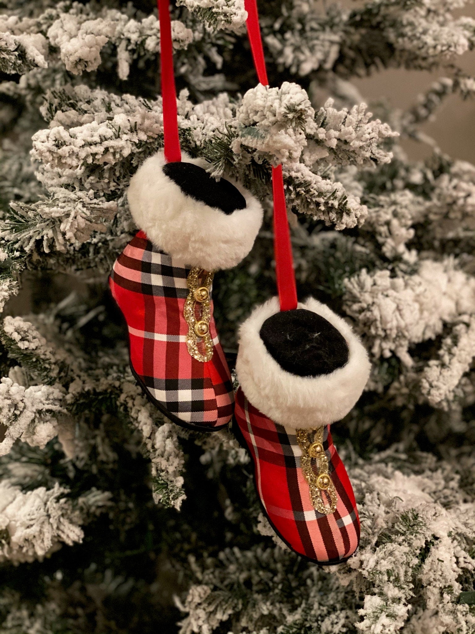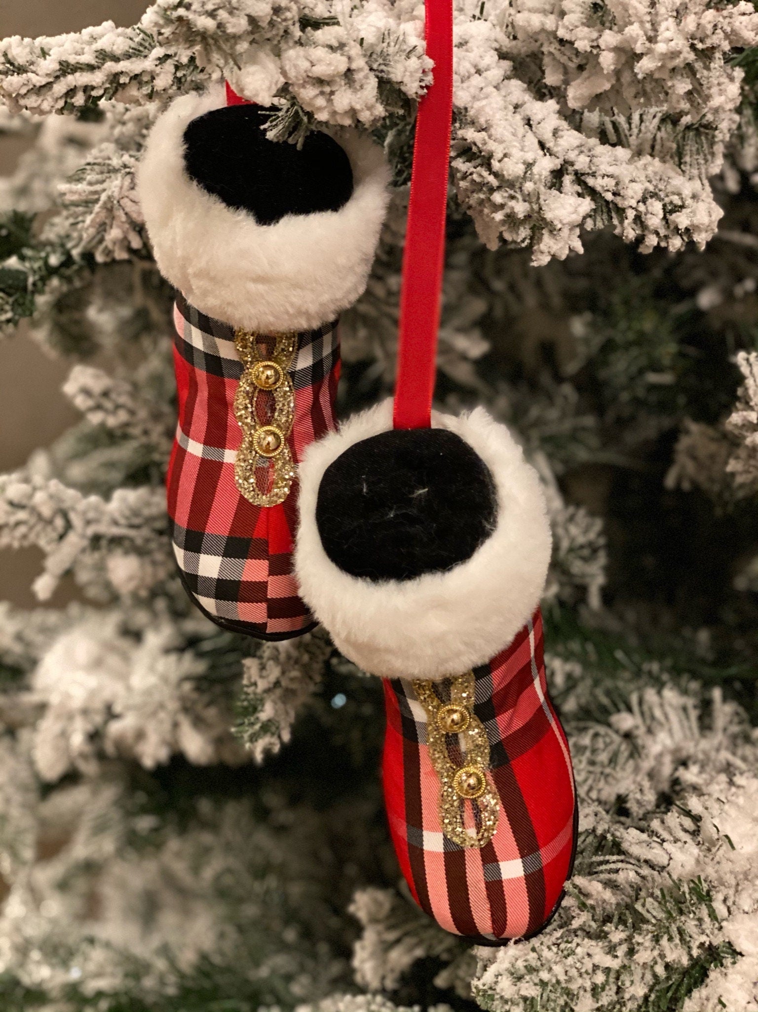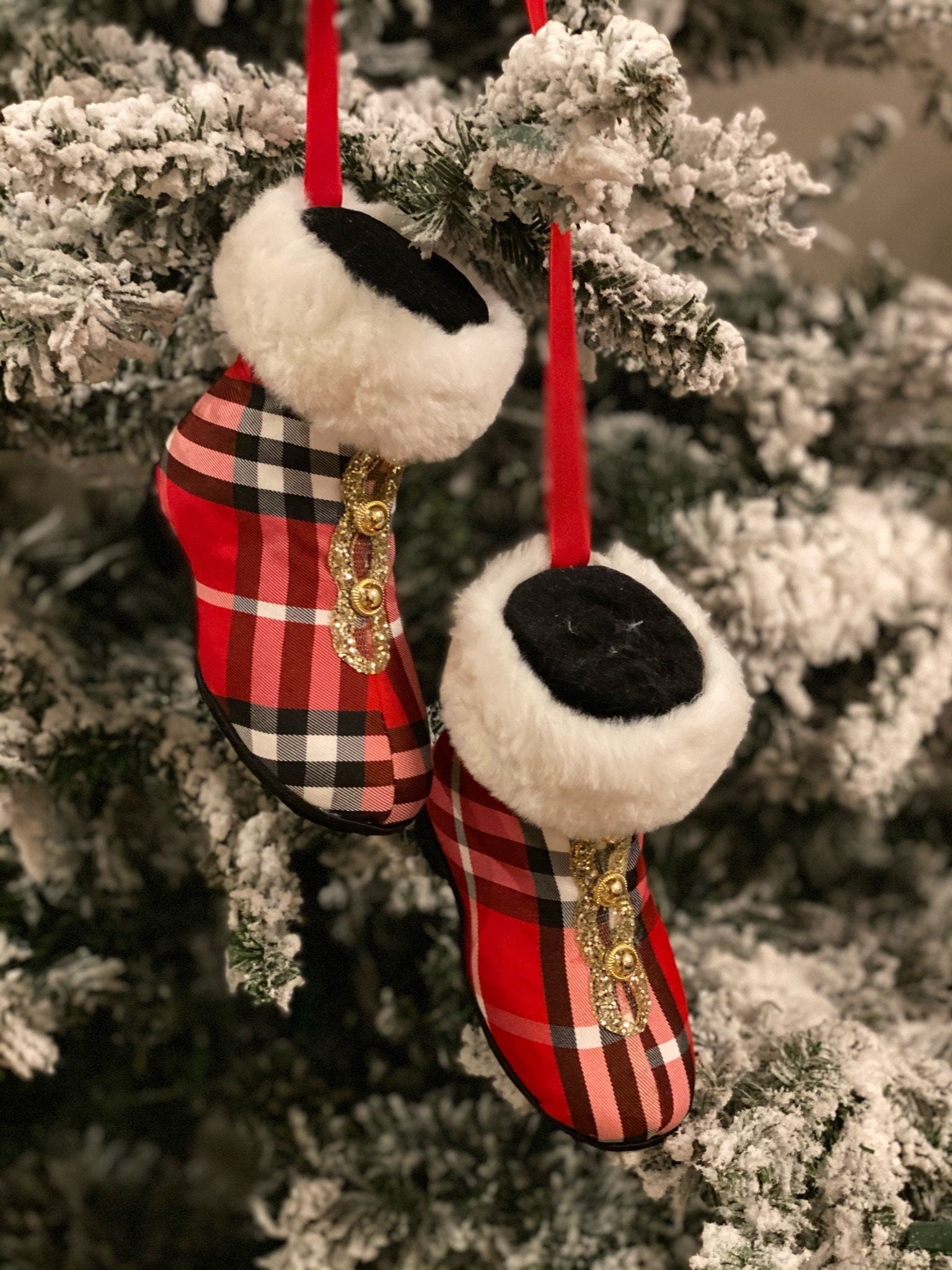 22"PLAID/FUR BOOTS PAIR ORNAMENT