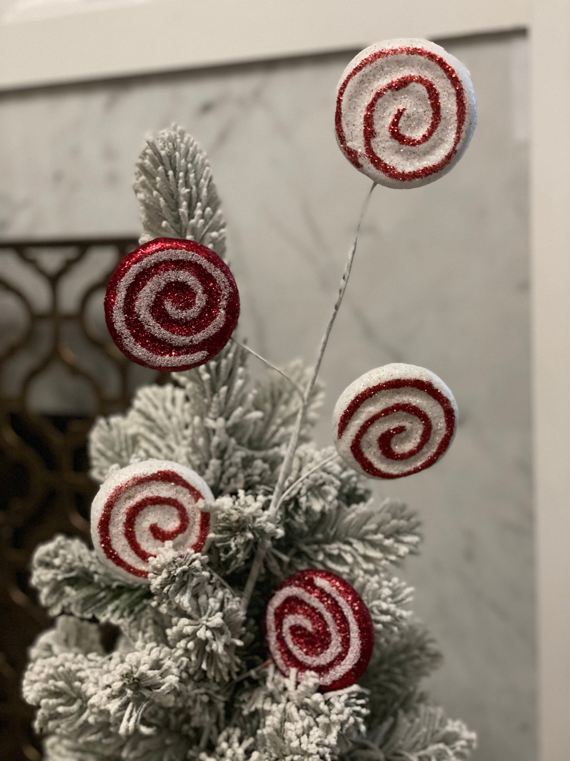 24” Glitter candy spray. Peppermint stick spray. Red and white.
