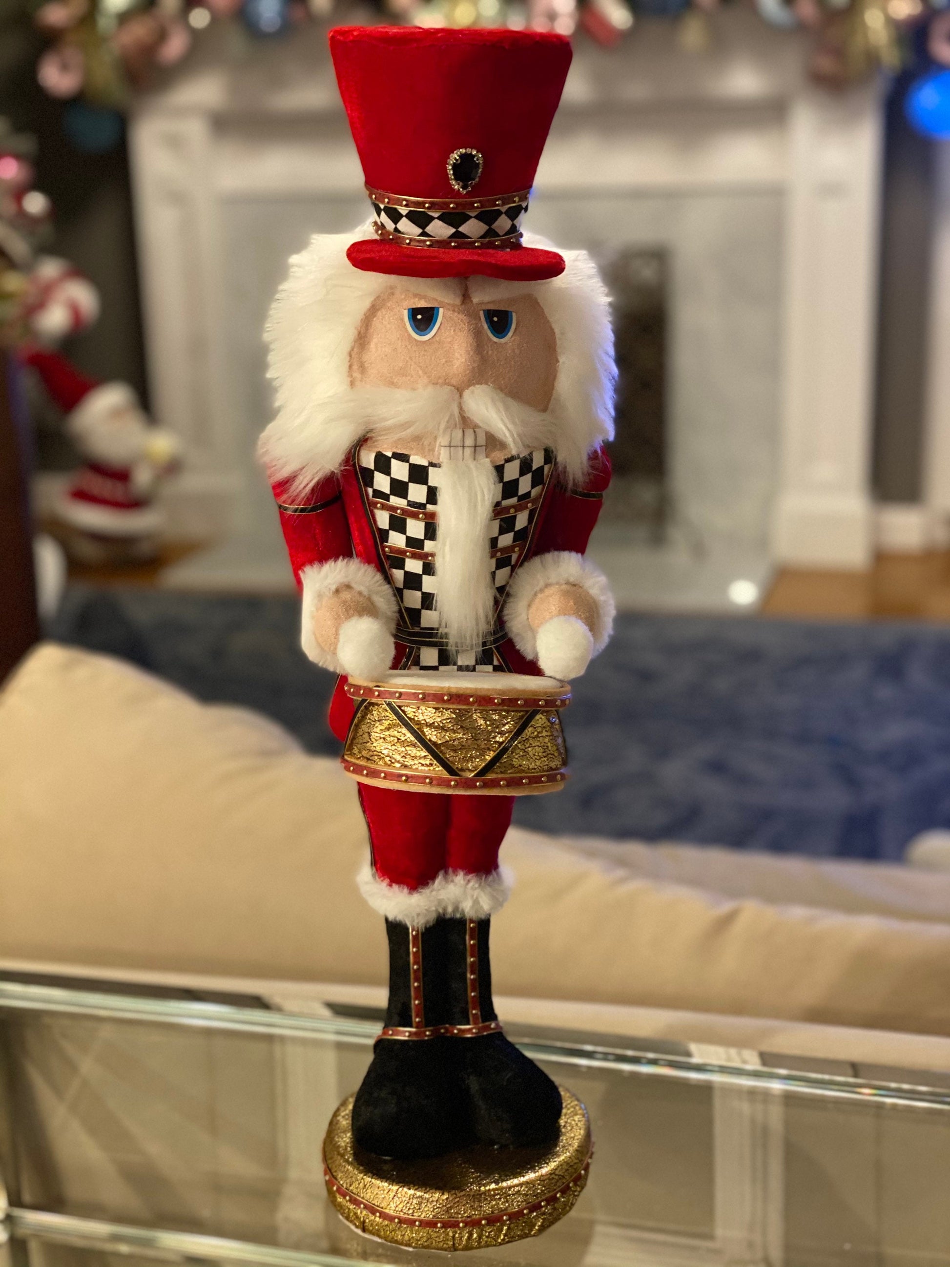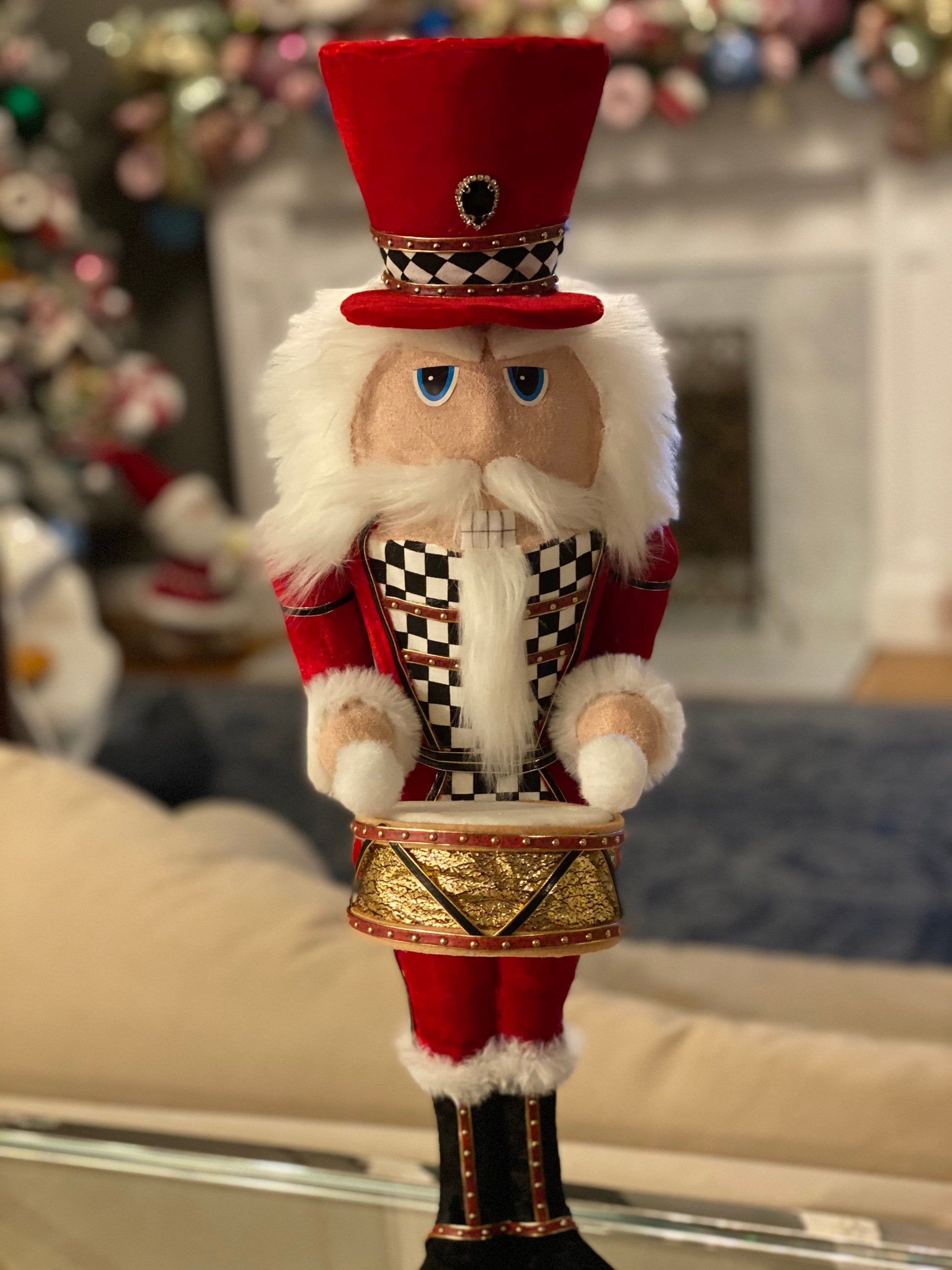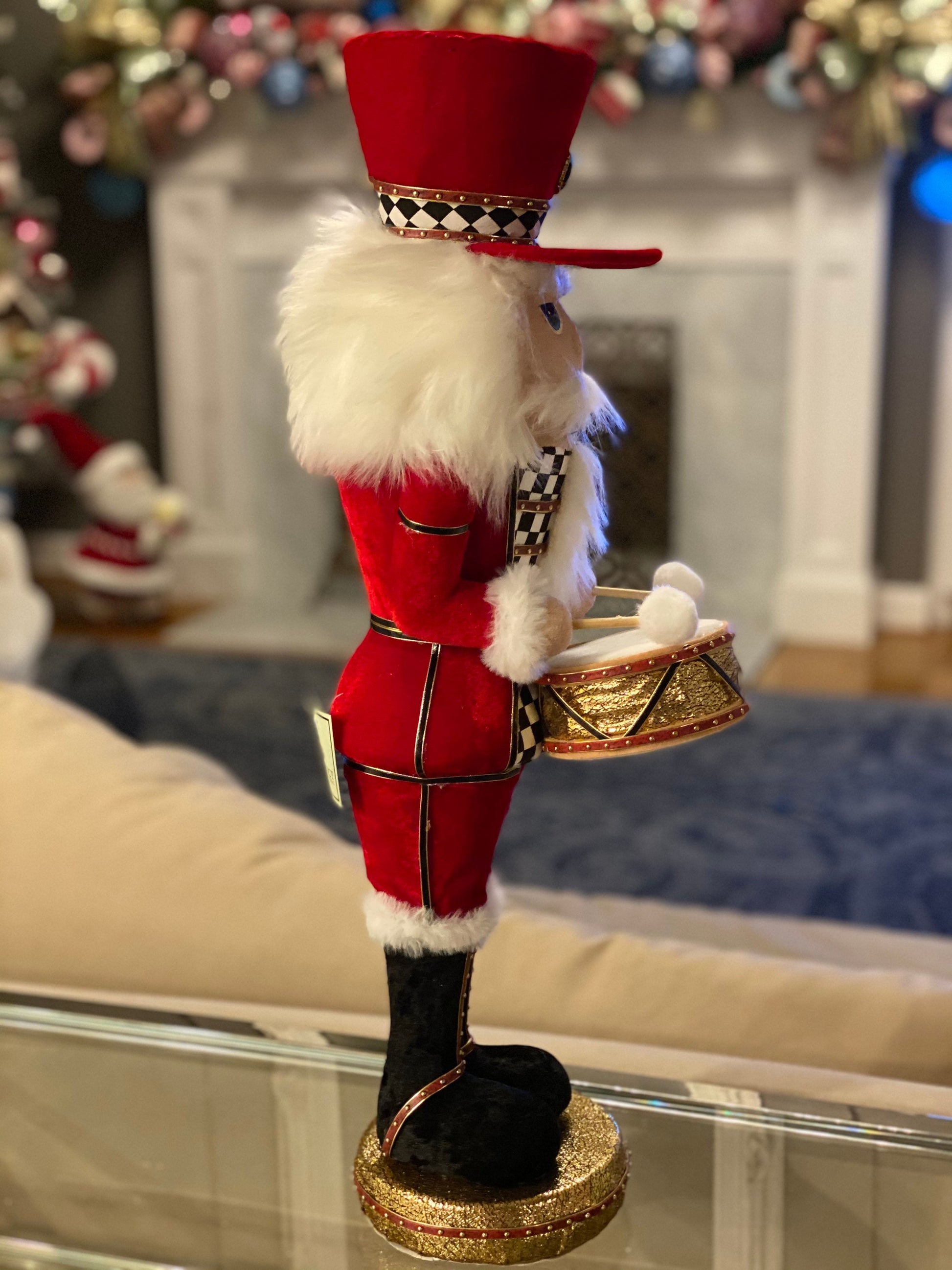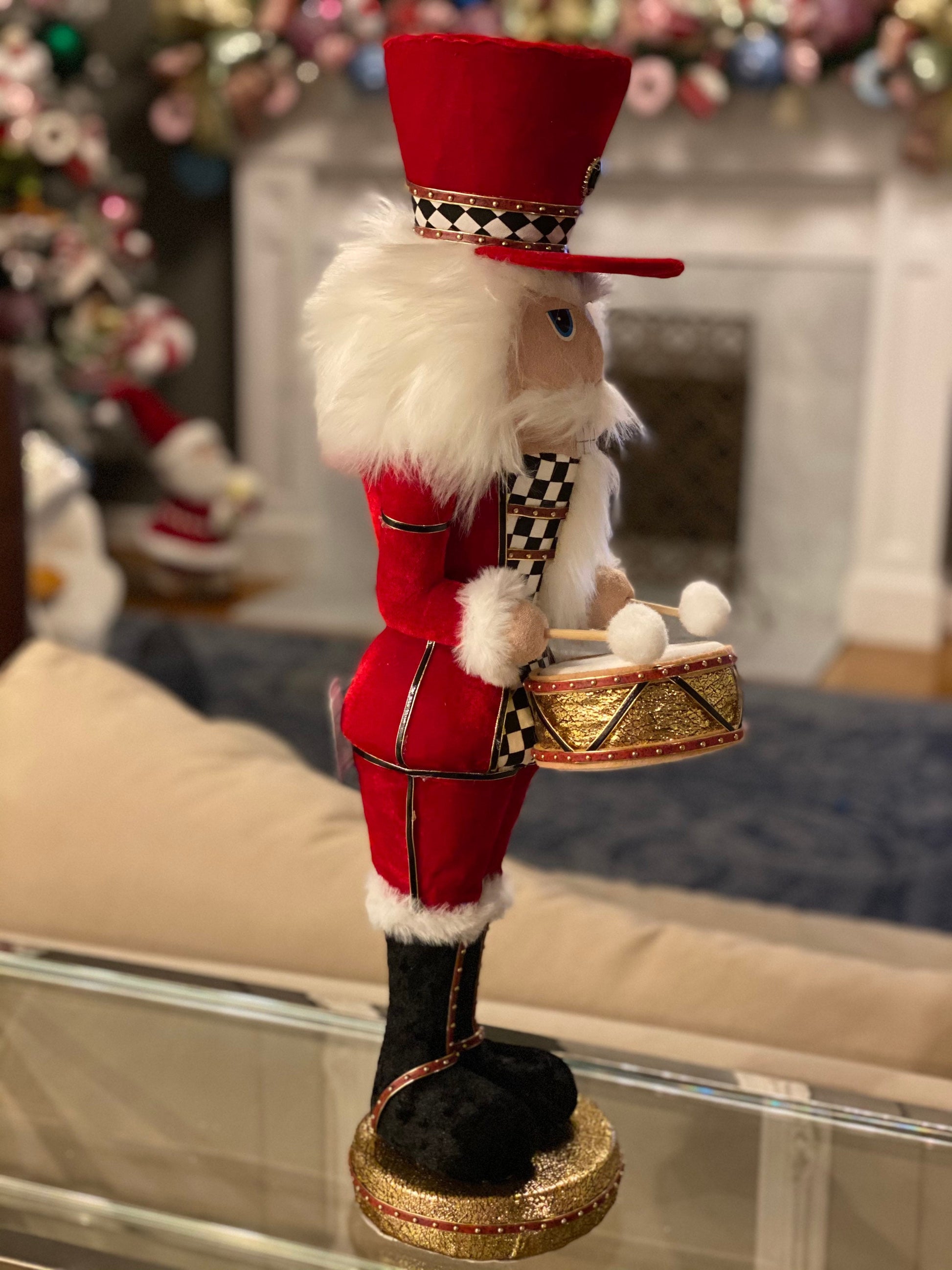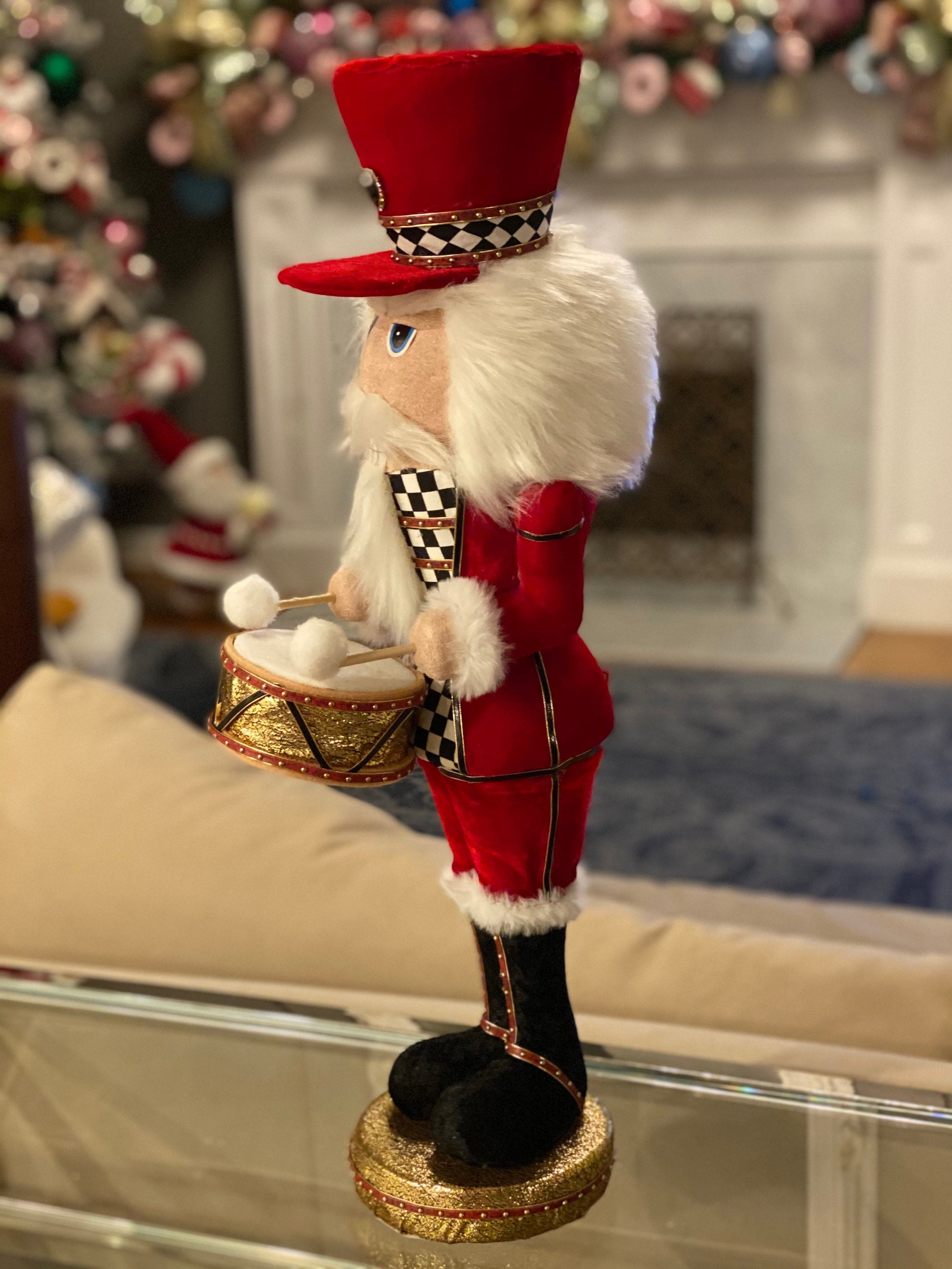 24" Nutcracker, soldier, Velvet Harlequin, red with white and black checkered pattern, drummer