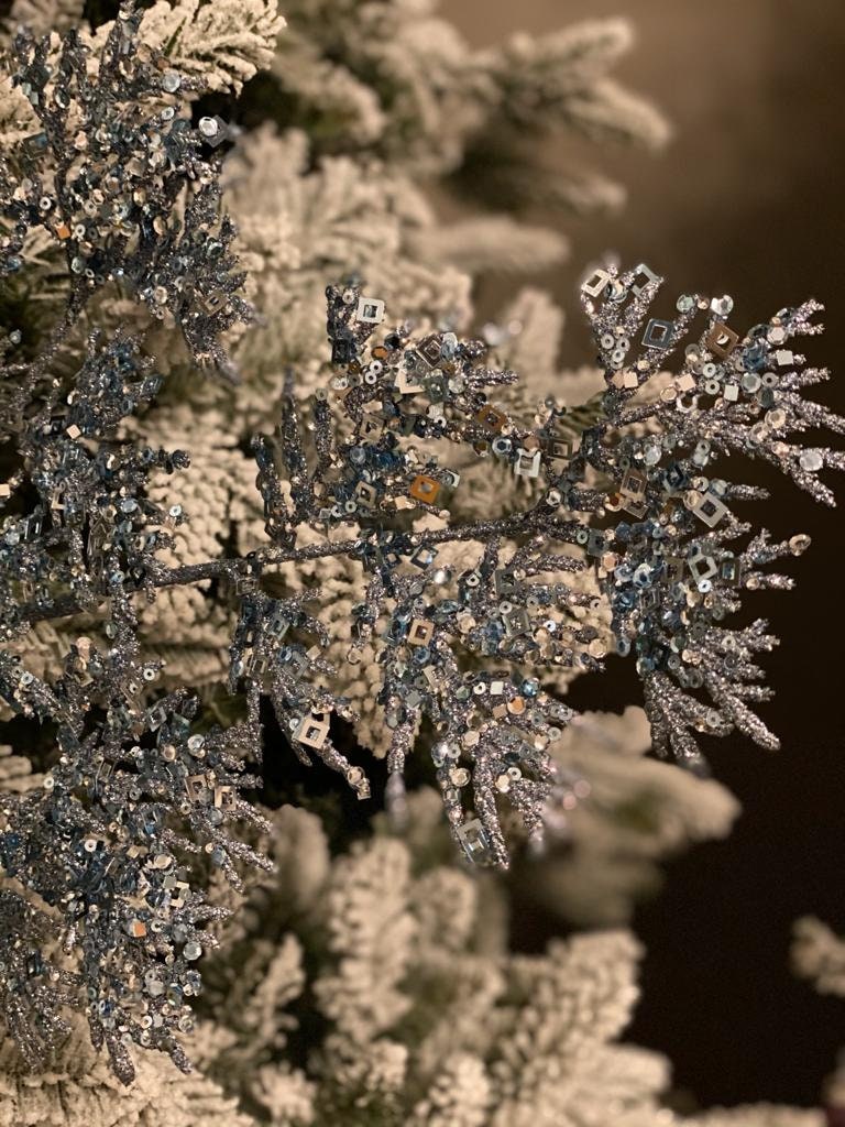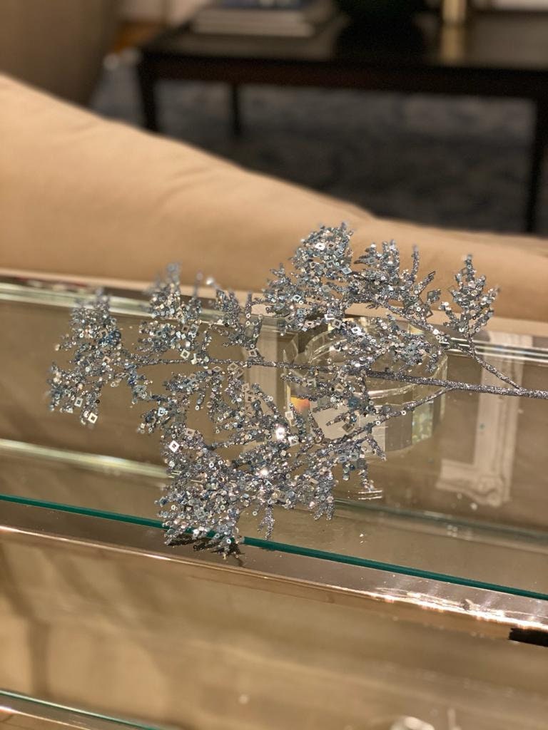 25” glitter/sequin cedar spray blue gray