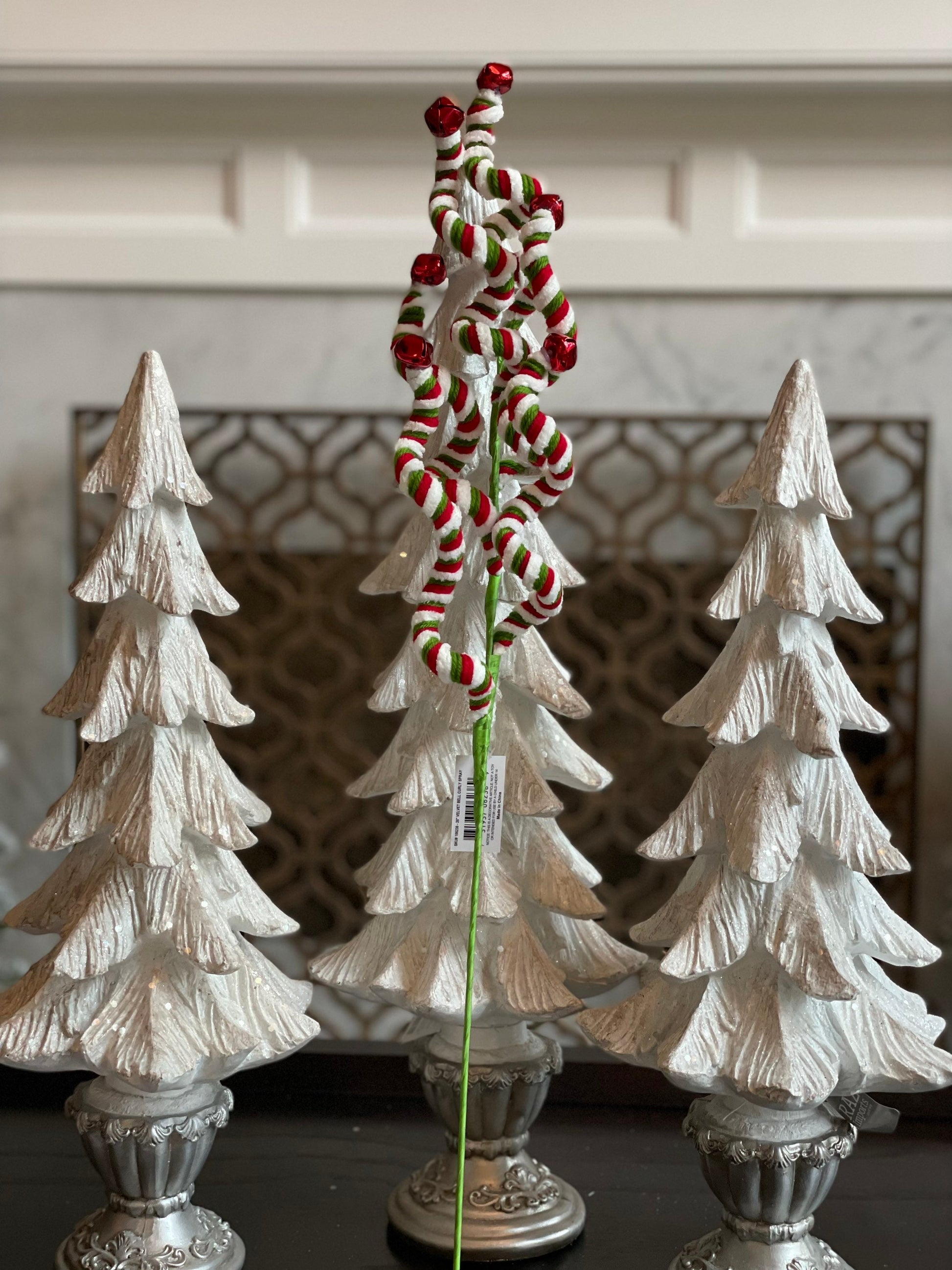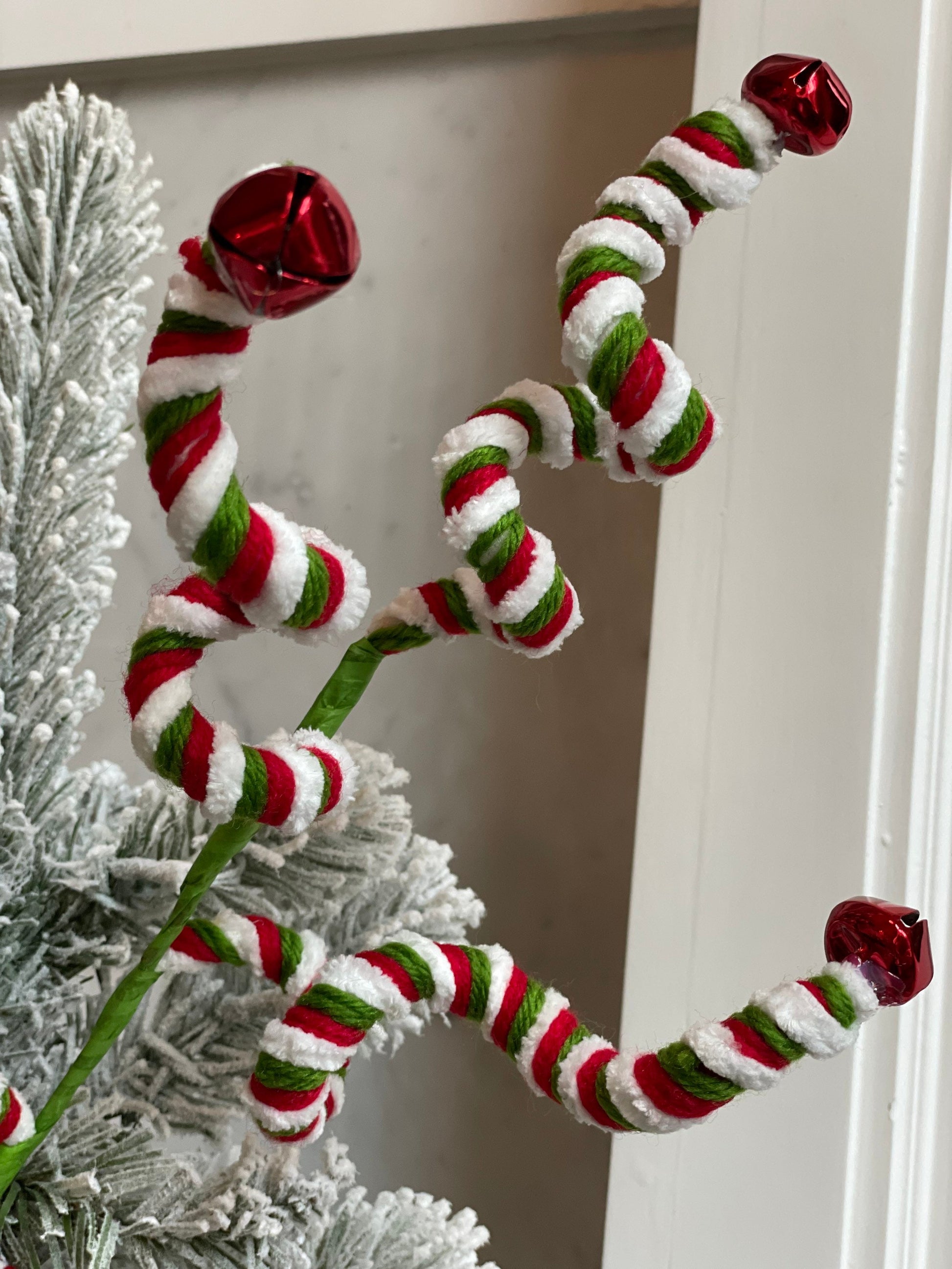 26" velvet bell curly spray. Candy. Green, red and white. Christmas. Candy theme. Traditional.