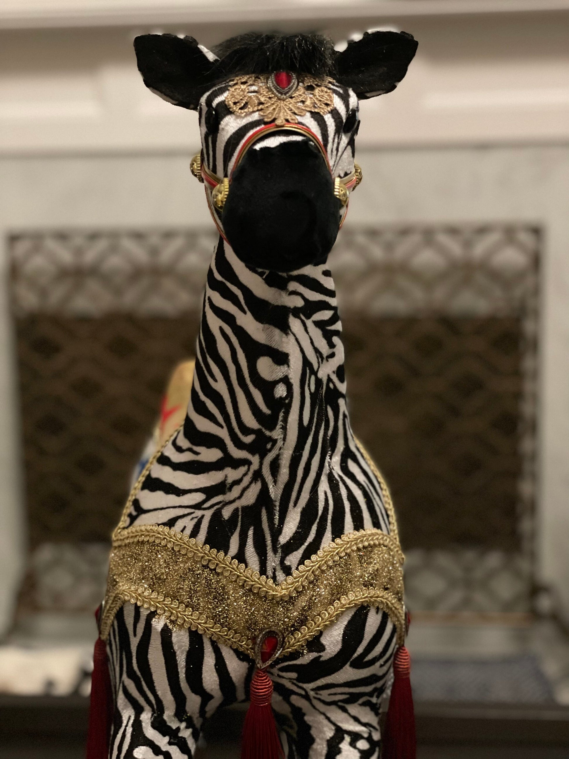 27 inch Zebra ornament. Lace and jewel embellishments. Circus.