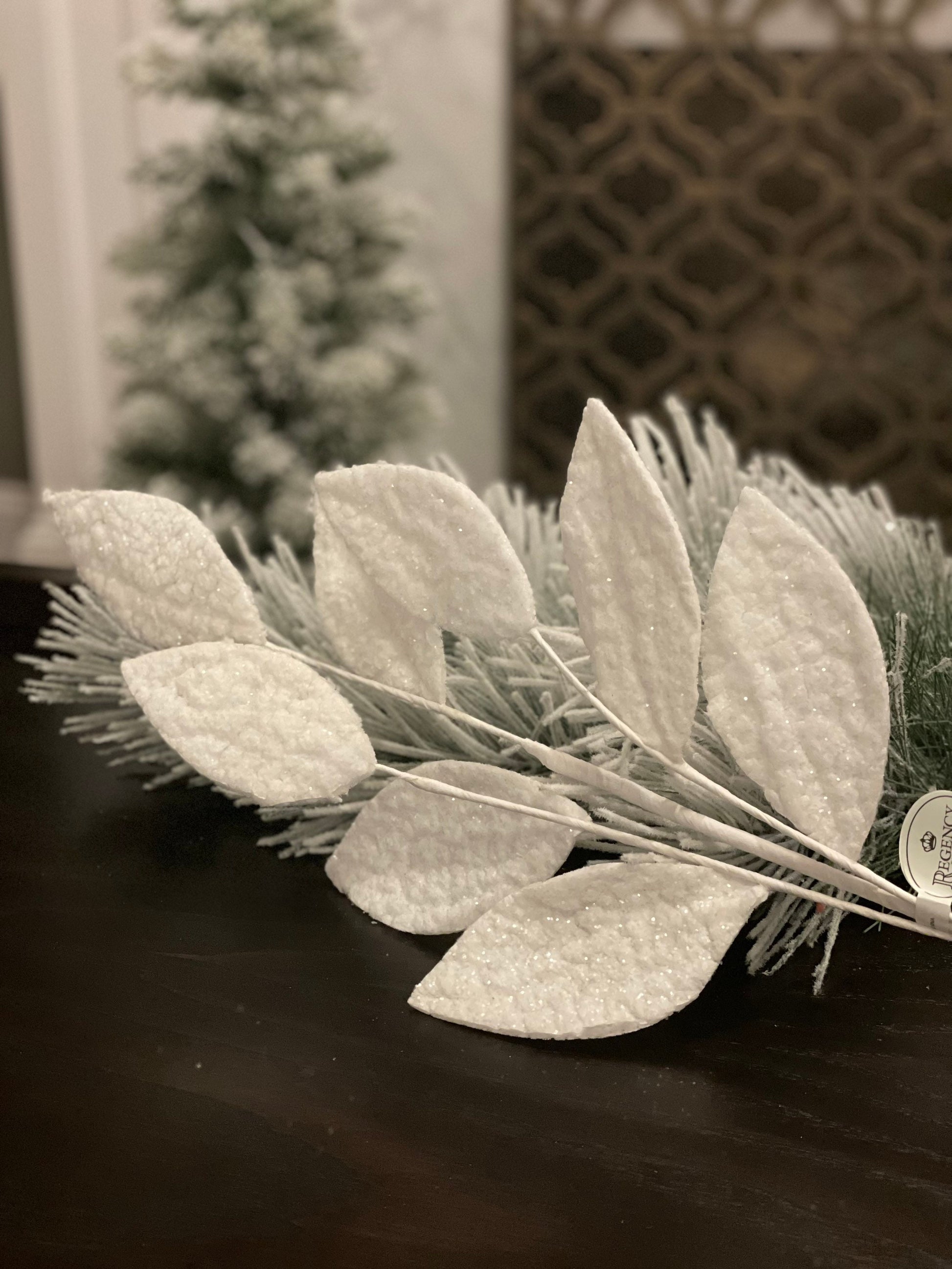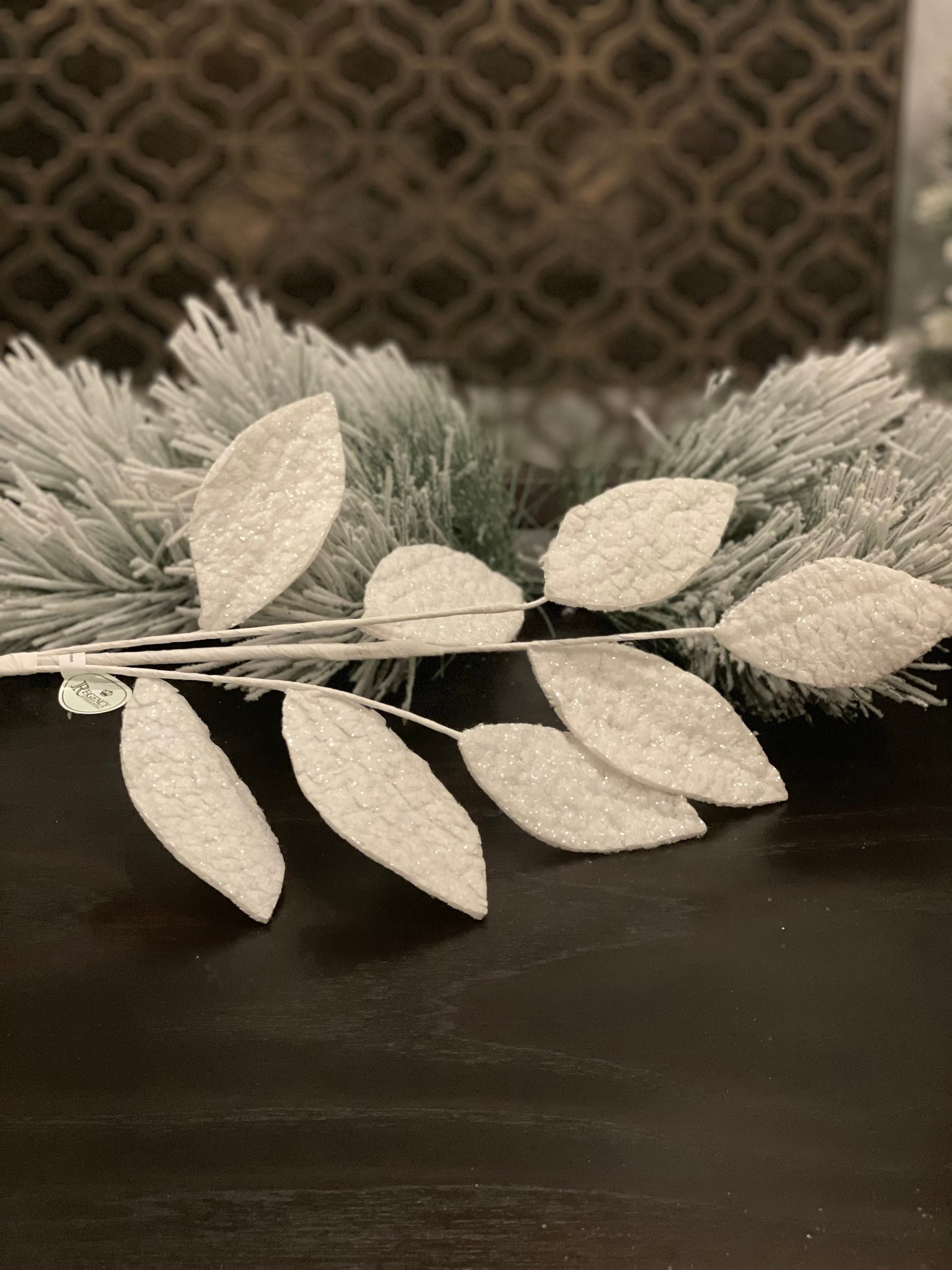 This listing is just for one frosted spun snow leaf spray. The green flocked branch is not included.