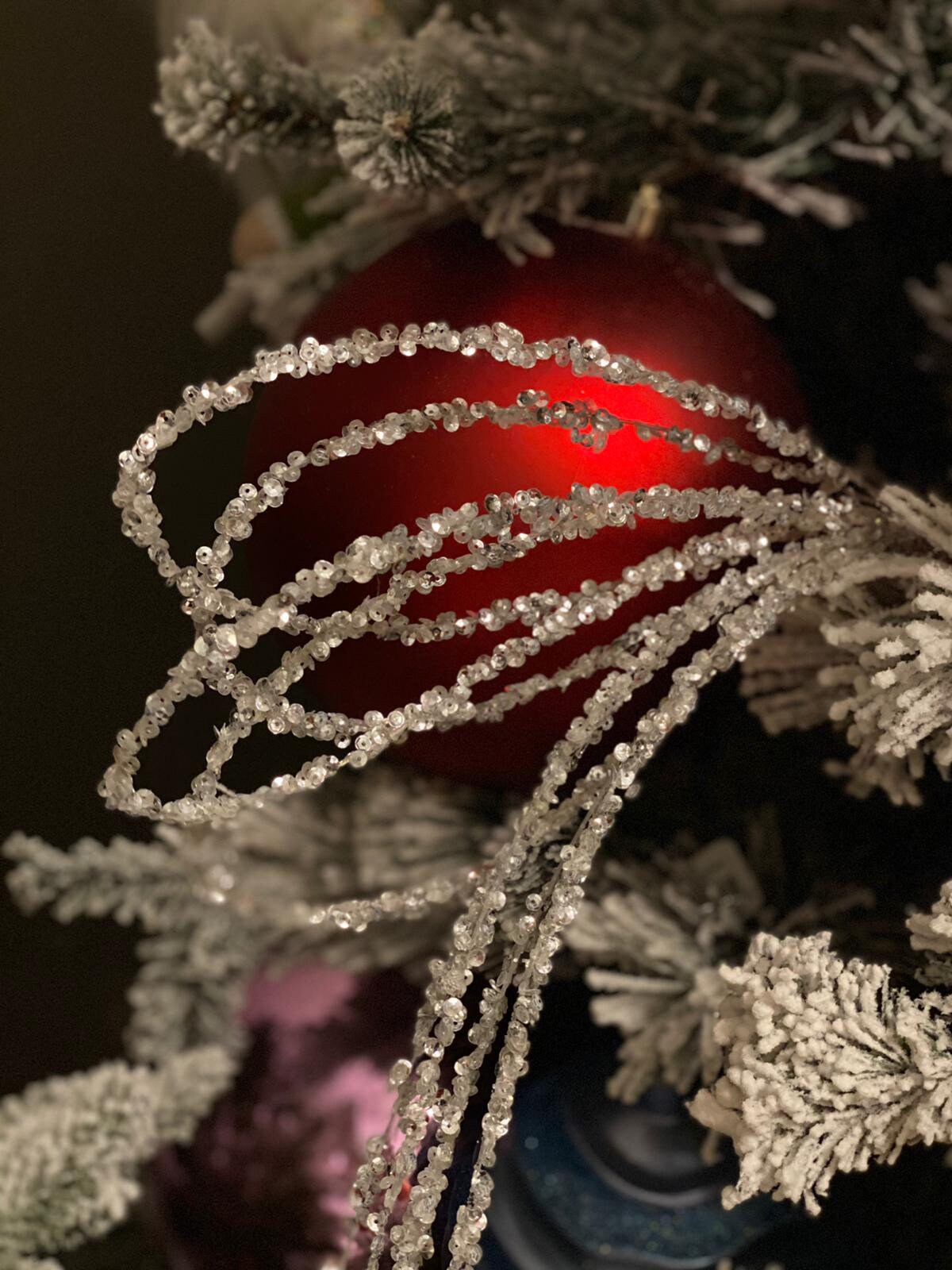 28"glite sequin loop drop spray white,silver.