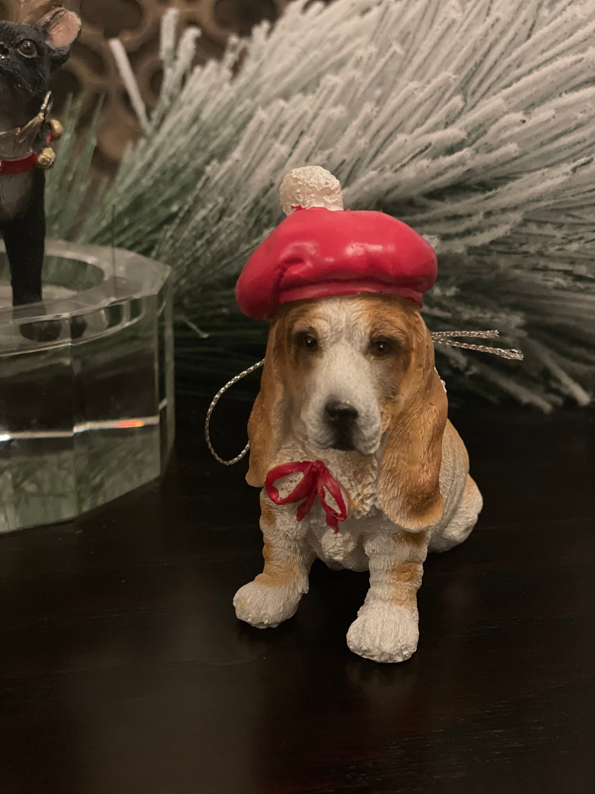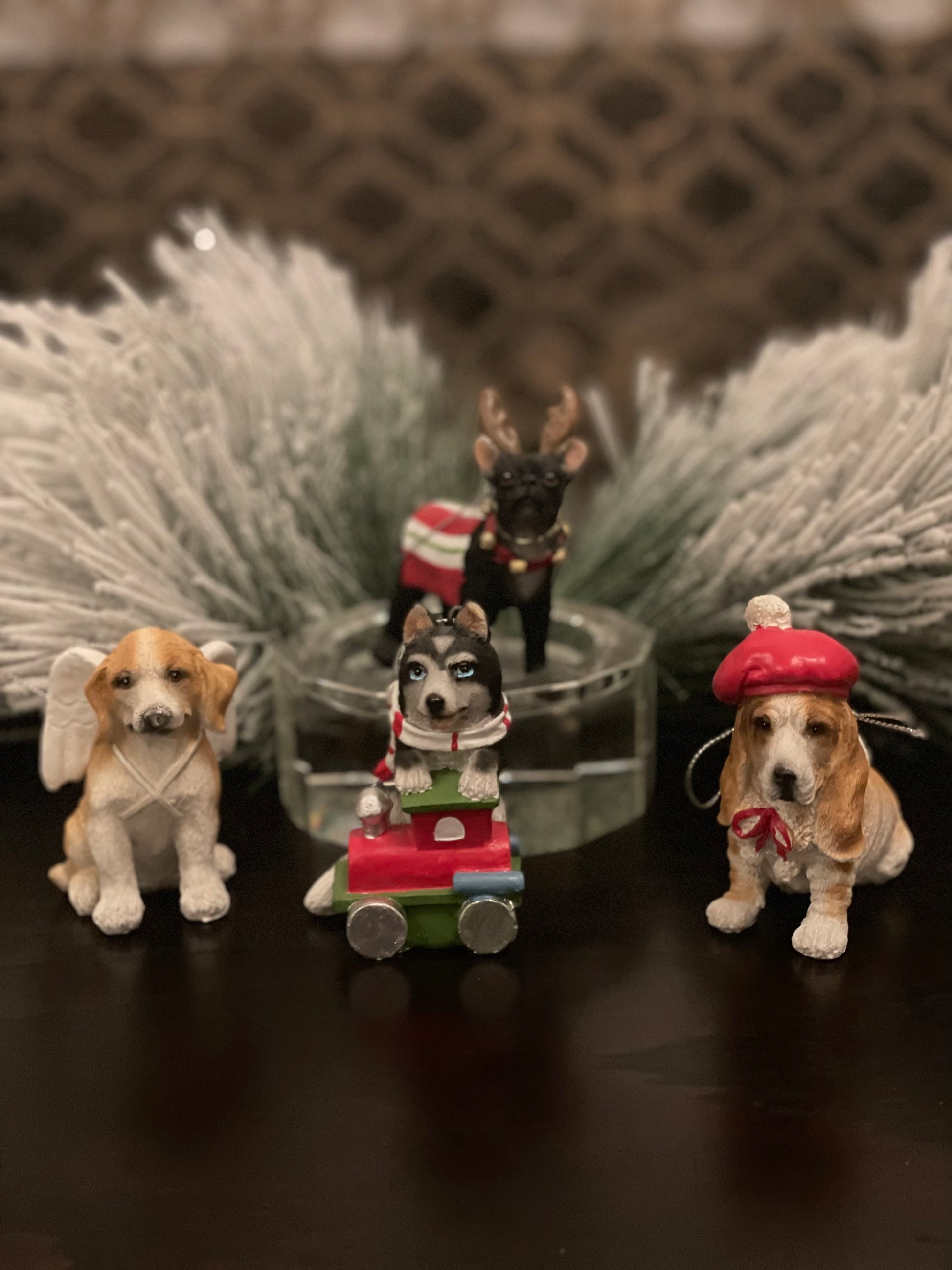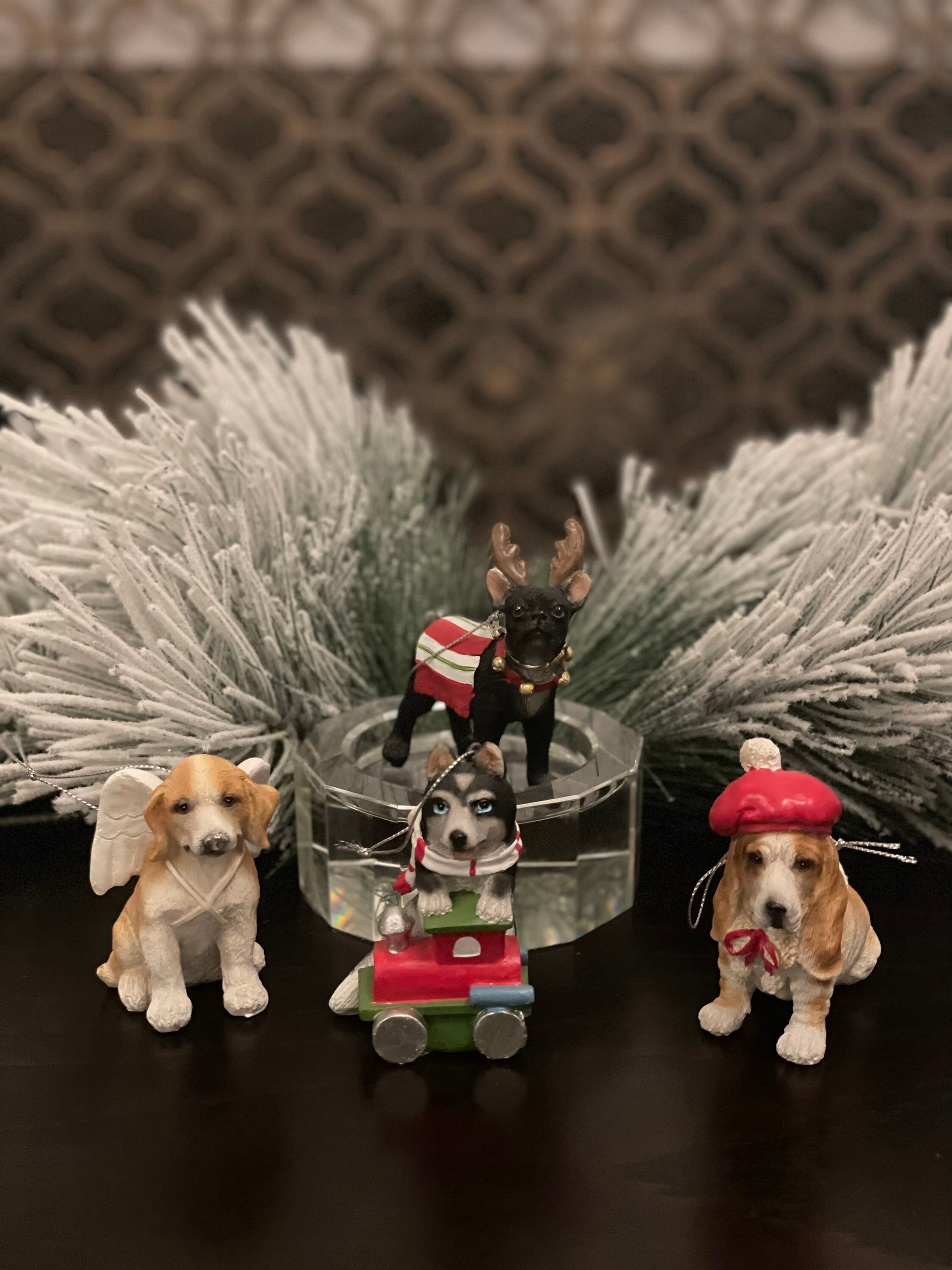 3.5” resin dapper chistmas dog ornament. Set of 4 dogs.