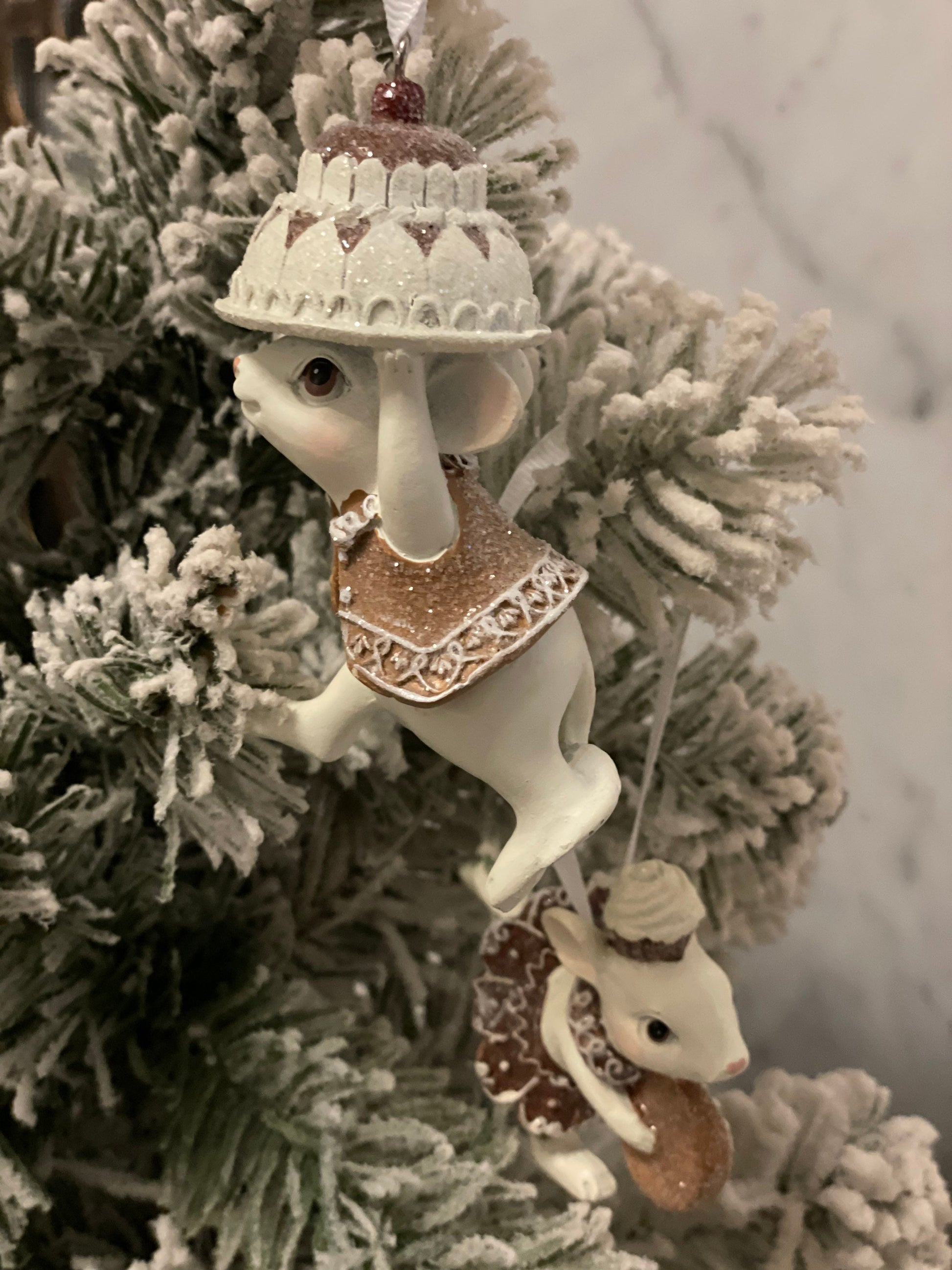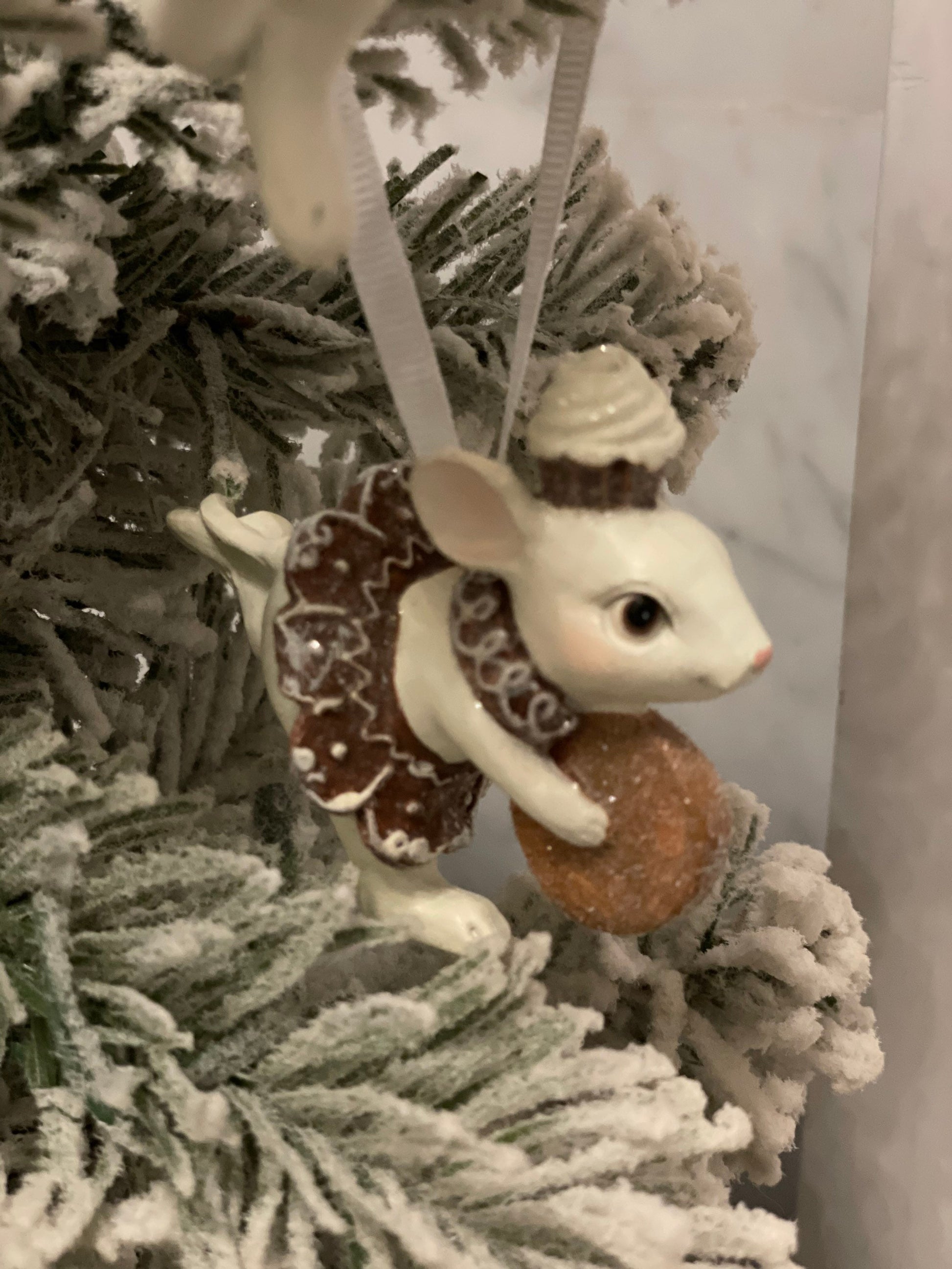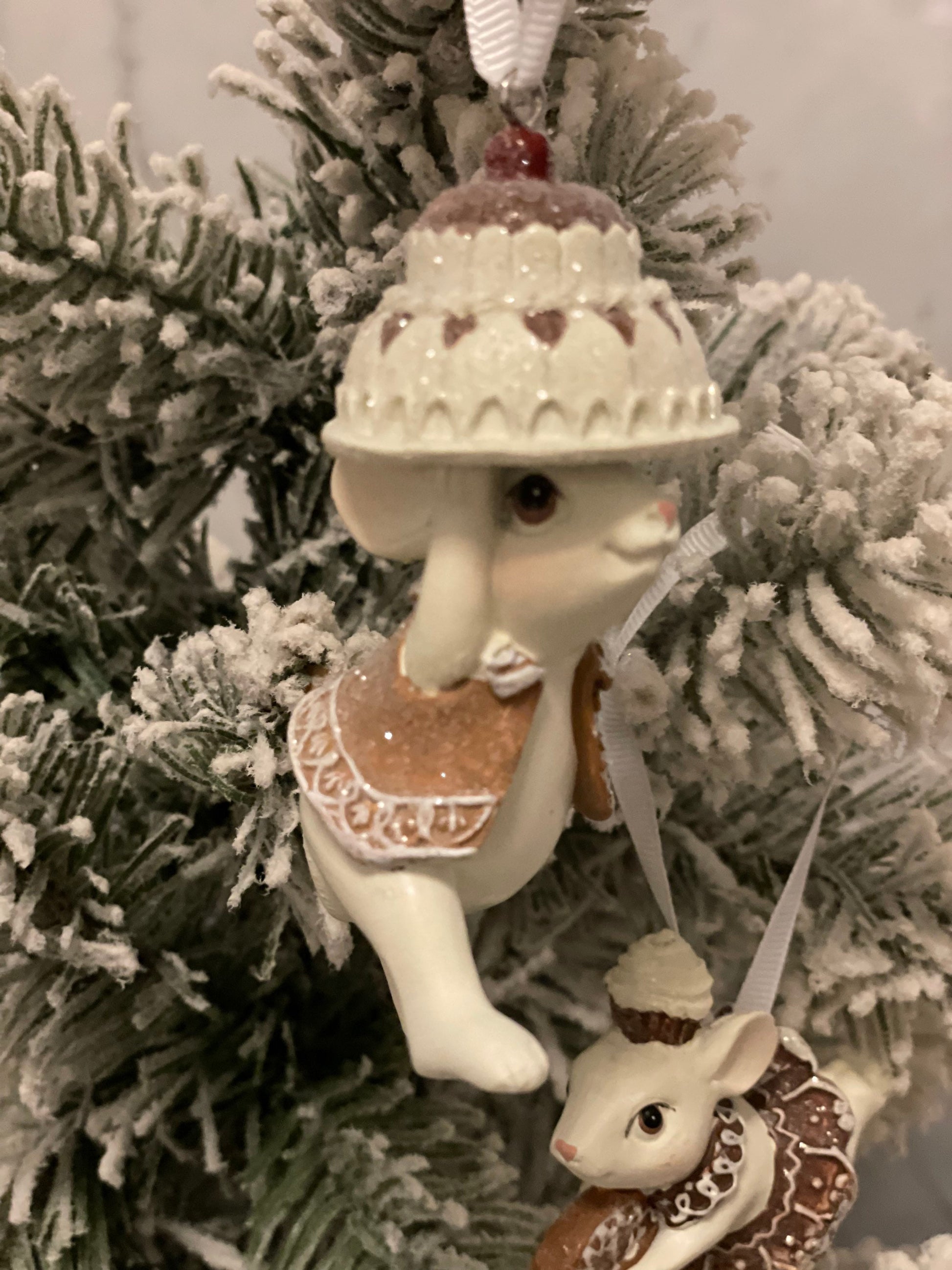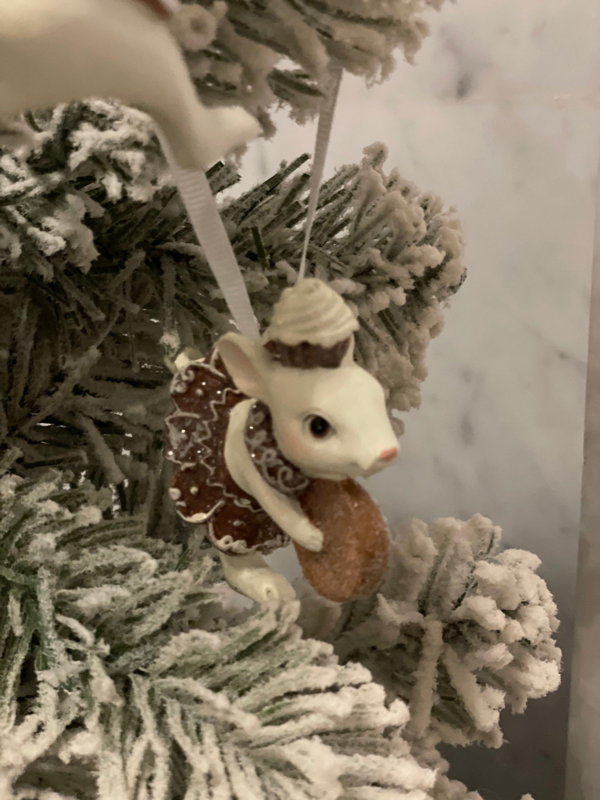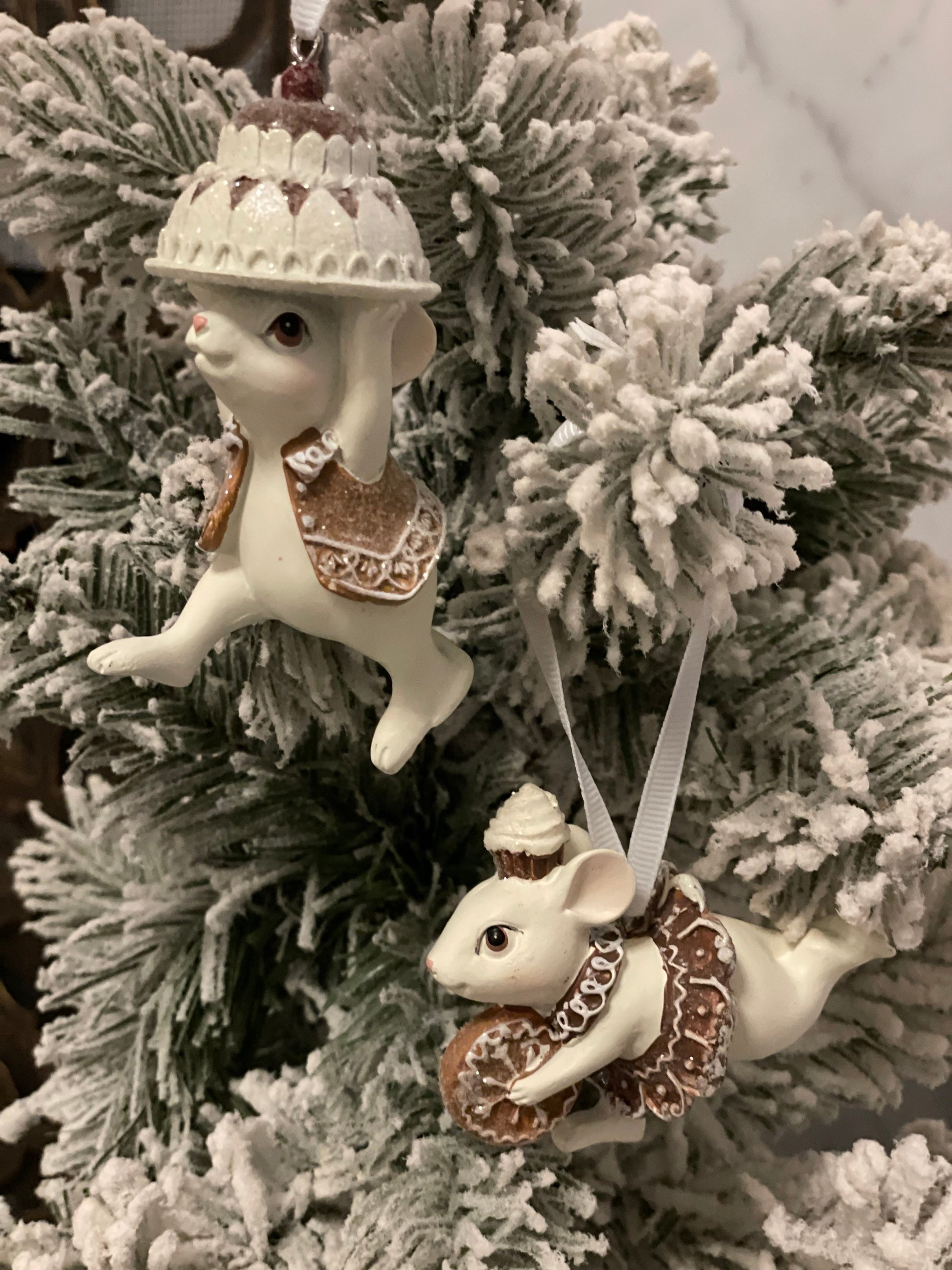 3” resin mouse with gingerbread cake and cookie ornament. Set of 2. So cute!!