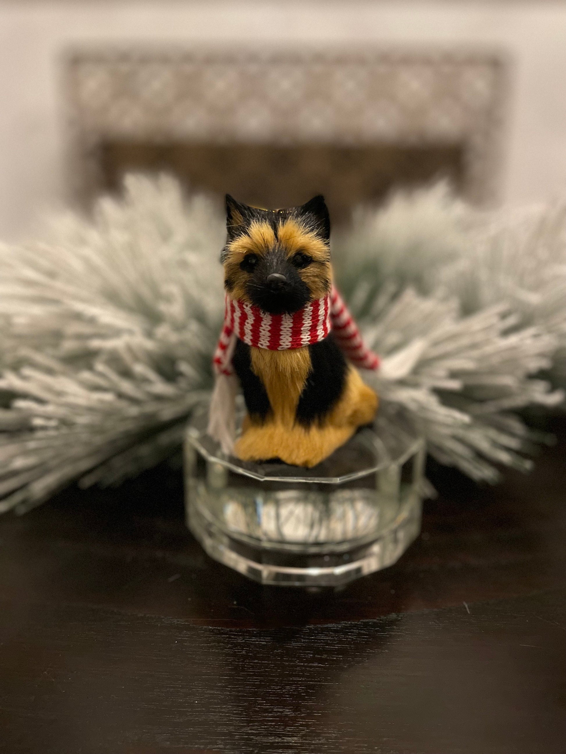 4” faux fur dog with scarf Christmas dog ornament. Set of 4 dogs.