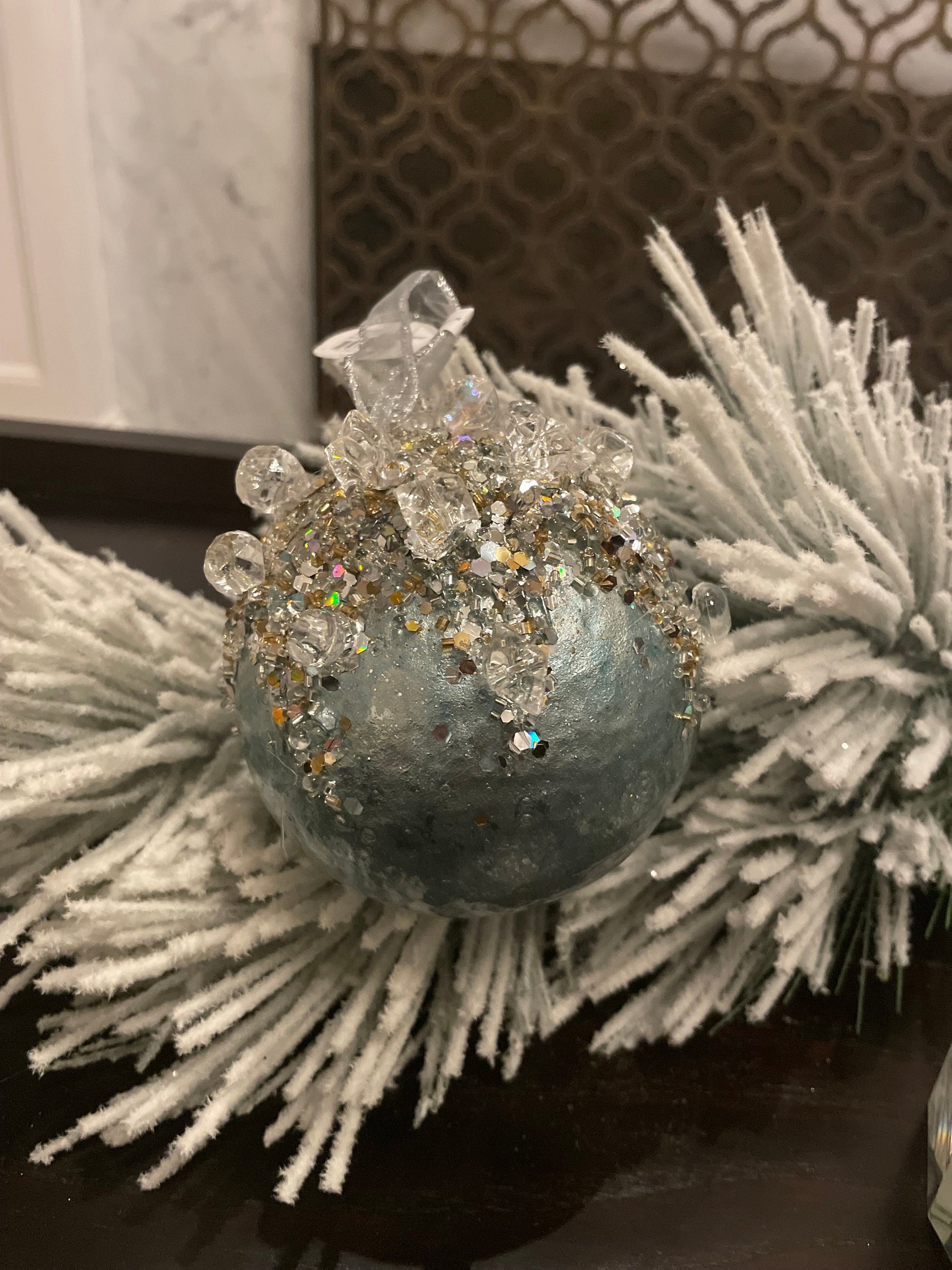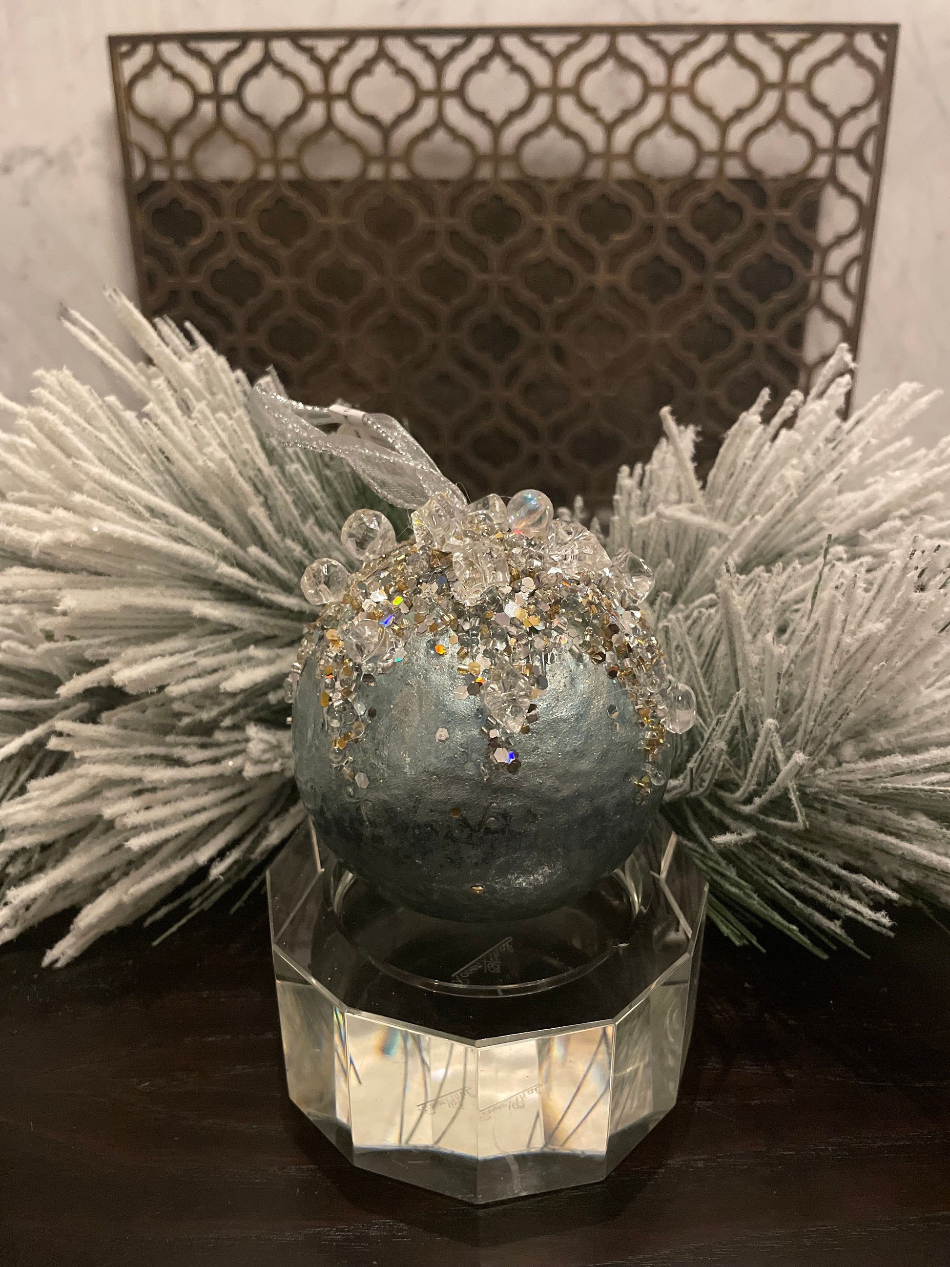 4" heavy jeweled ball ornament aqua