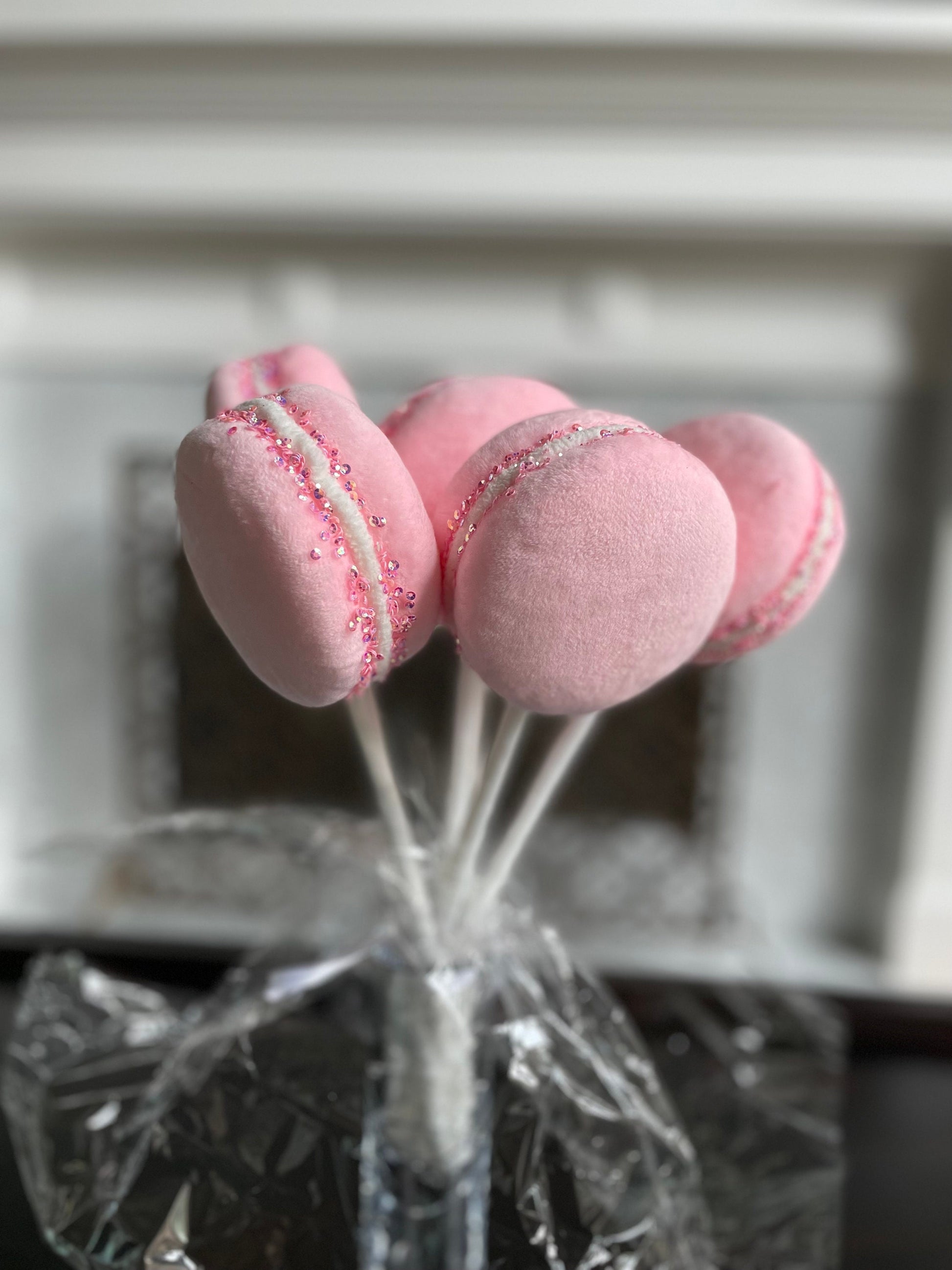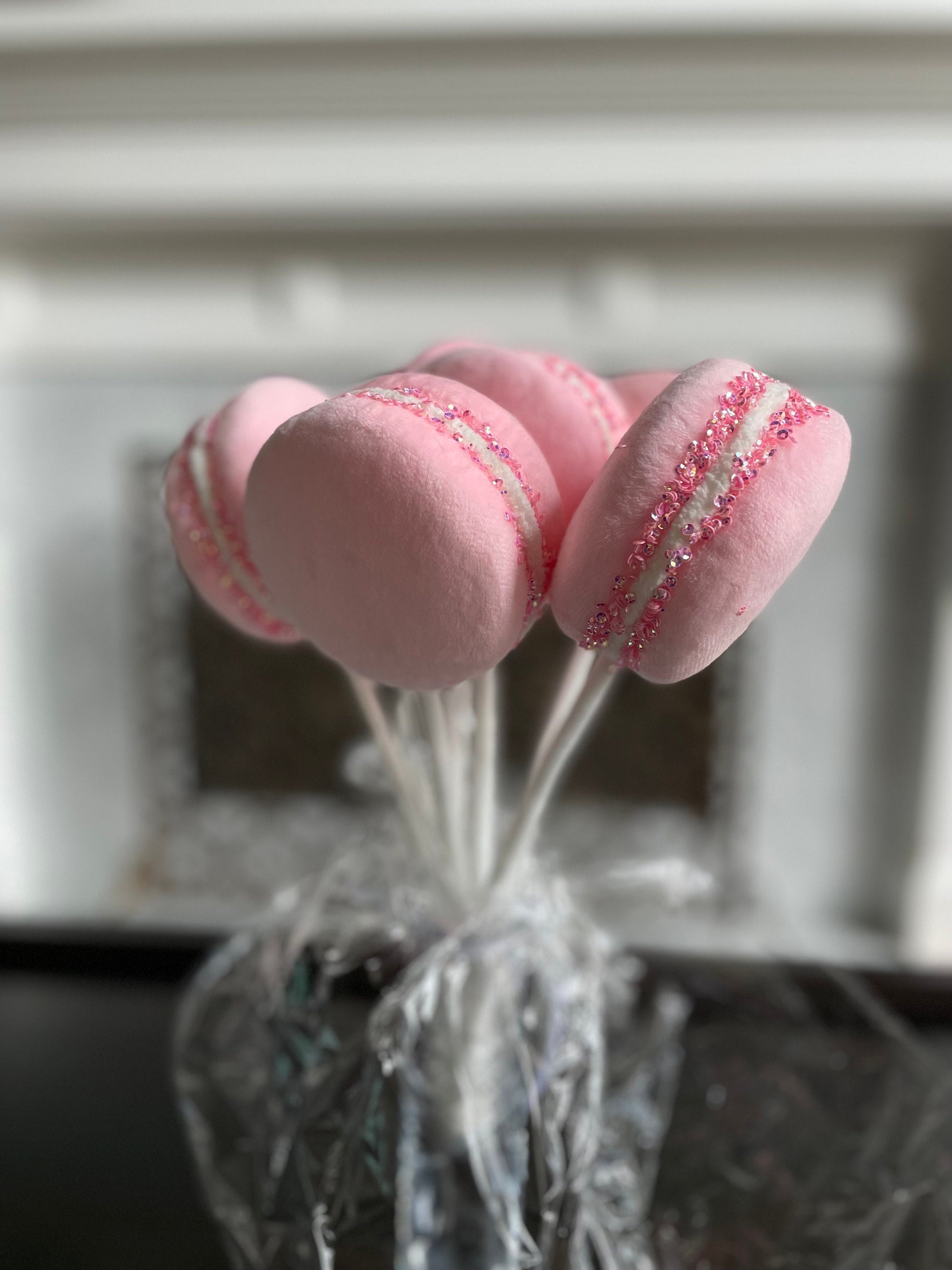 4” Macaroons with sprinkles ornament. Set of 6. Pink.