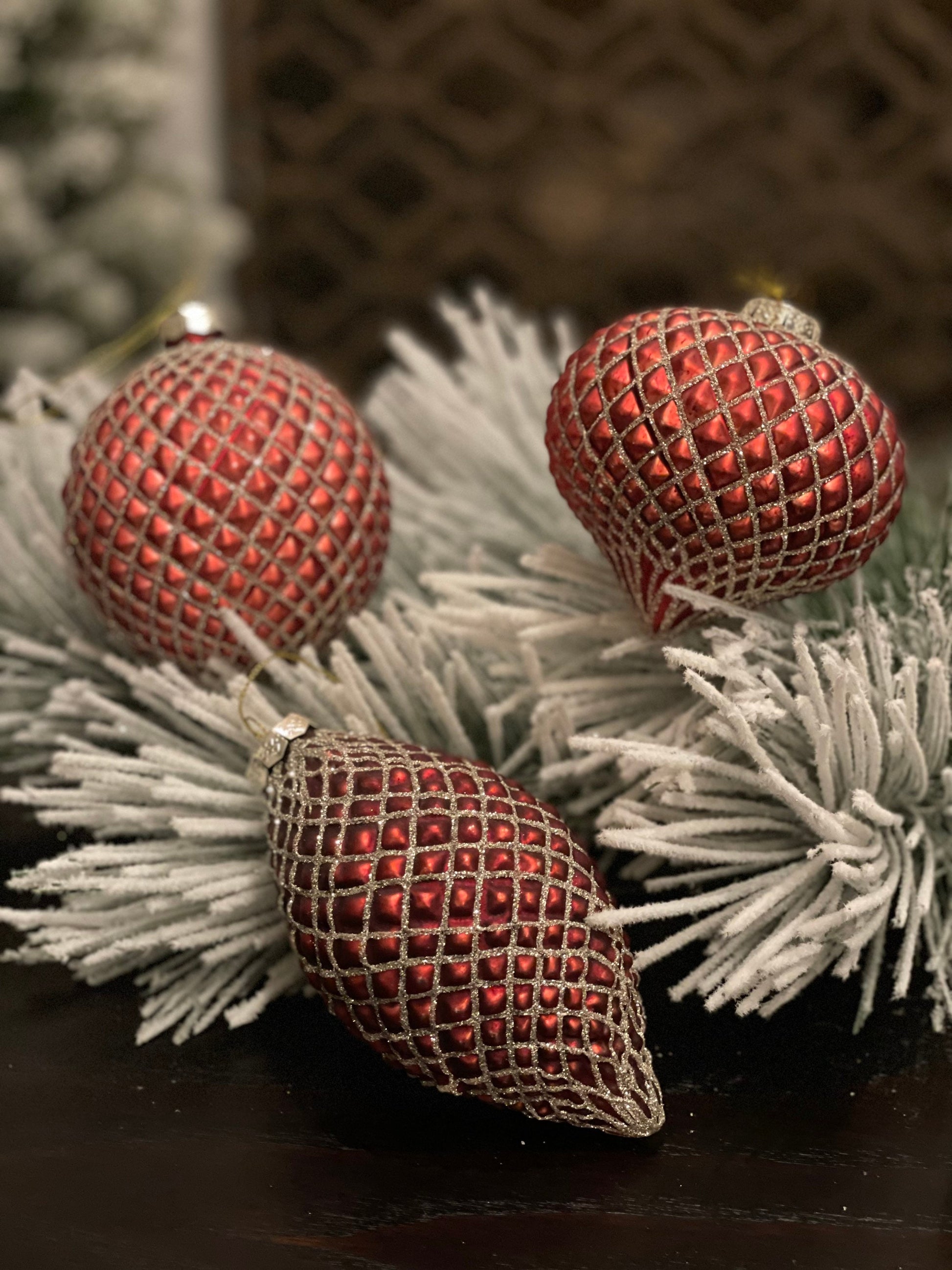 4" red and gold glitter diamond glass ornament set of 3* Elegant and beautiful!