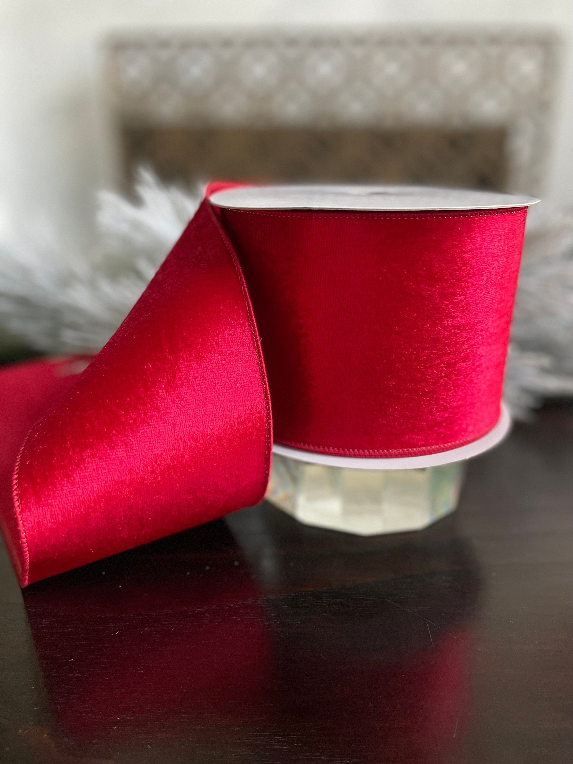 4” x 10 yds. Burgundy velvet with dupion back ribbon. Wired. Regency.