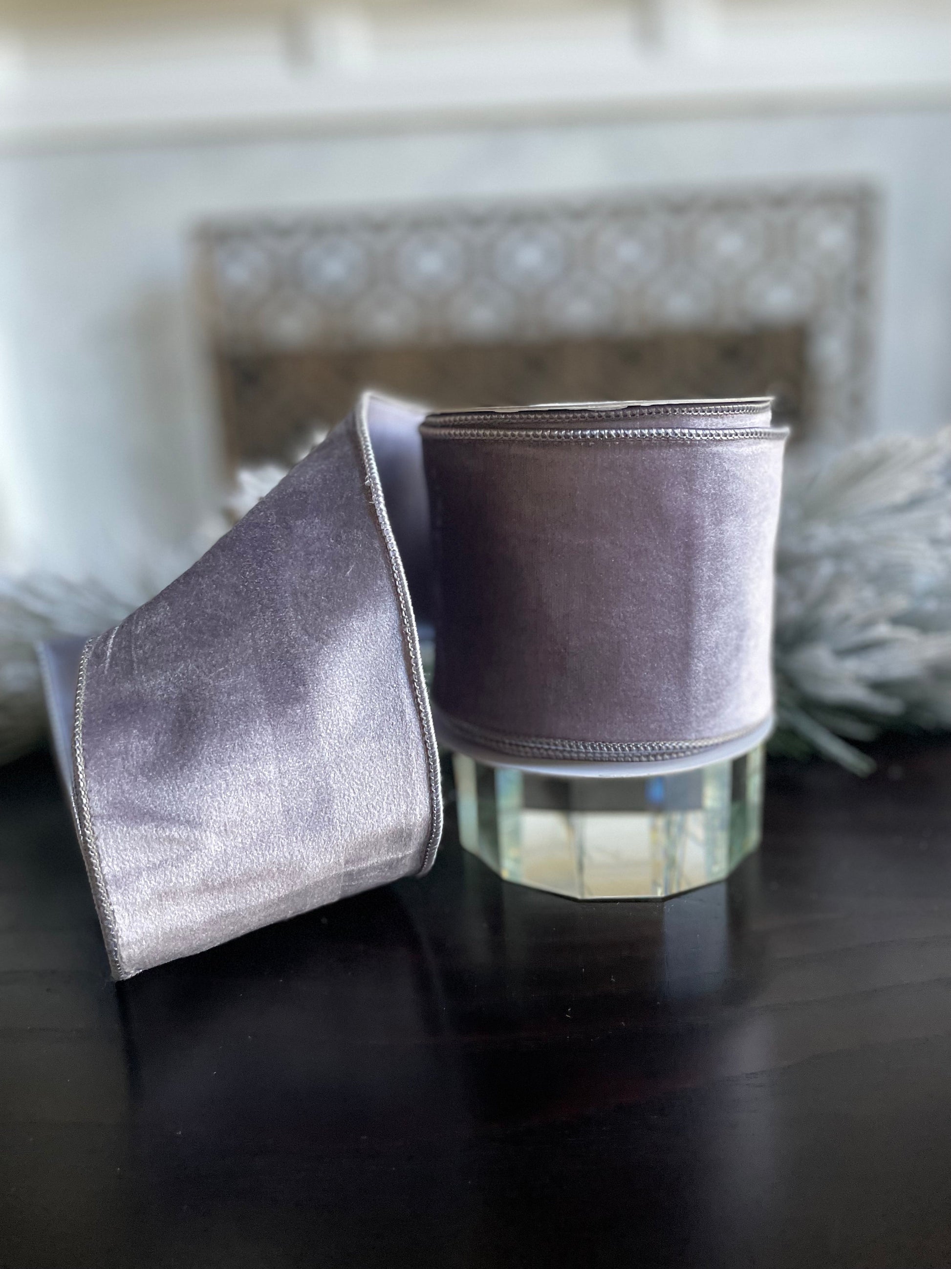 4” X 10 yds Designer amethyst velvet wired ribbon. Raz.