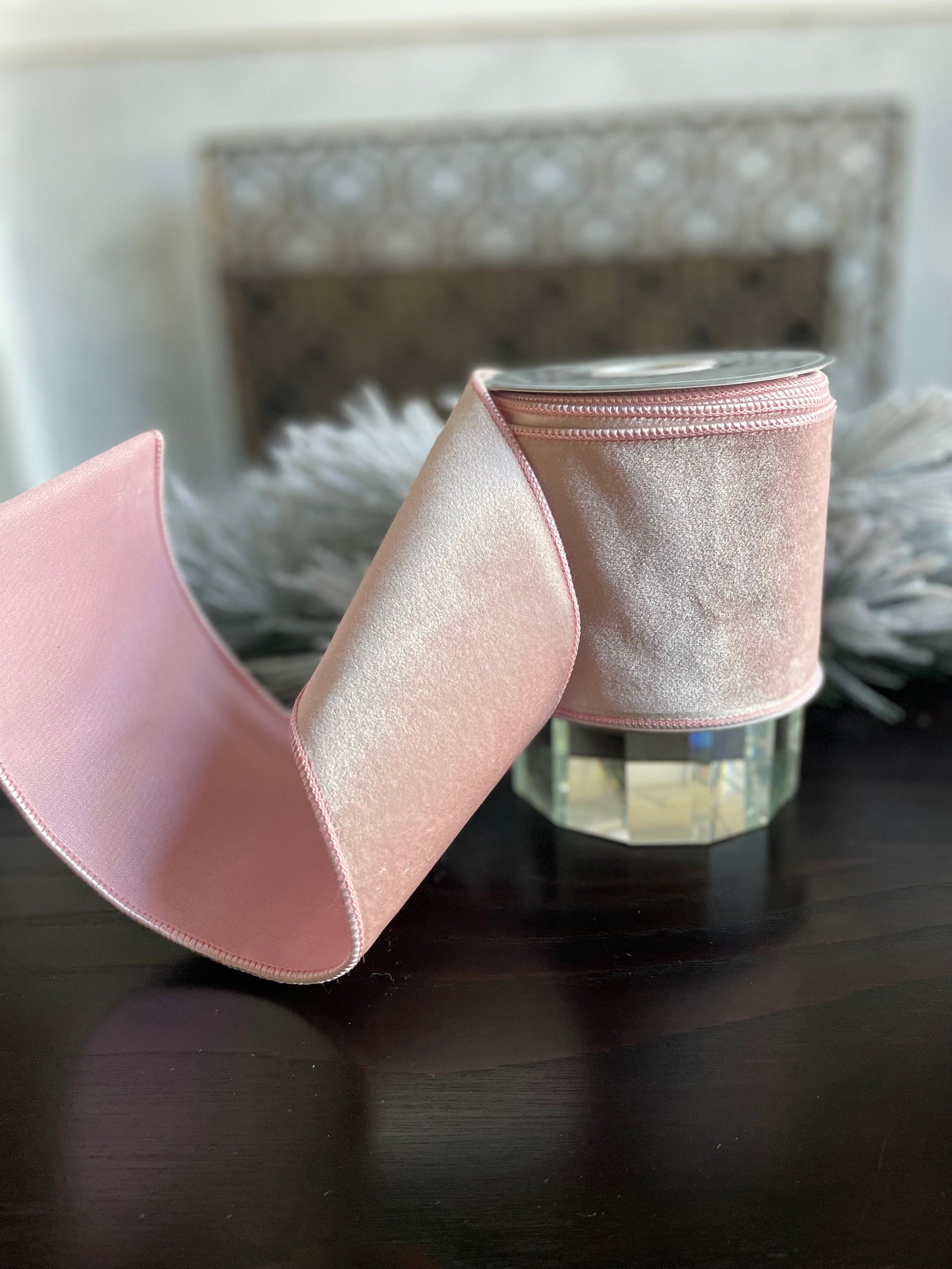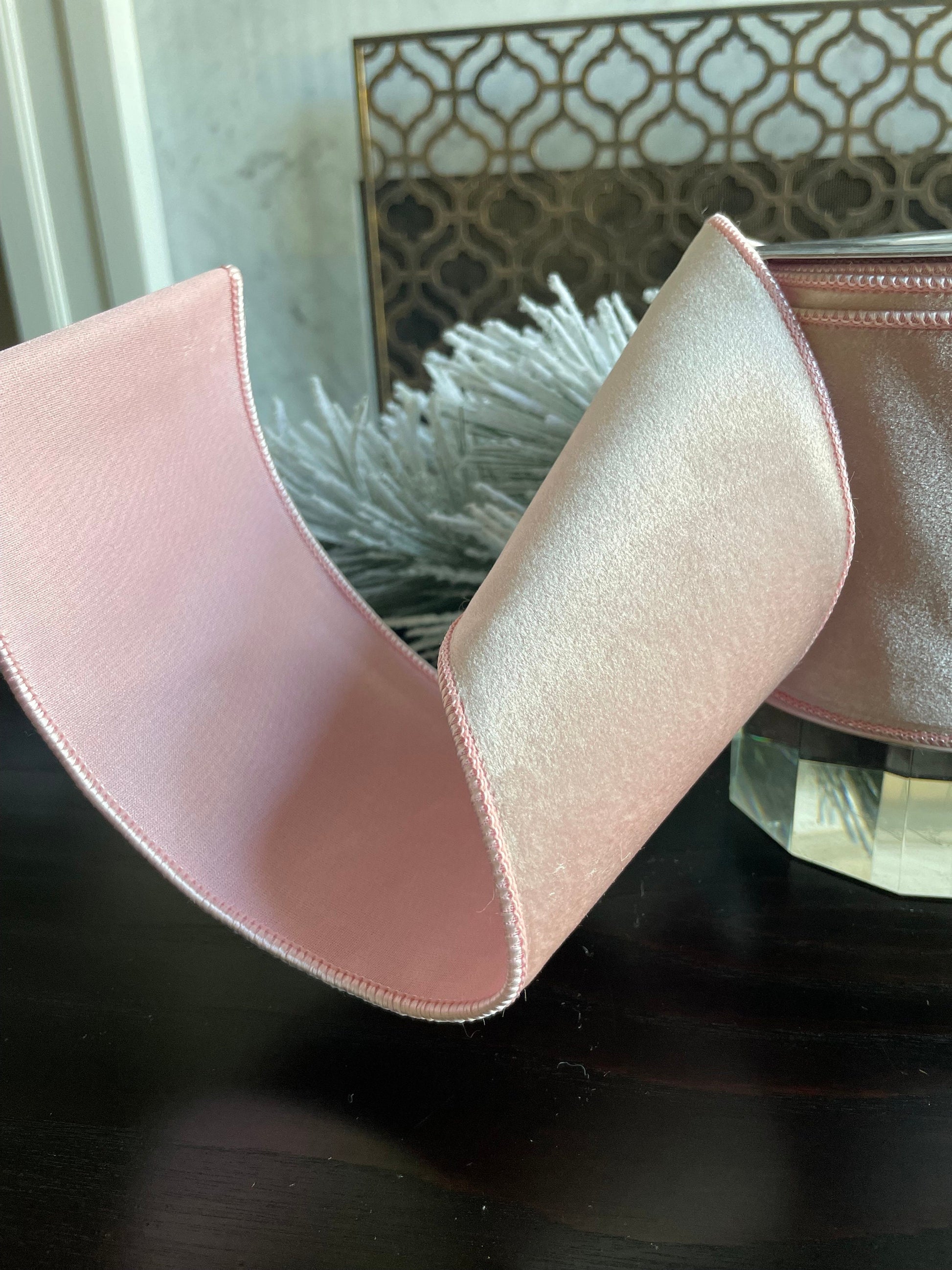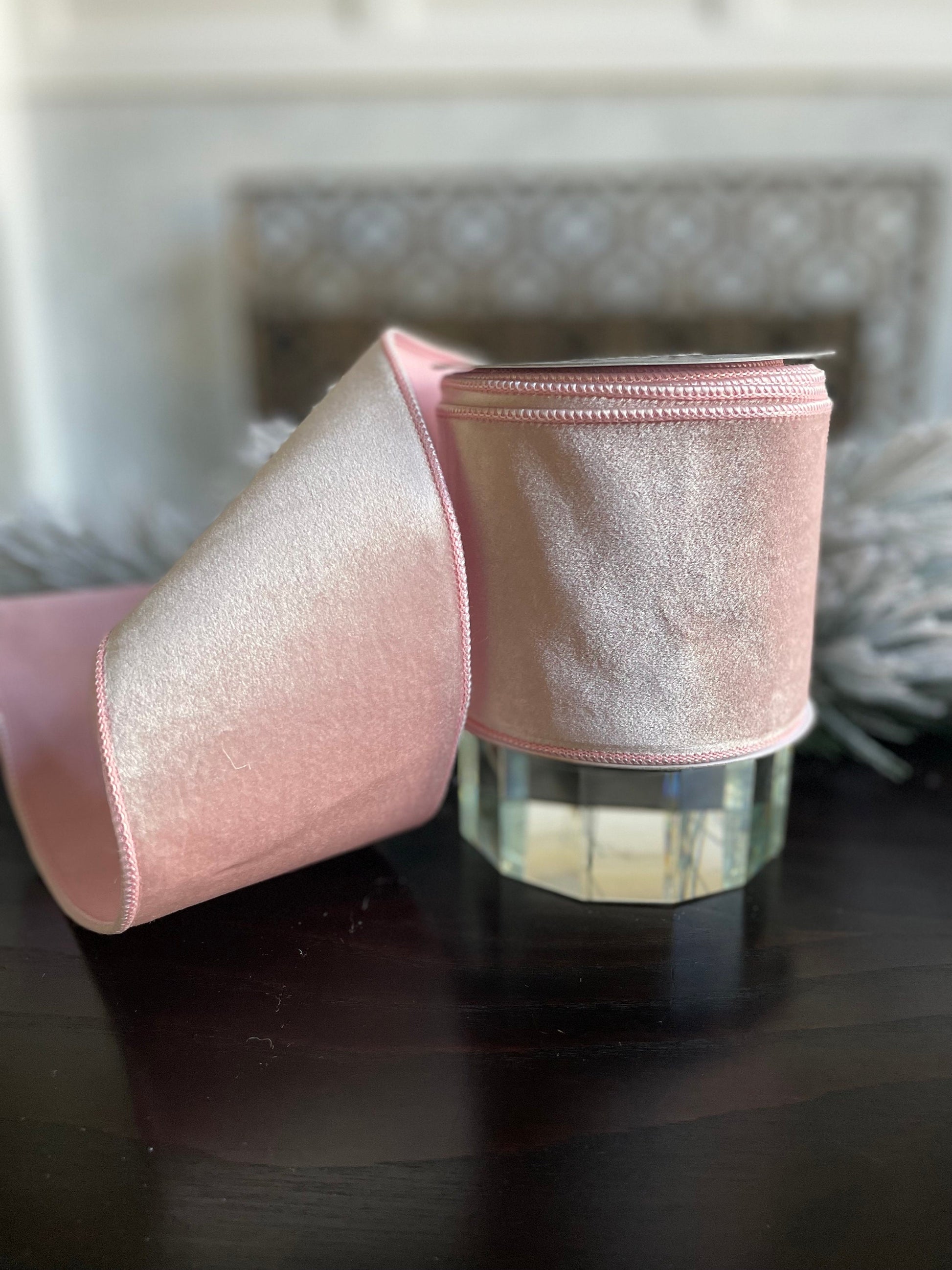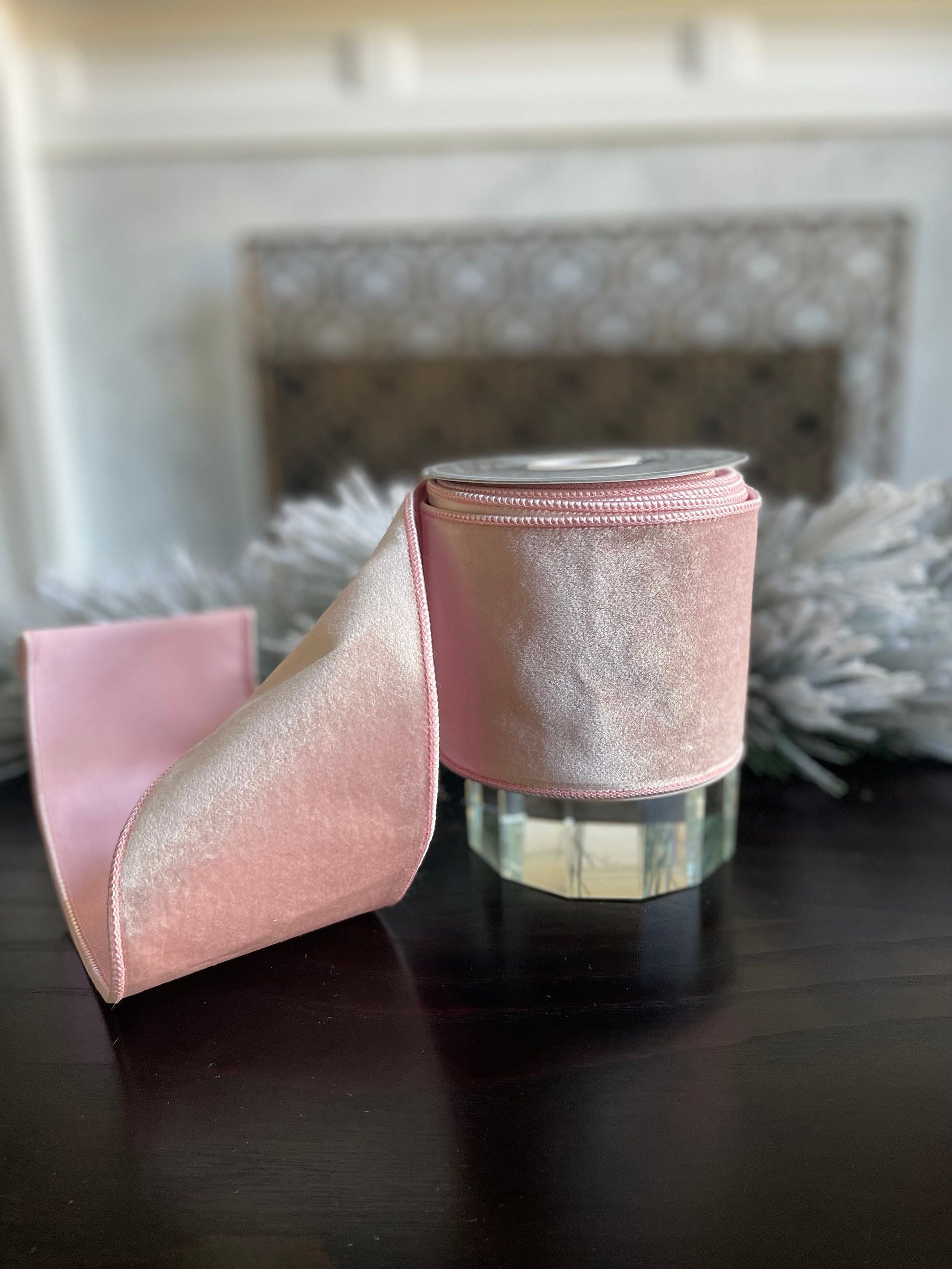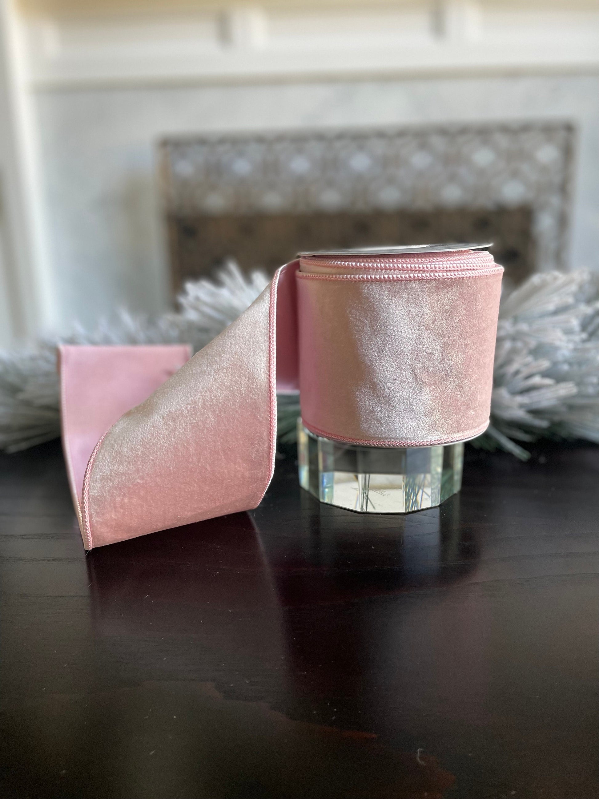 4” x 10 yds. Designer pink velvet wired ribbon. Raz.