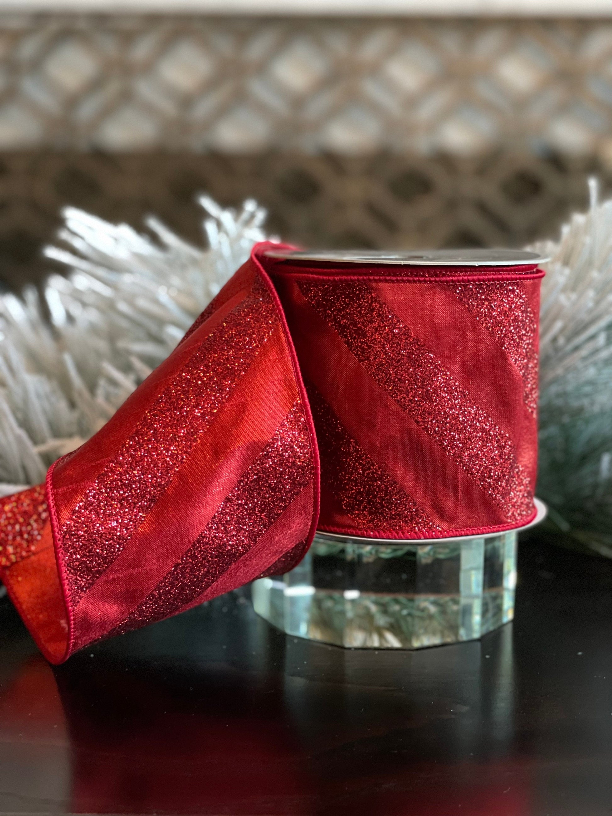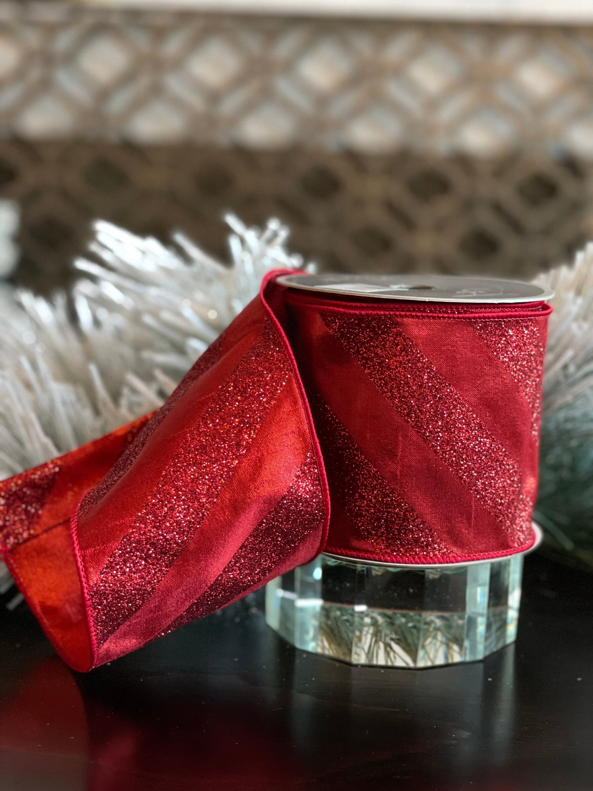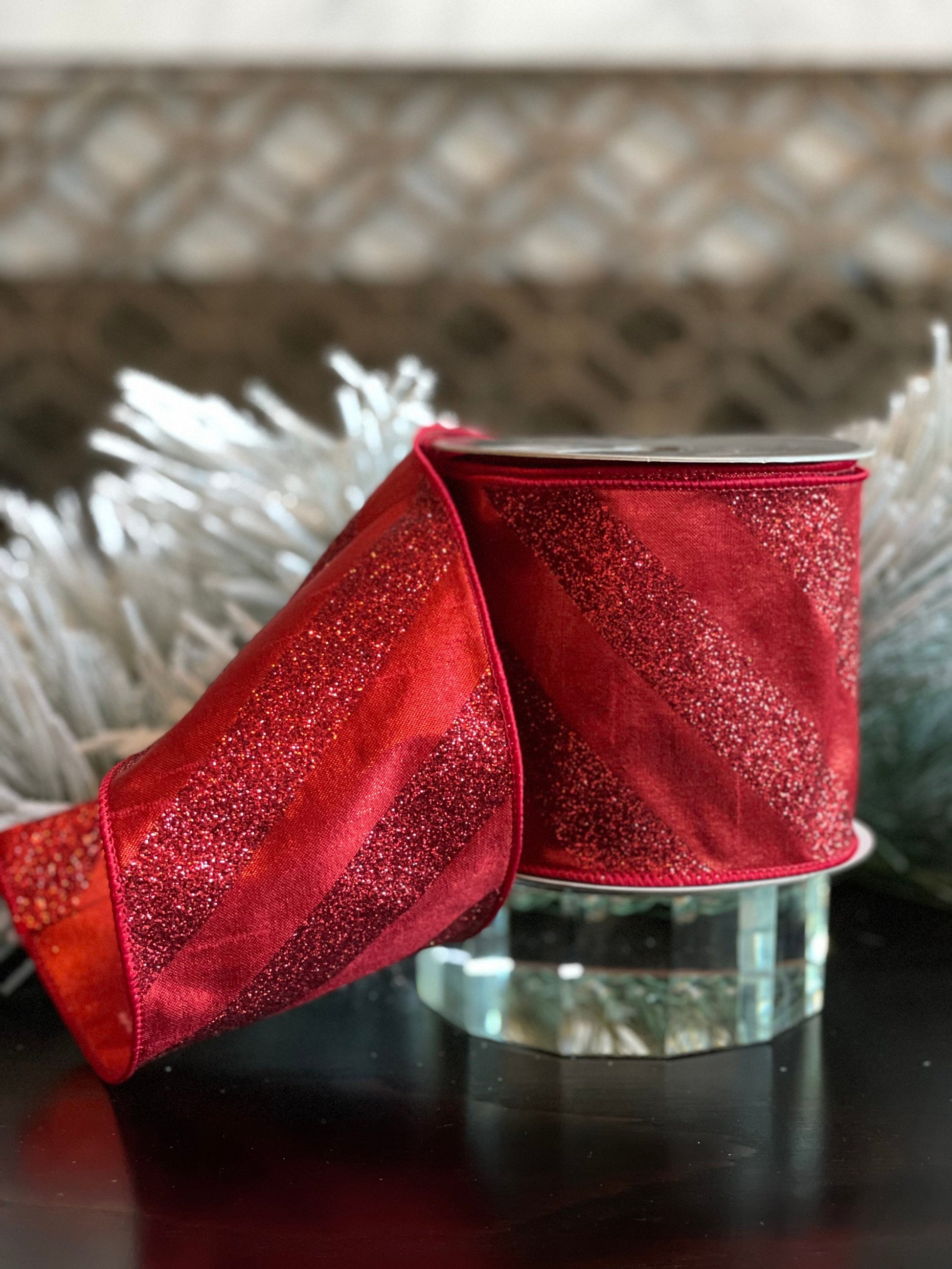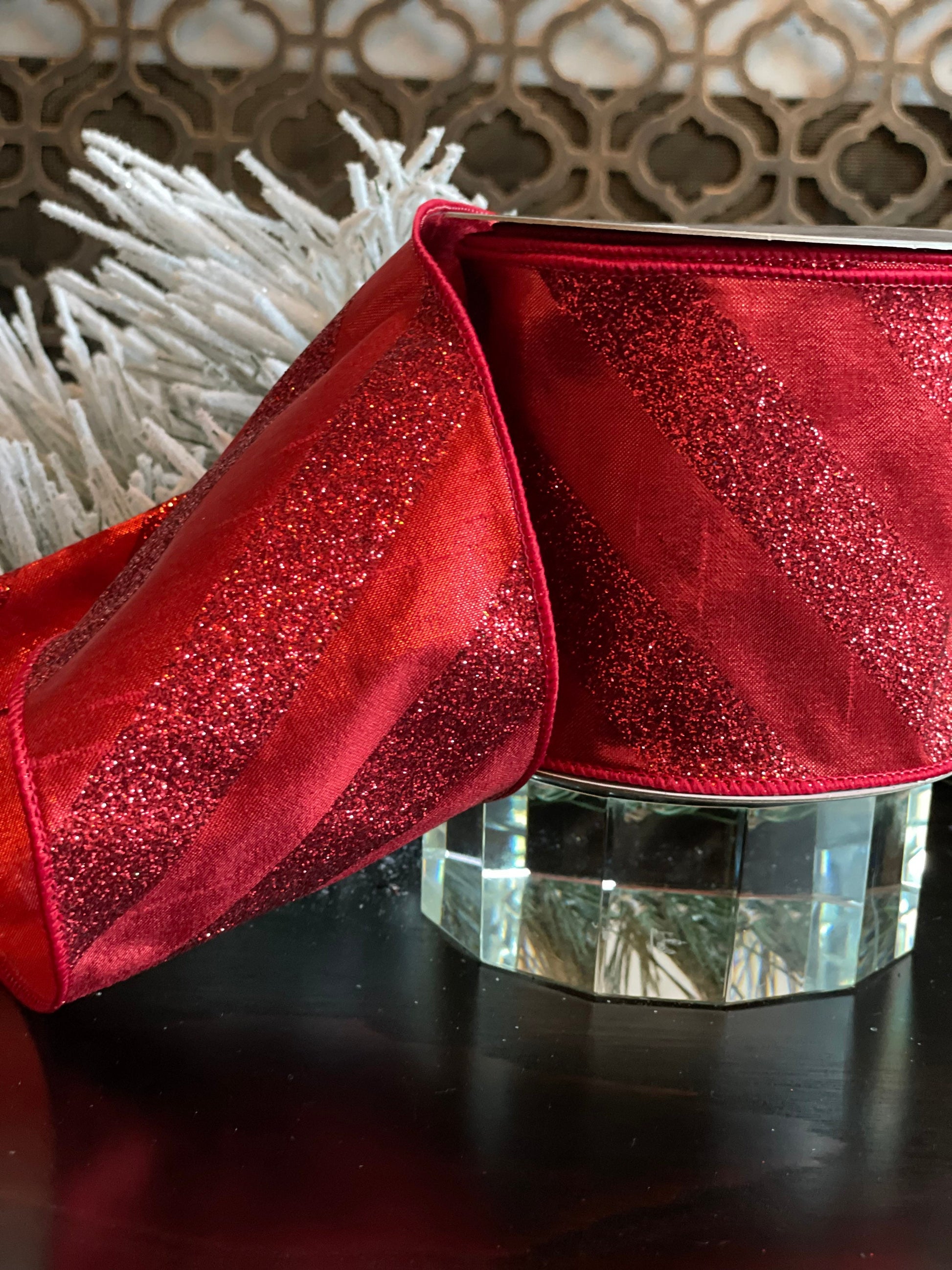 4” X 10 yds. Metallic dupion candy red. Wired.