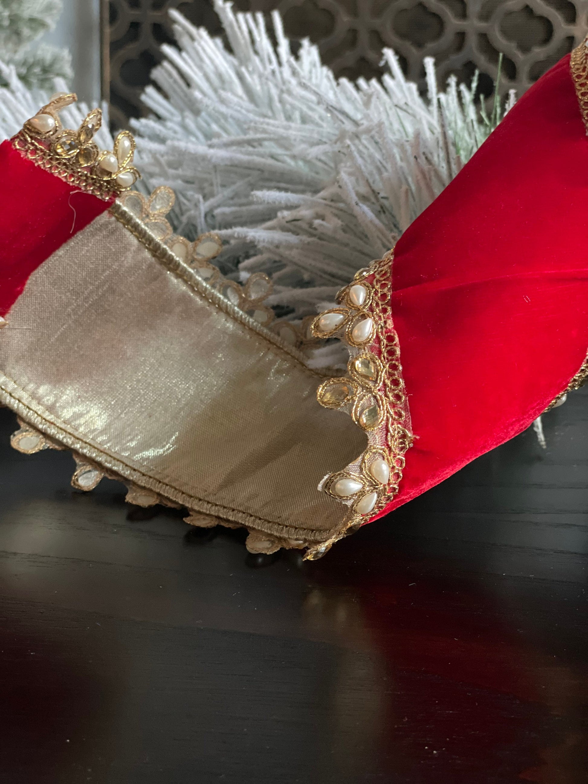 4”x 5 yds. velvet pearl / jewel edge double side ribbon. Red and gold. Wired. Gorgeous!
