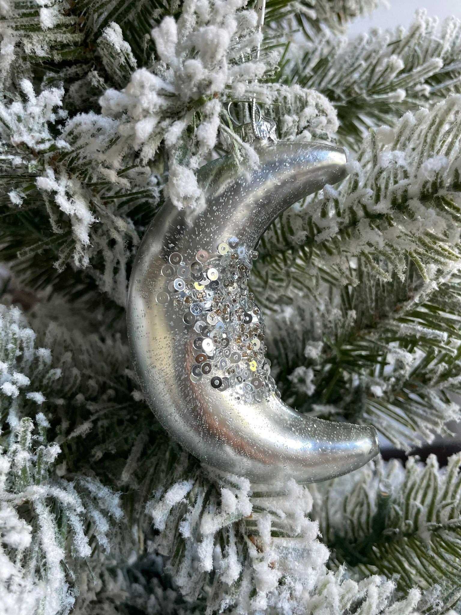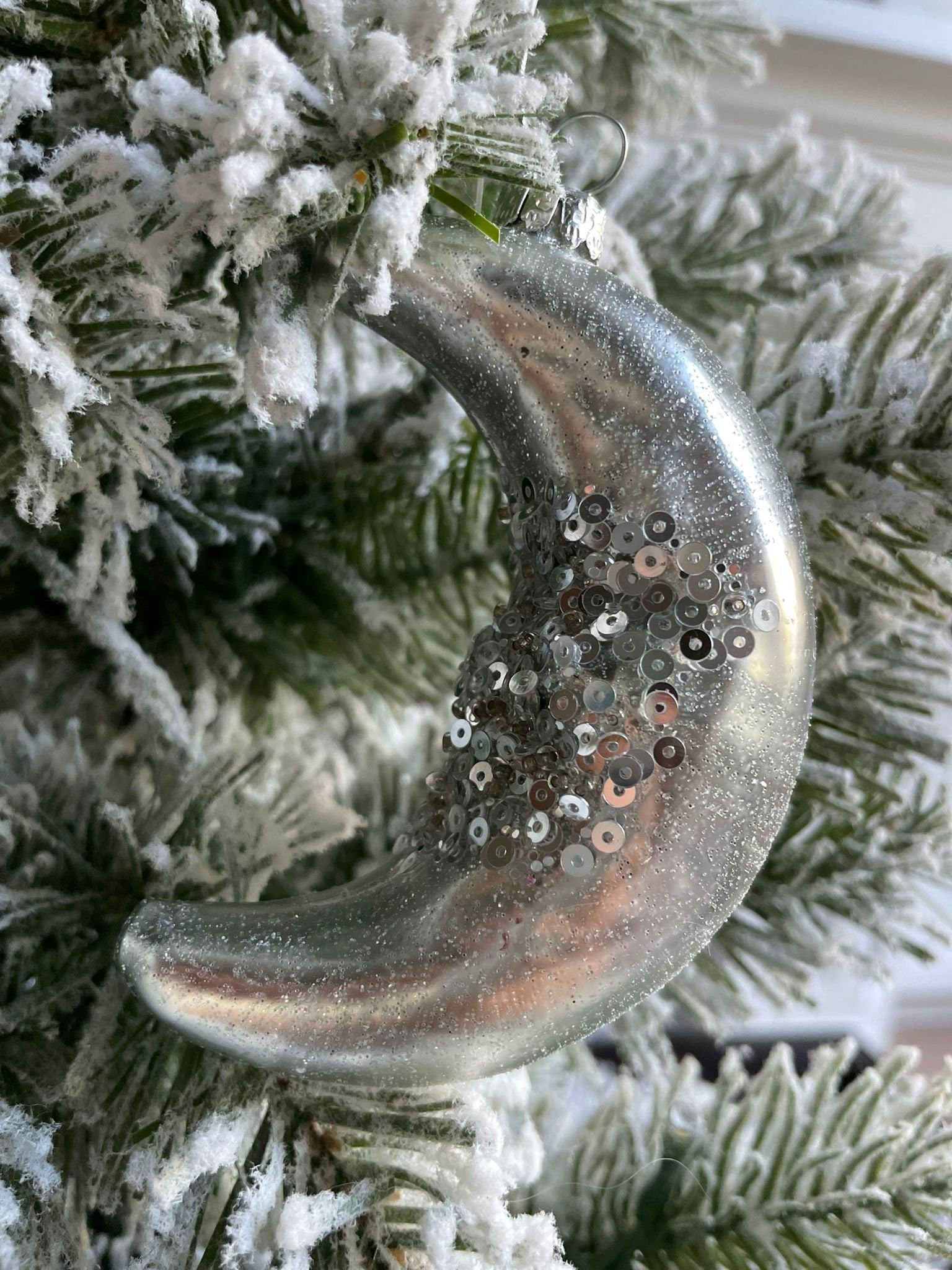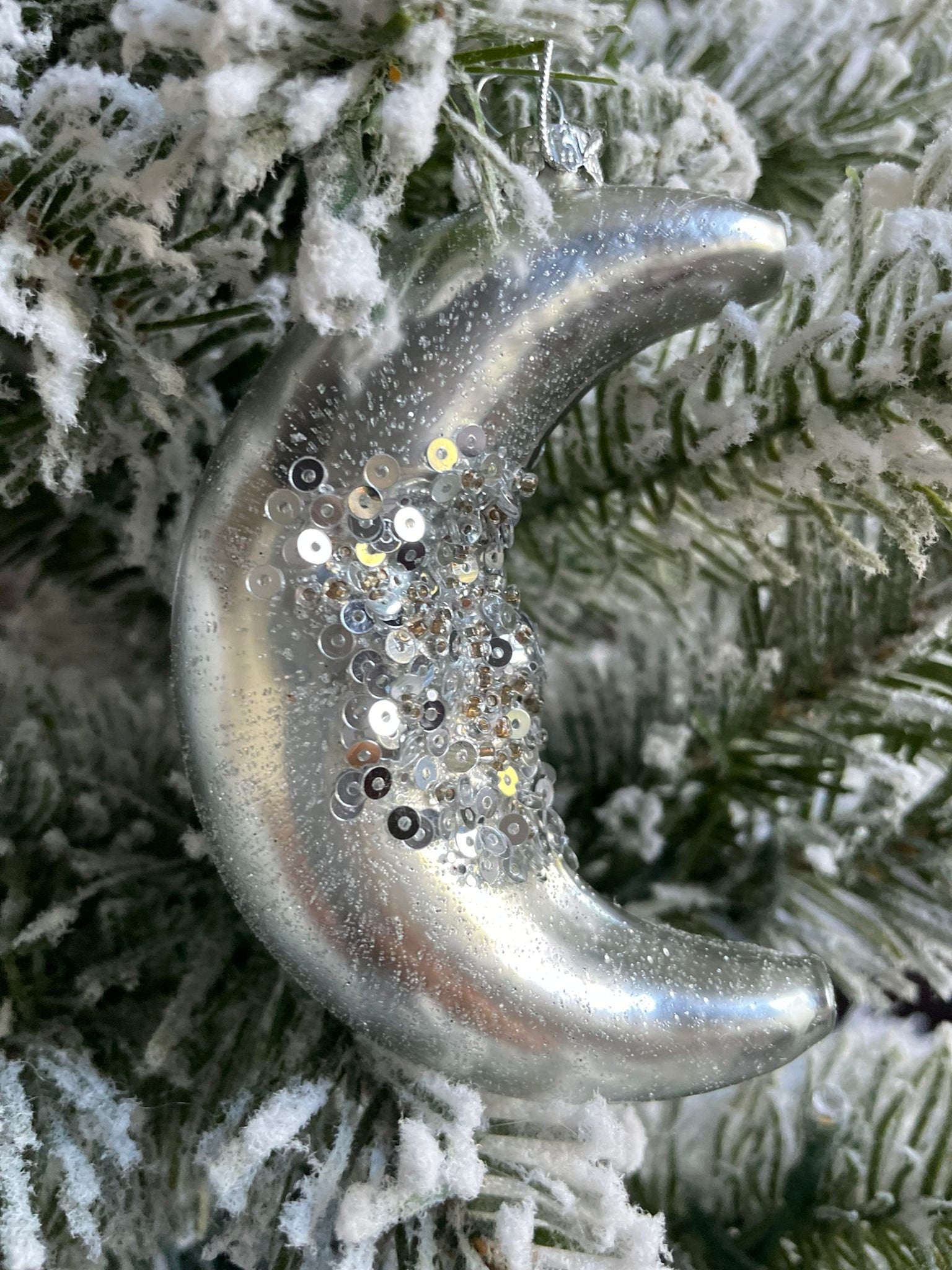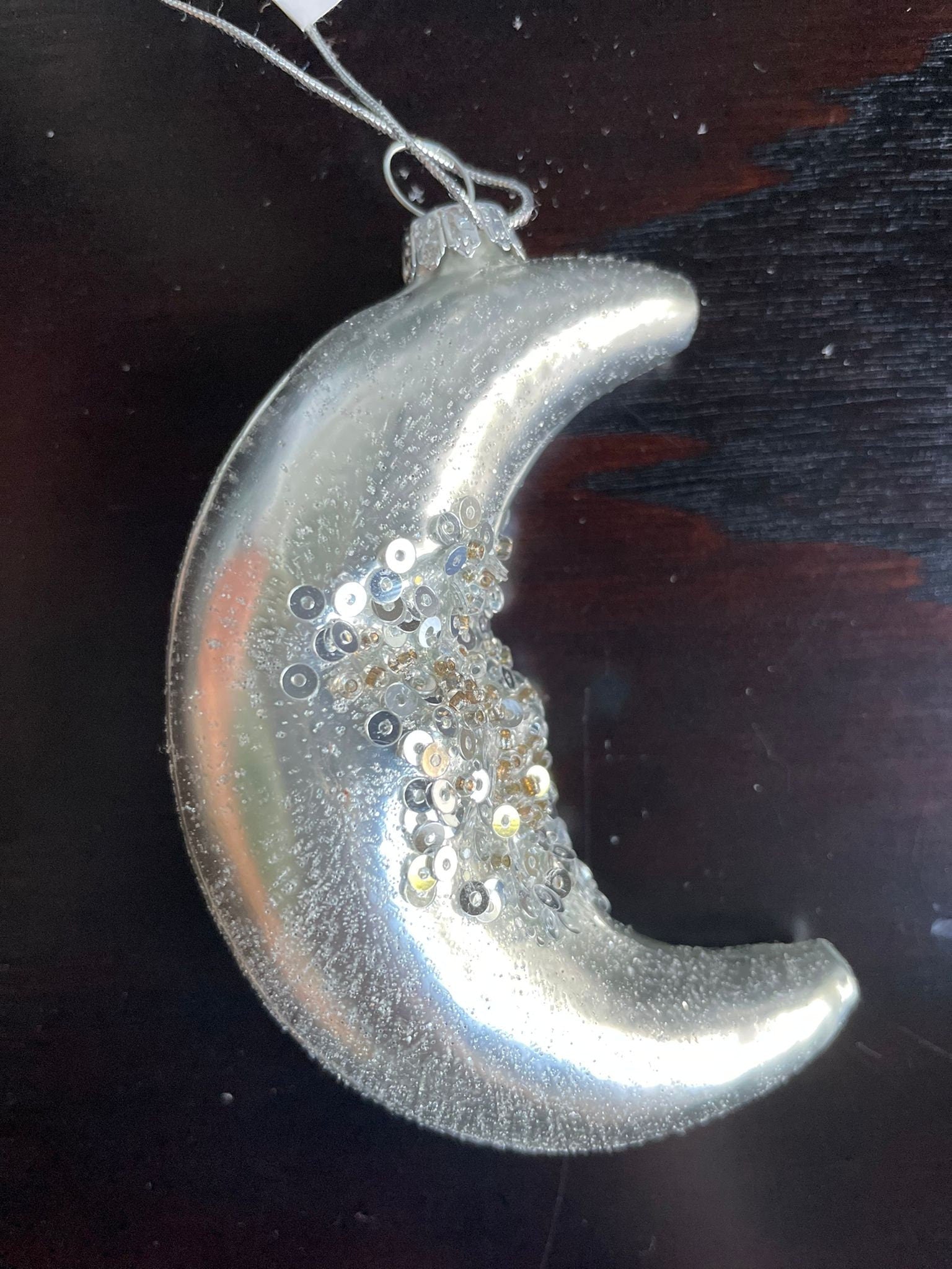 4"glass glitter/sequin half moon ornament