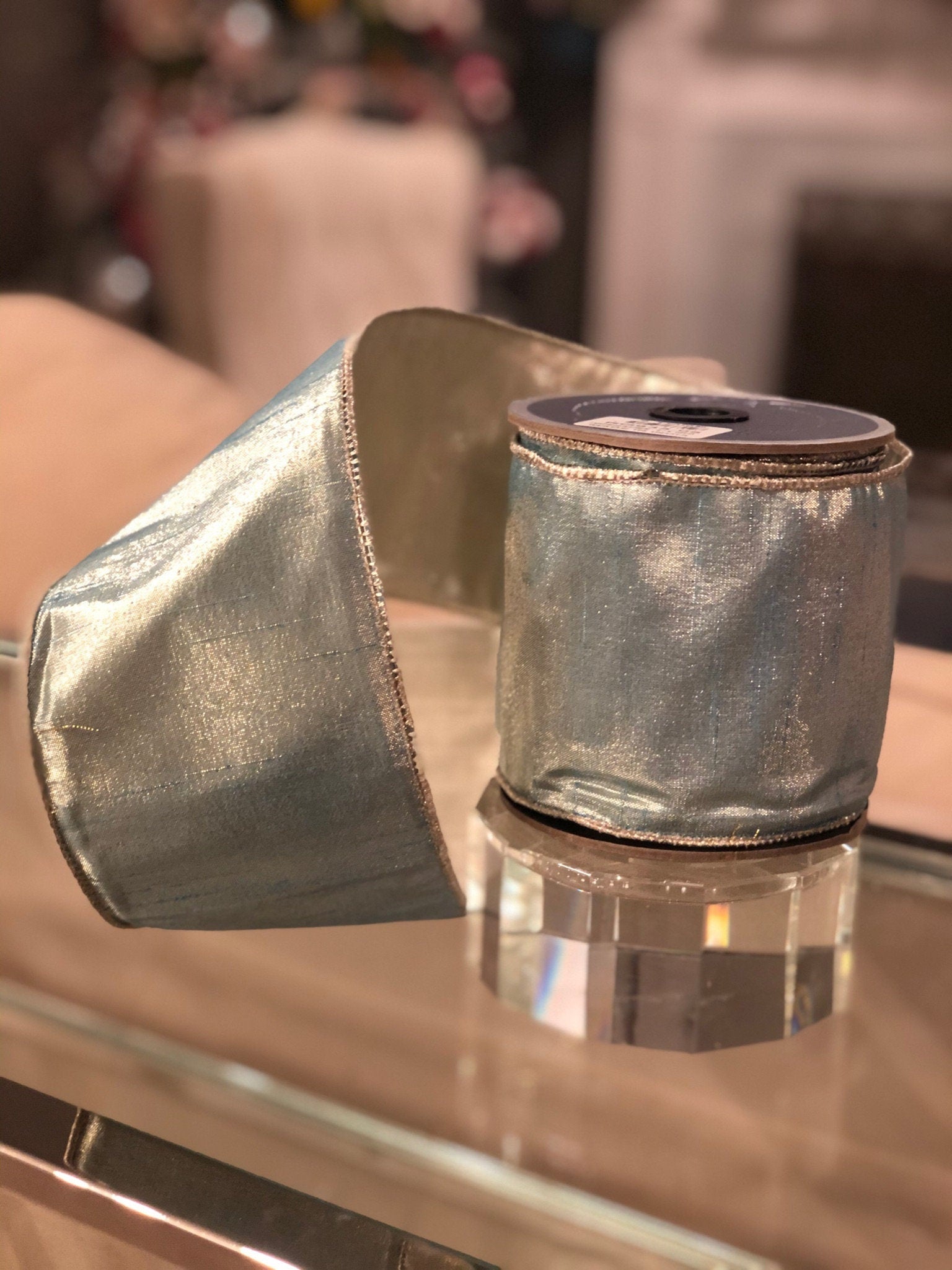 4"x 10 yard two tone light blue platinum, designer ribbon. Farrisilk. Wired.