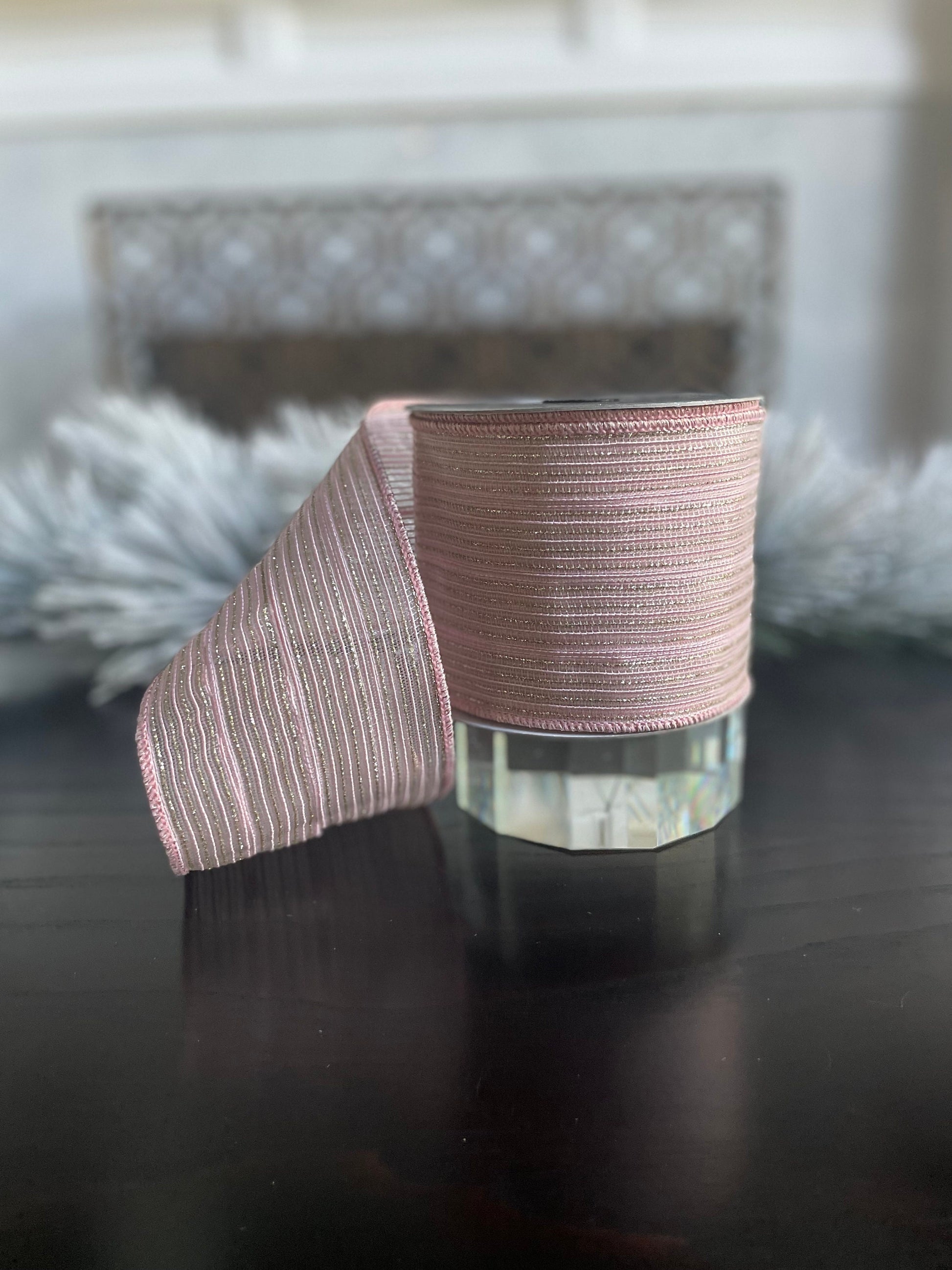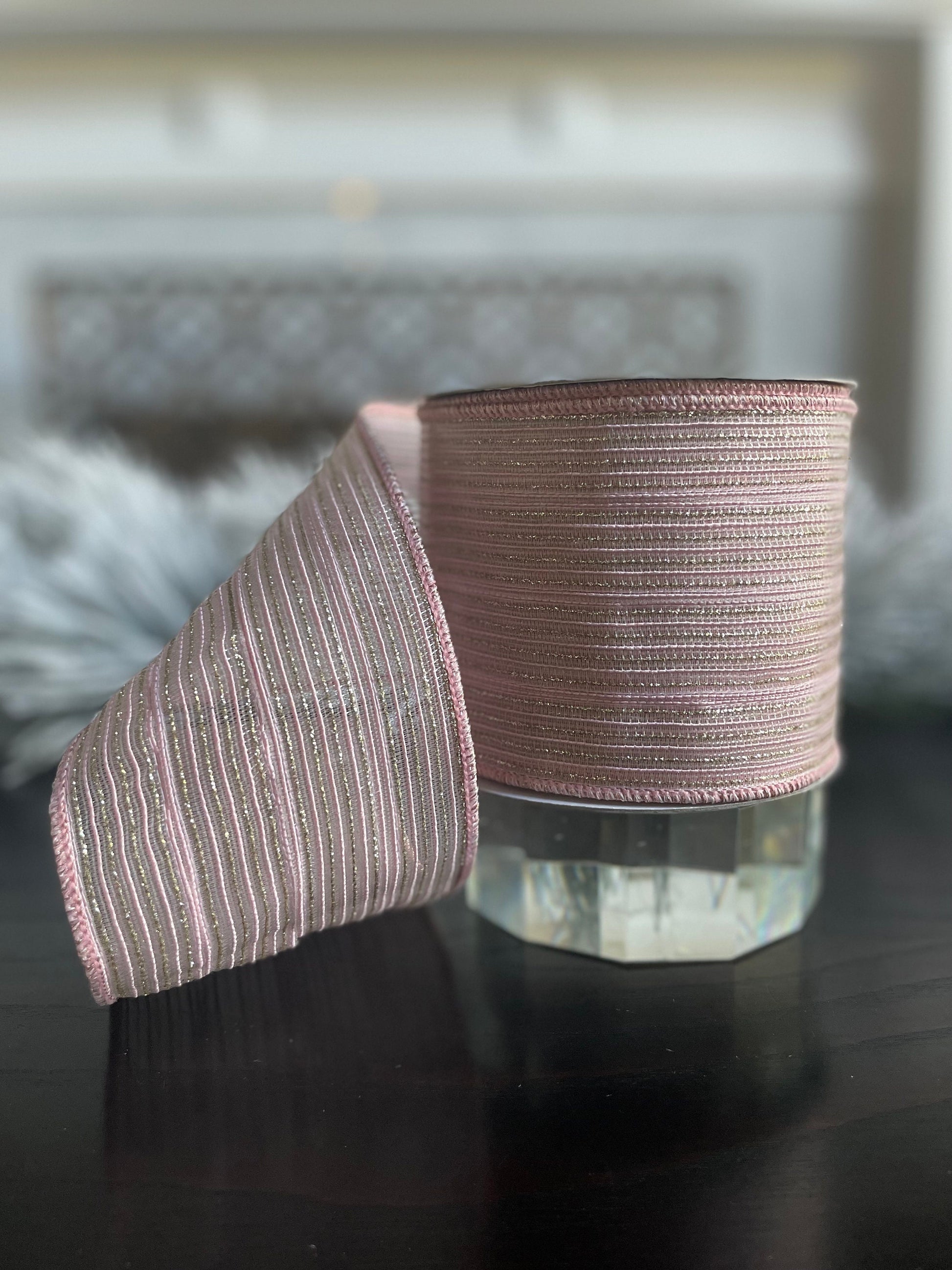 4"x 10 yds. Tinsel stripes baby pink and light gold. Farrisilk.