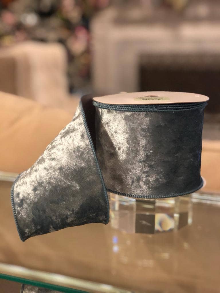 4" x 10 yds Diamond velvet wired designer ribbon. Aqua.