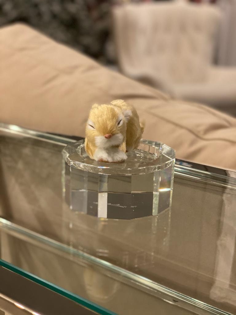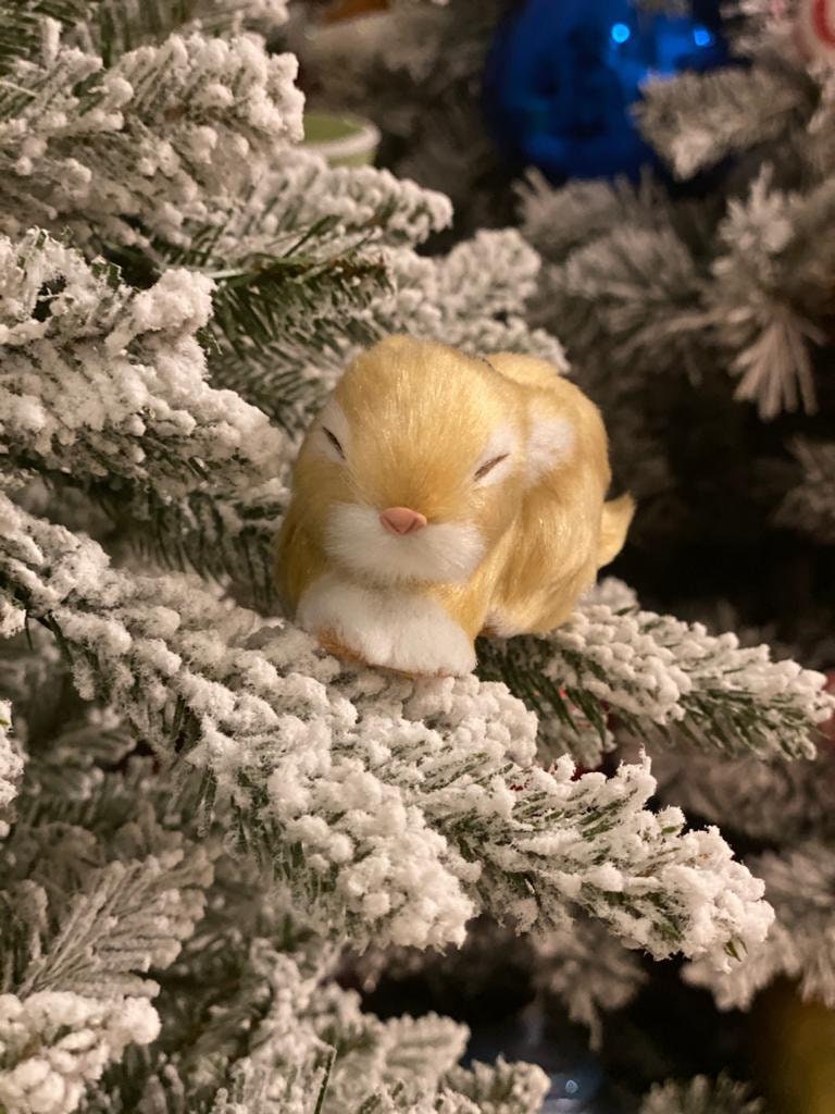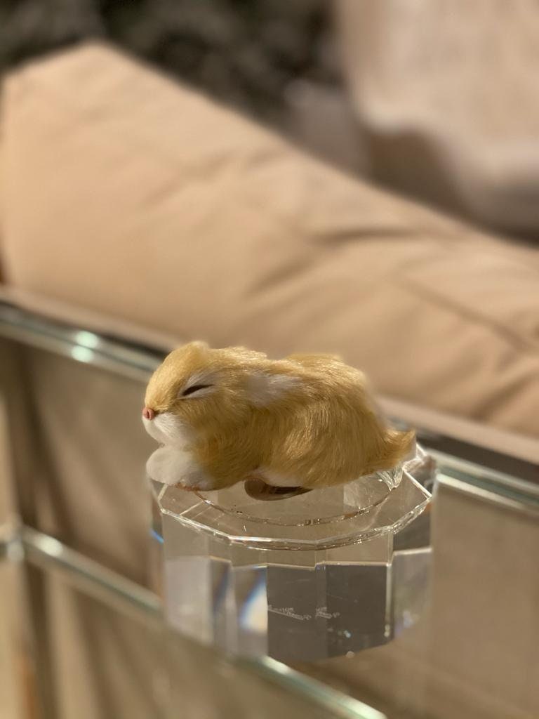 5"sleeping fur rabbit ornament beige