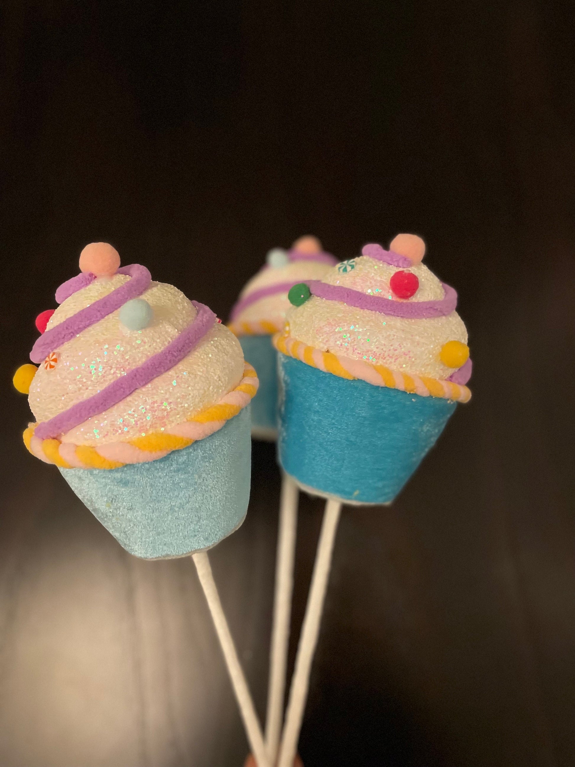 6.5” Blue Cupcake with sprinkles ornament. Set of 3.