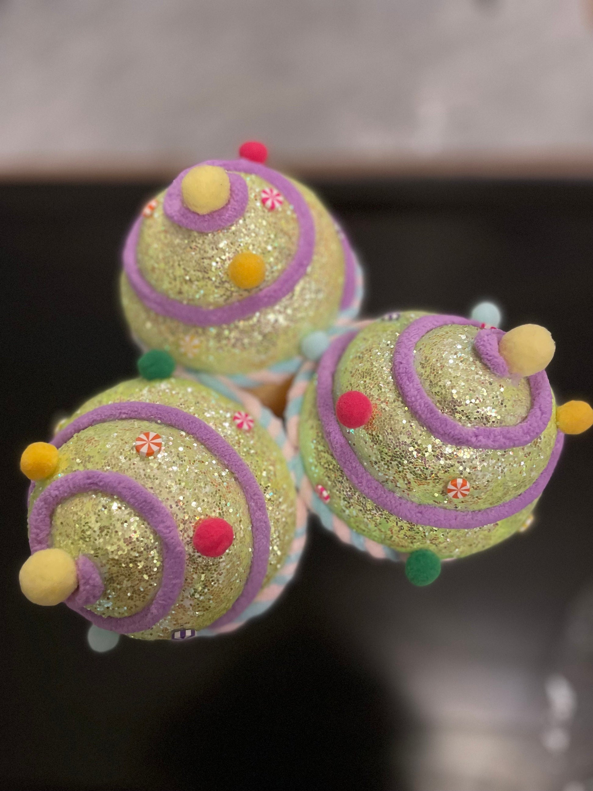 6.5” Light yellow Cupcake with sprinkles ornament. Set of 3.