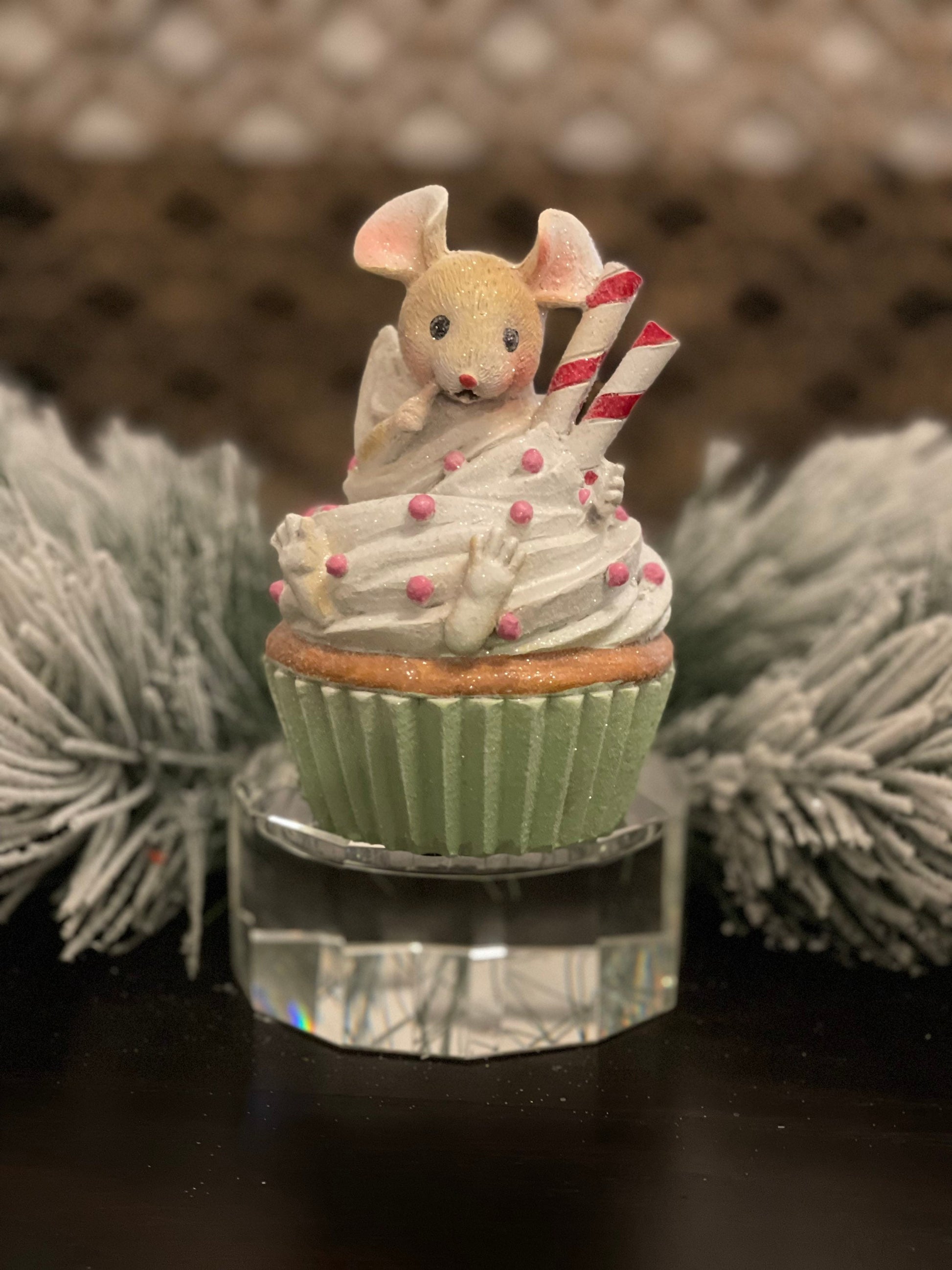 6” cupcake with mouse resin. SET OF 3. The cupcake is approximately 6” tall and 4” wide. So cute!!